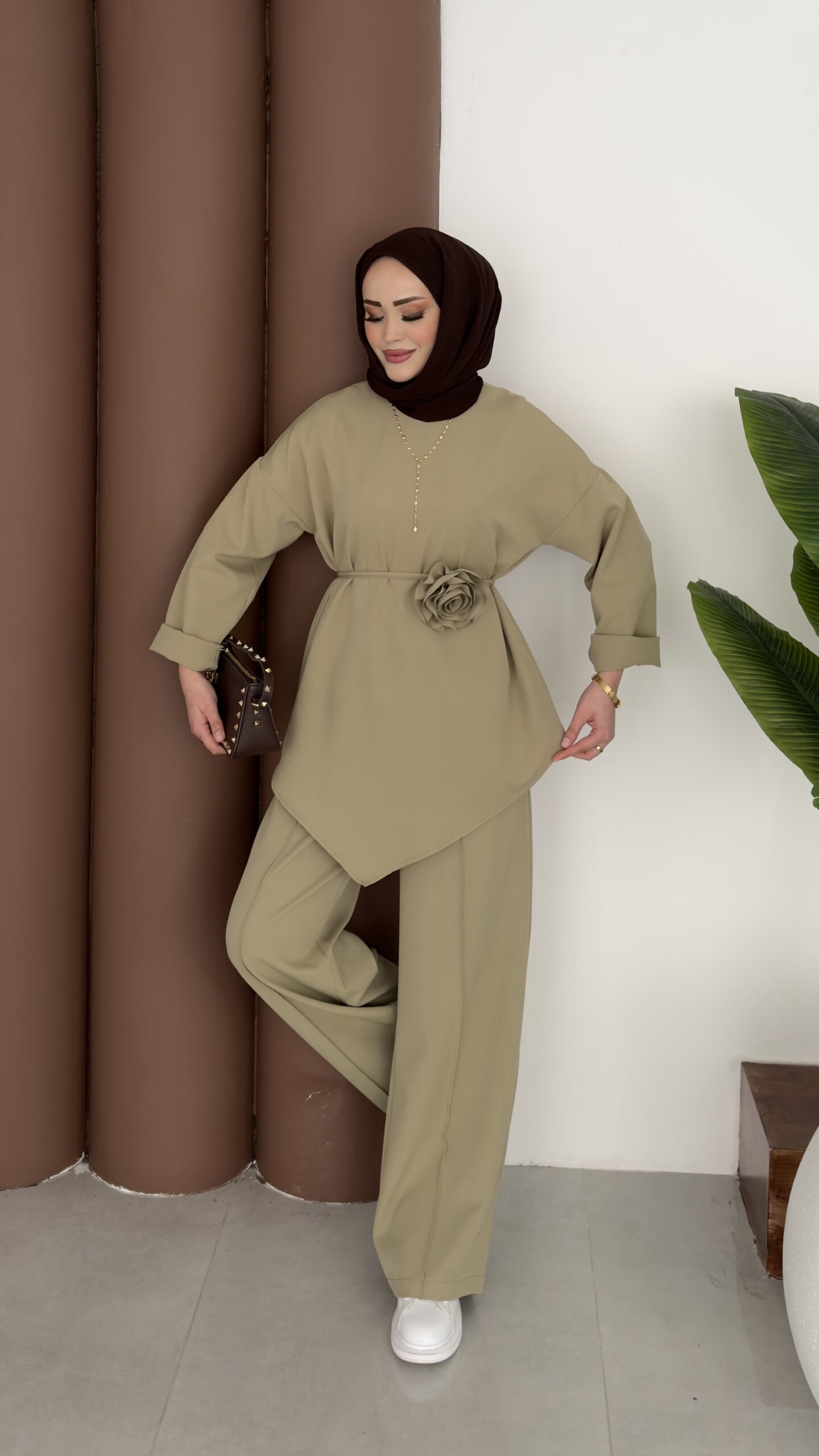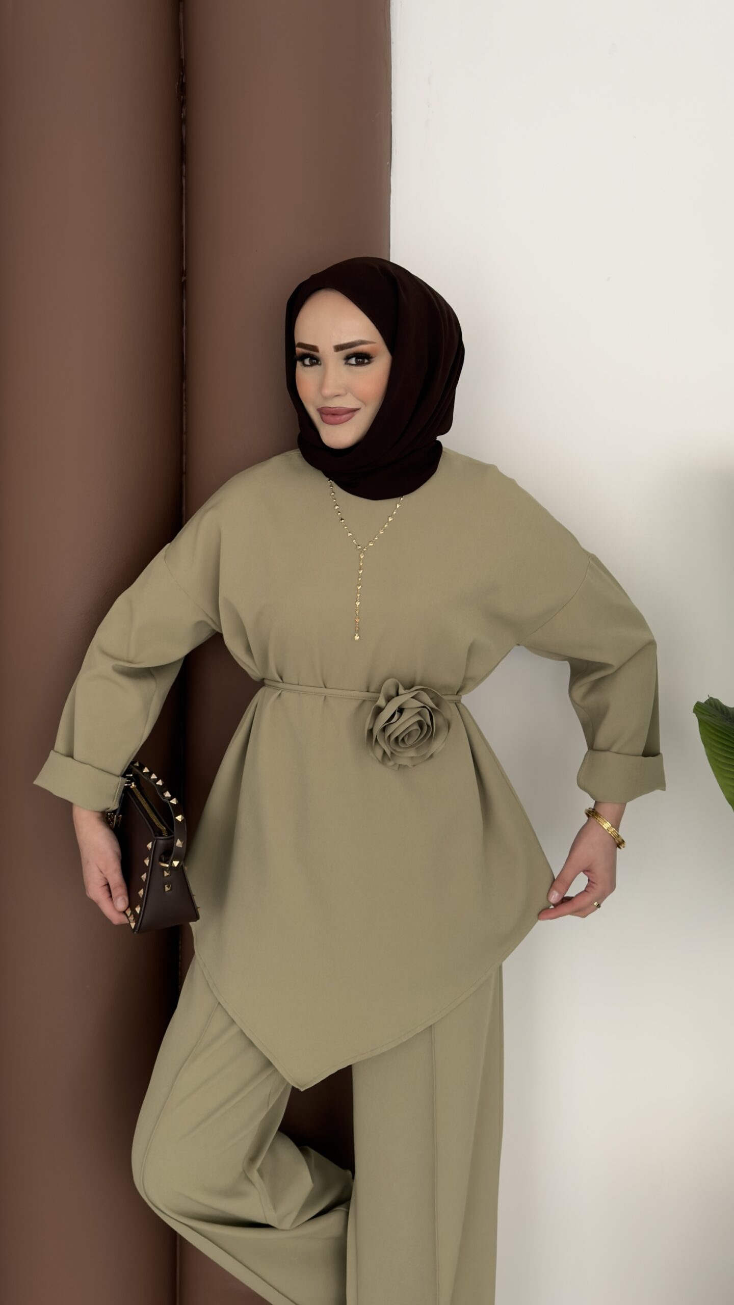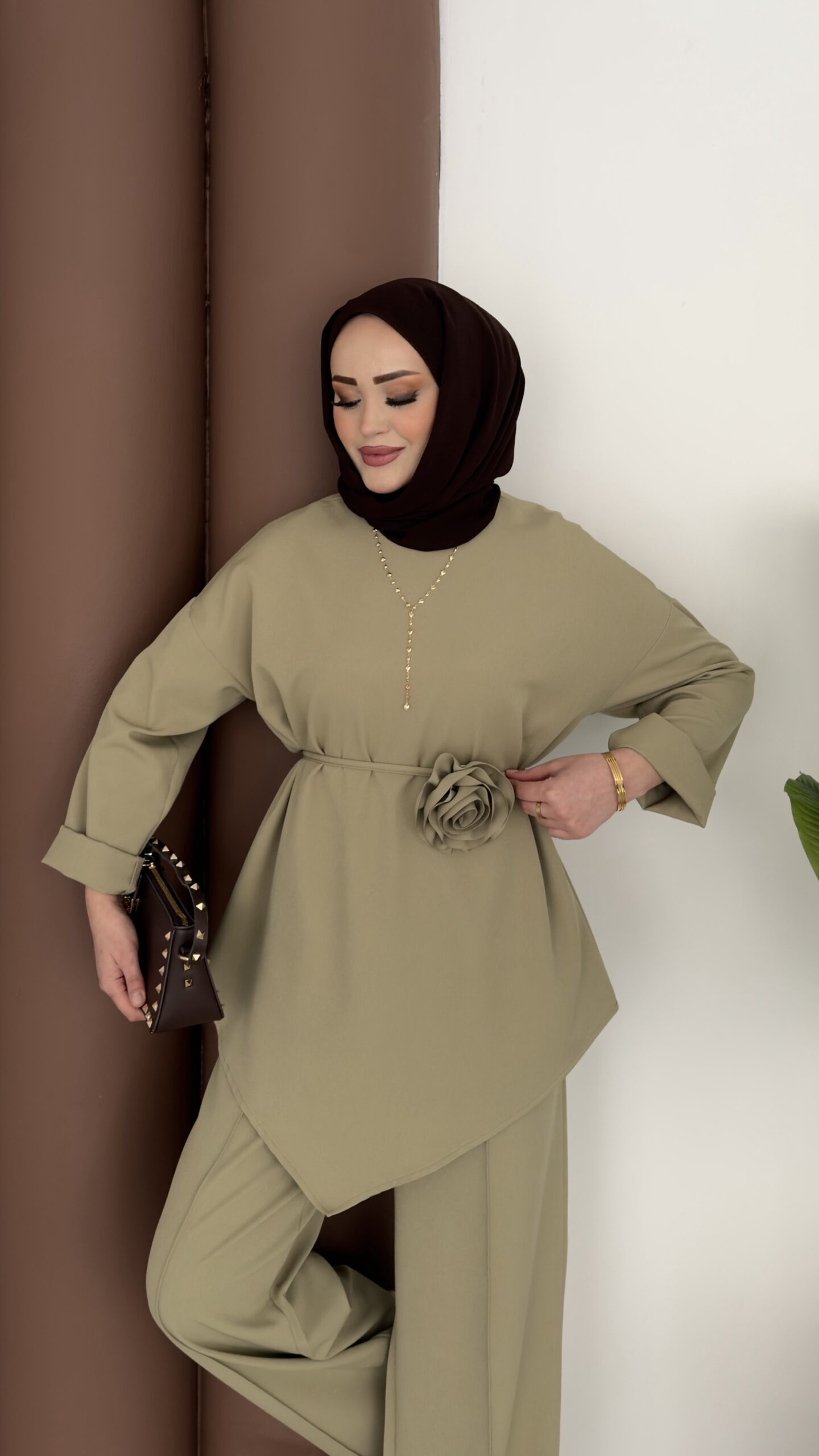 Anvelop Güllü Dabıl İkili Takım – Yağyeşil