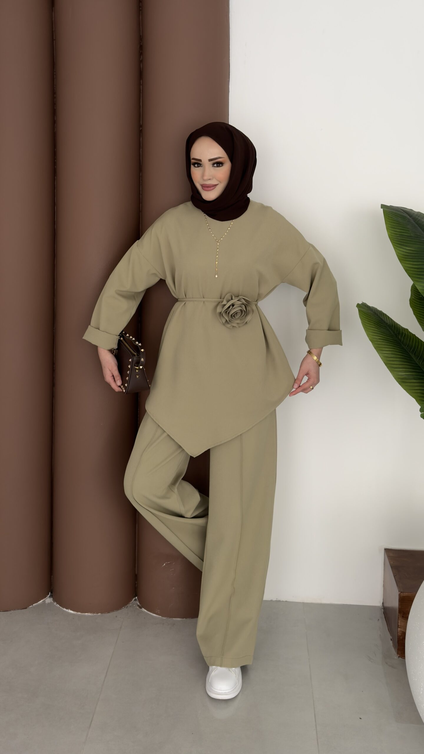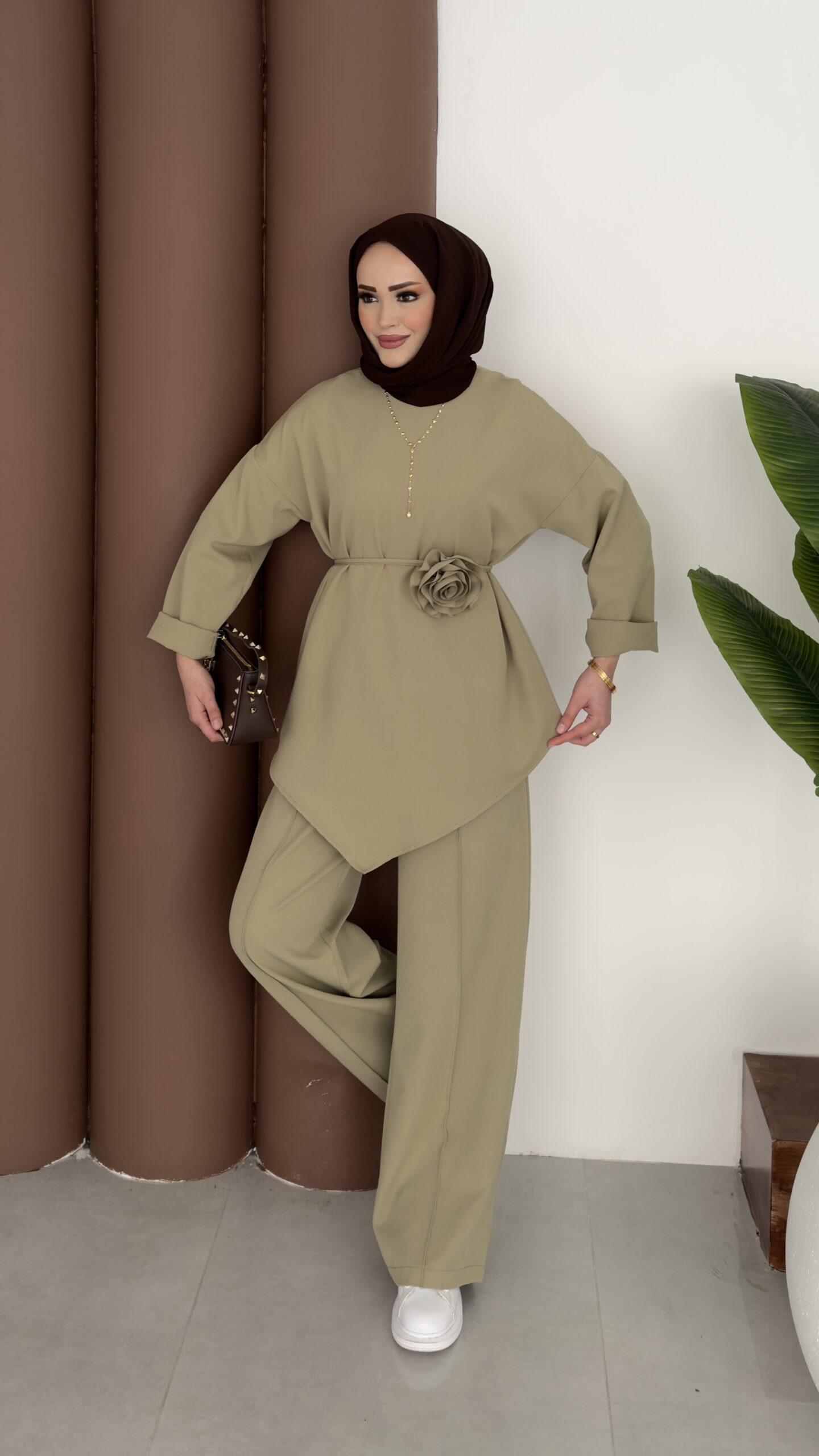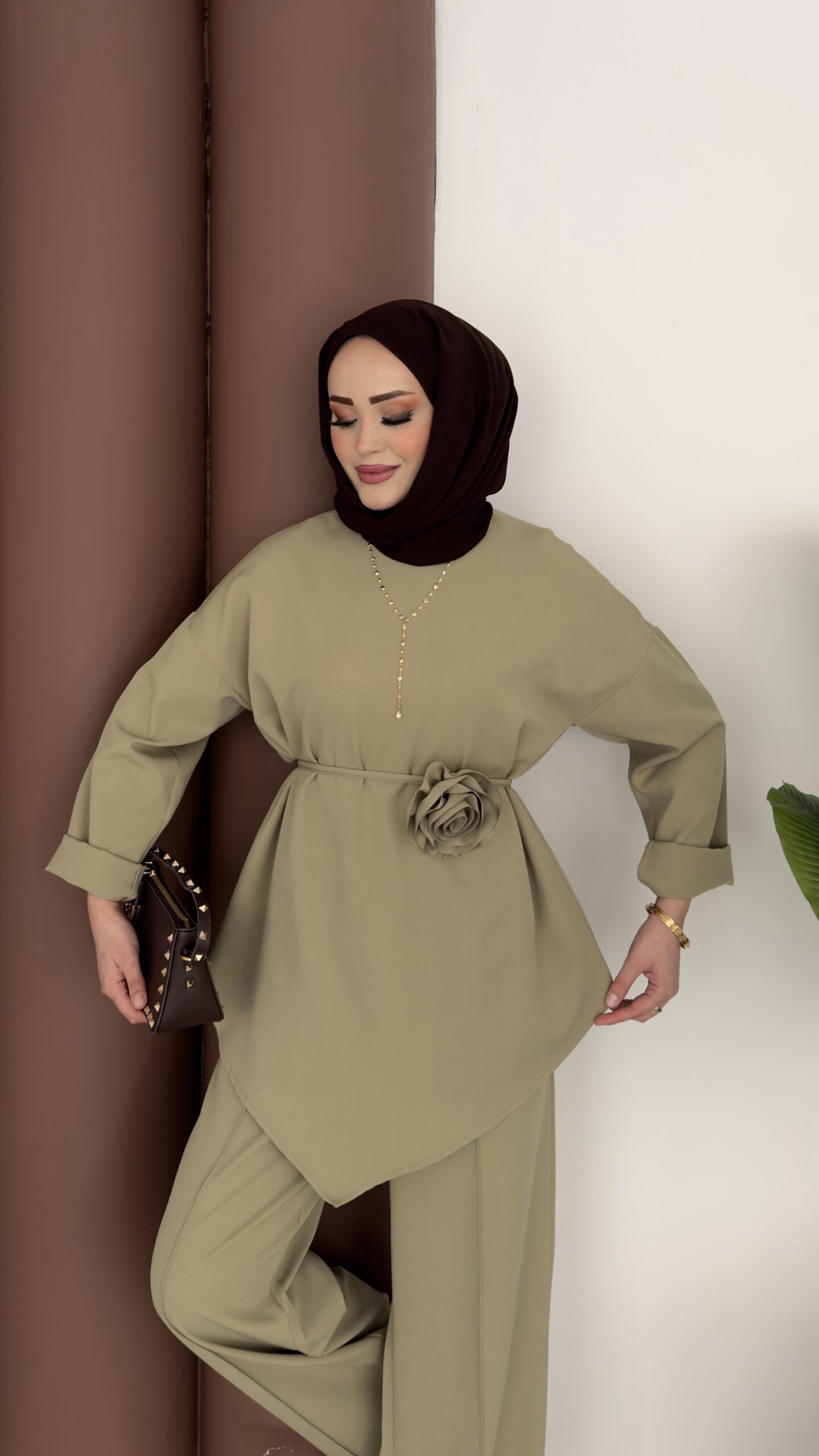 Anvelop Güllü Dabıl İkili Takım – Yağyeşil