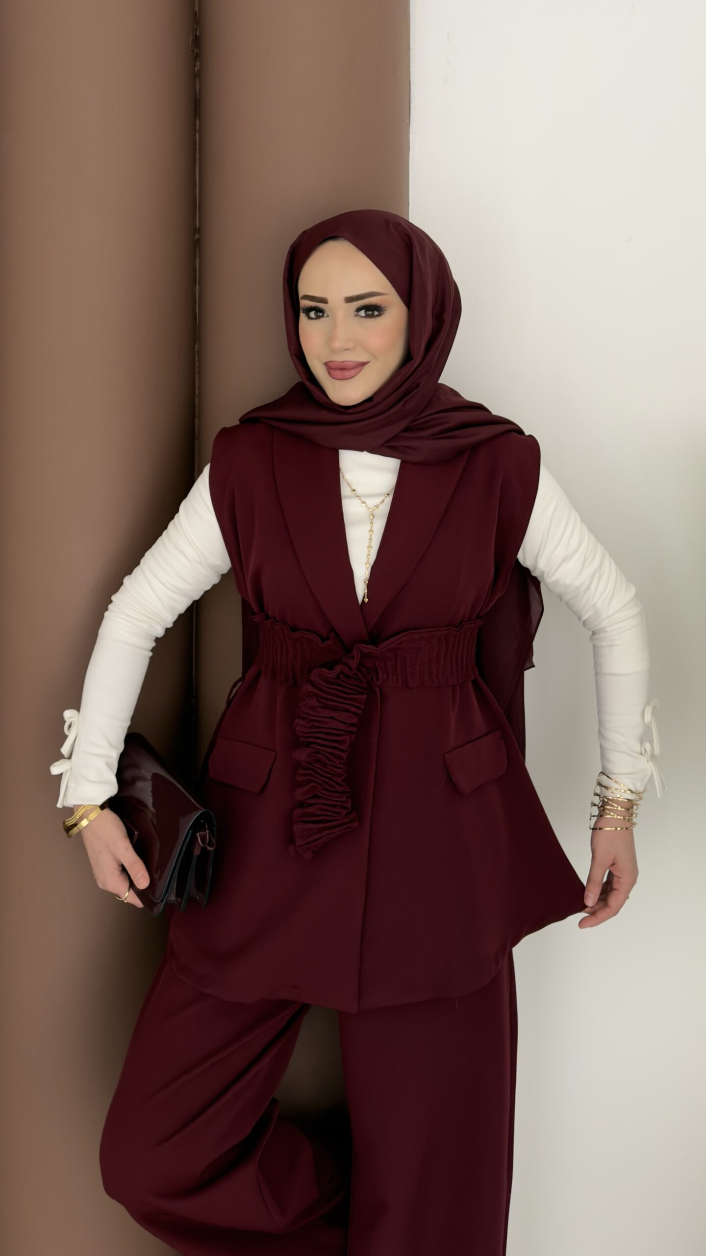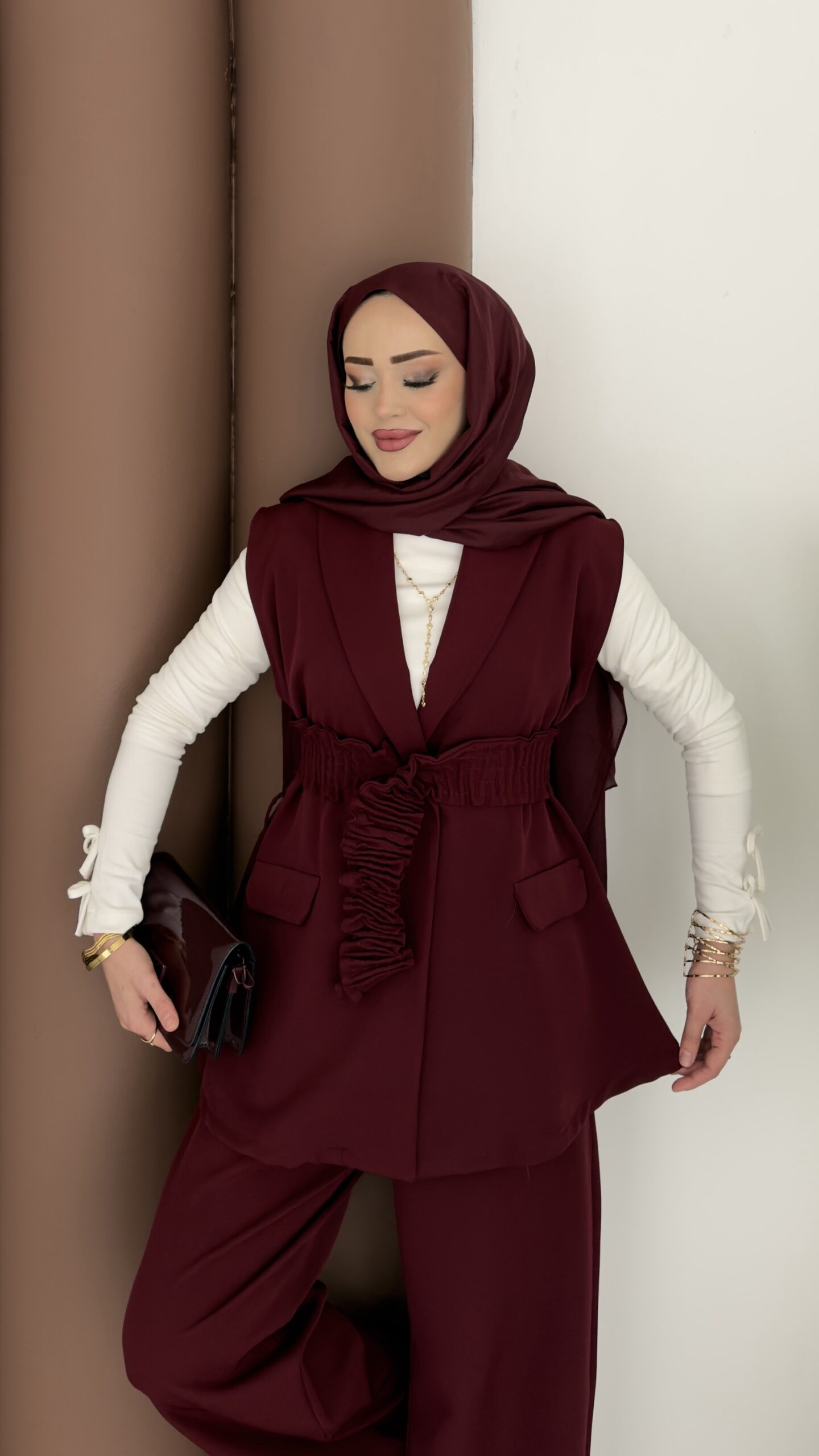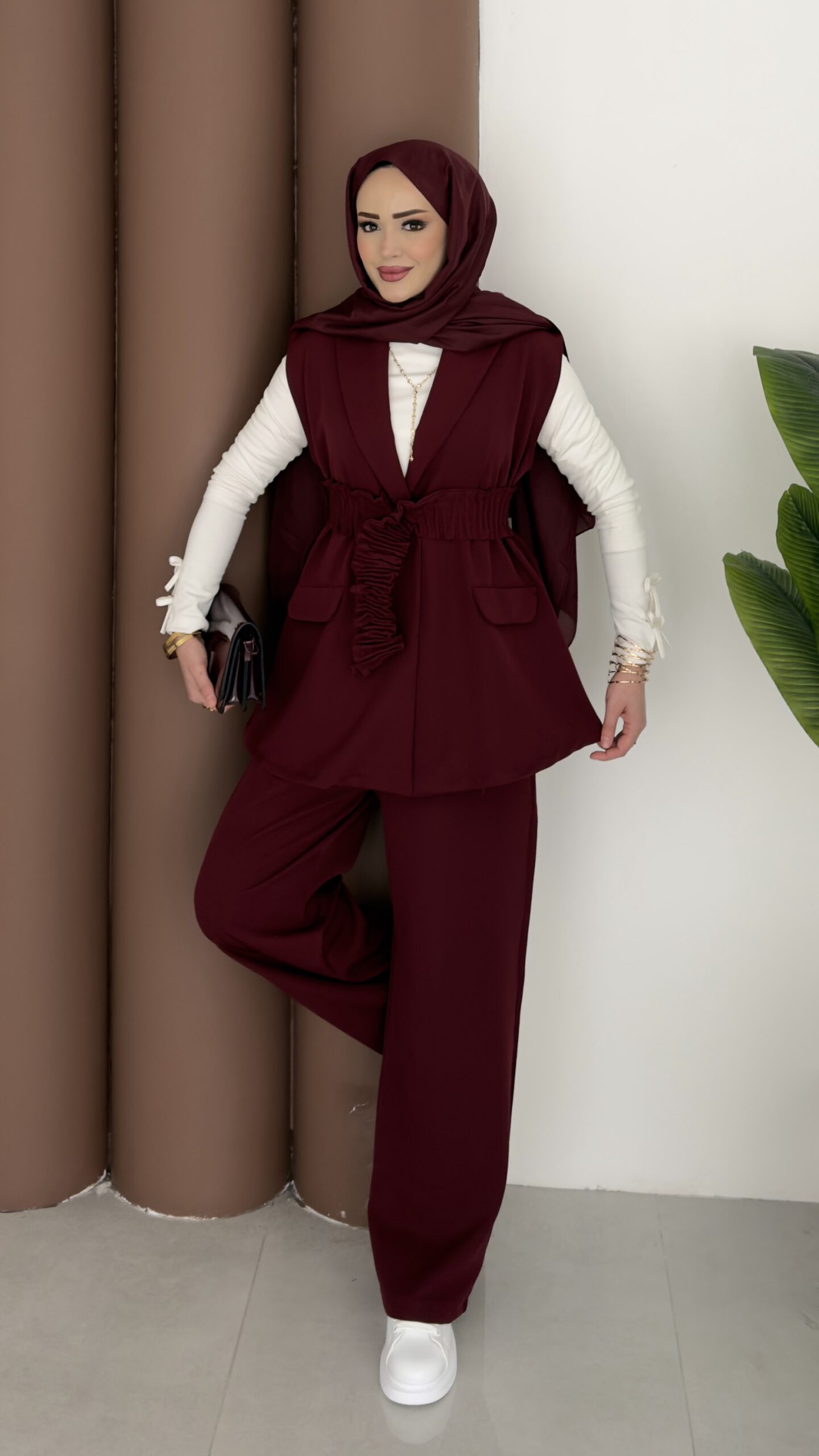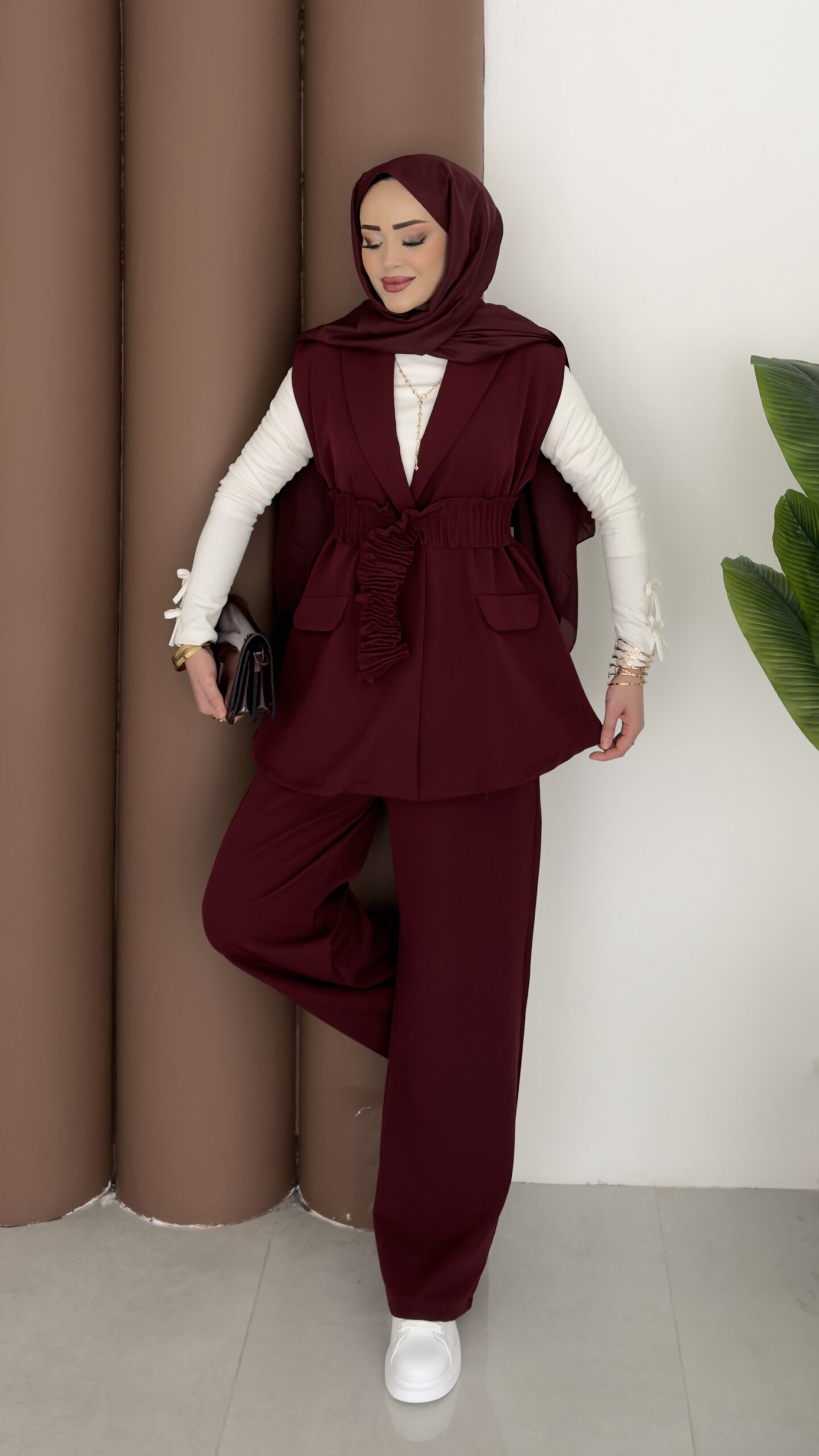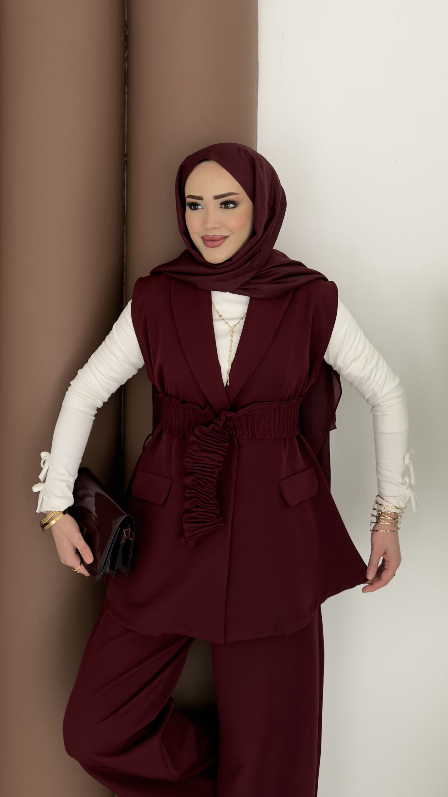 Carel Double Yelekli İkili Takım – Bordo