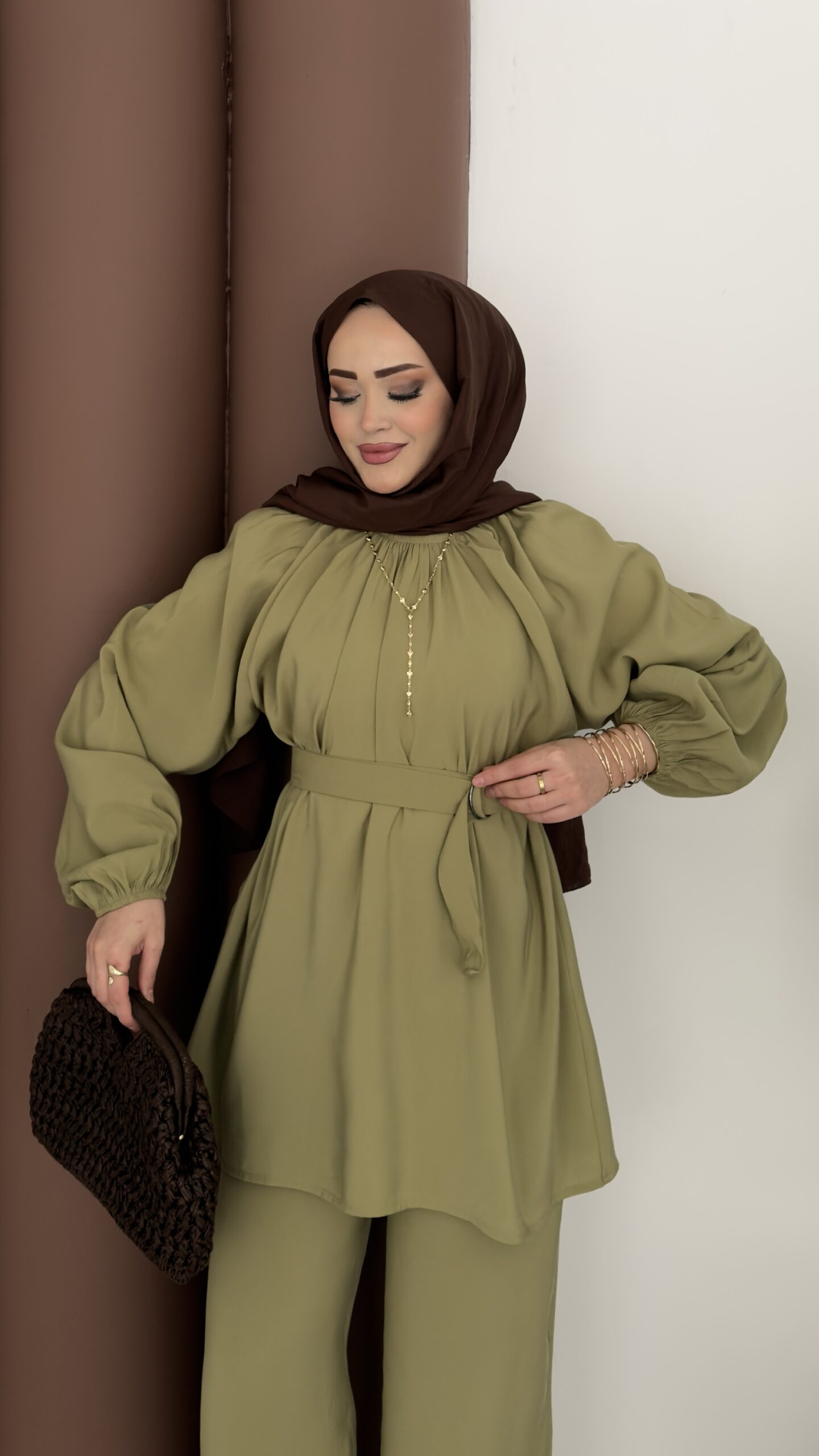 Casual Modal Kemerli İkili Takım – Yağyeşil
