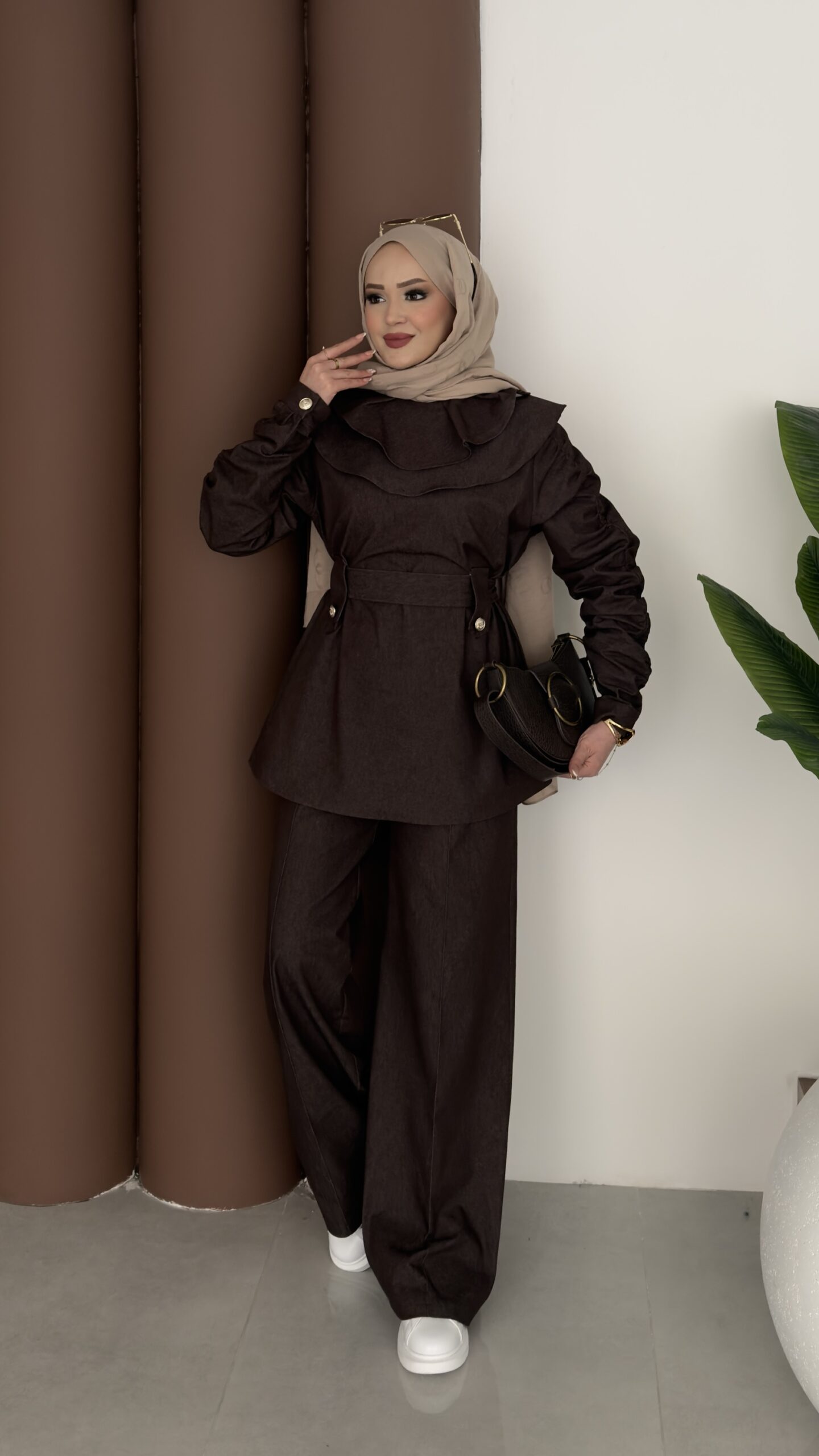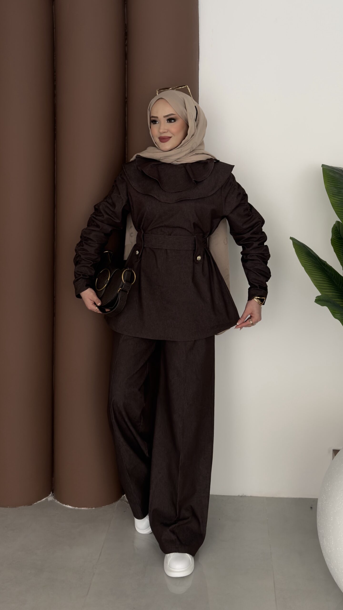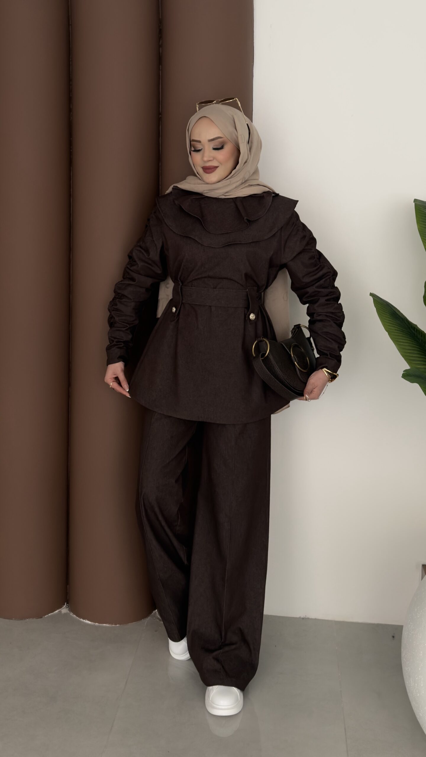 Cozy Denim Kemerli İkili Takım – Kahverengi