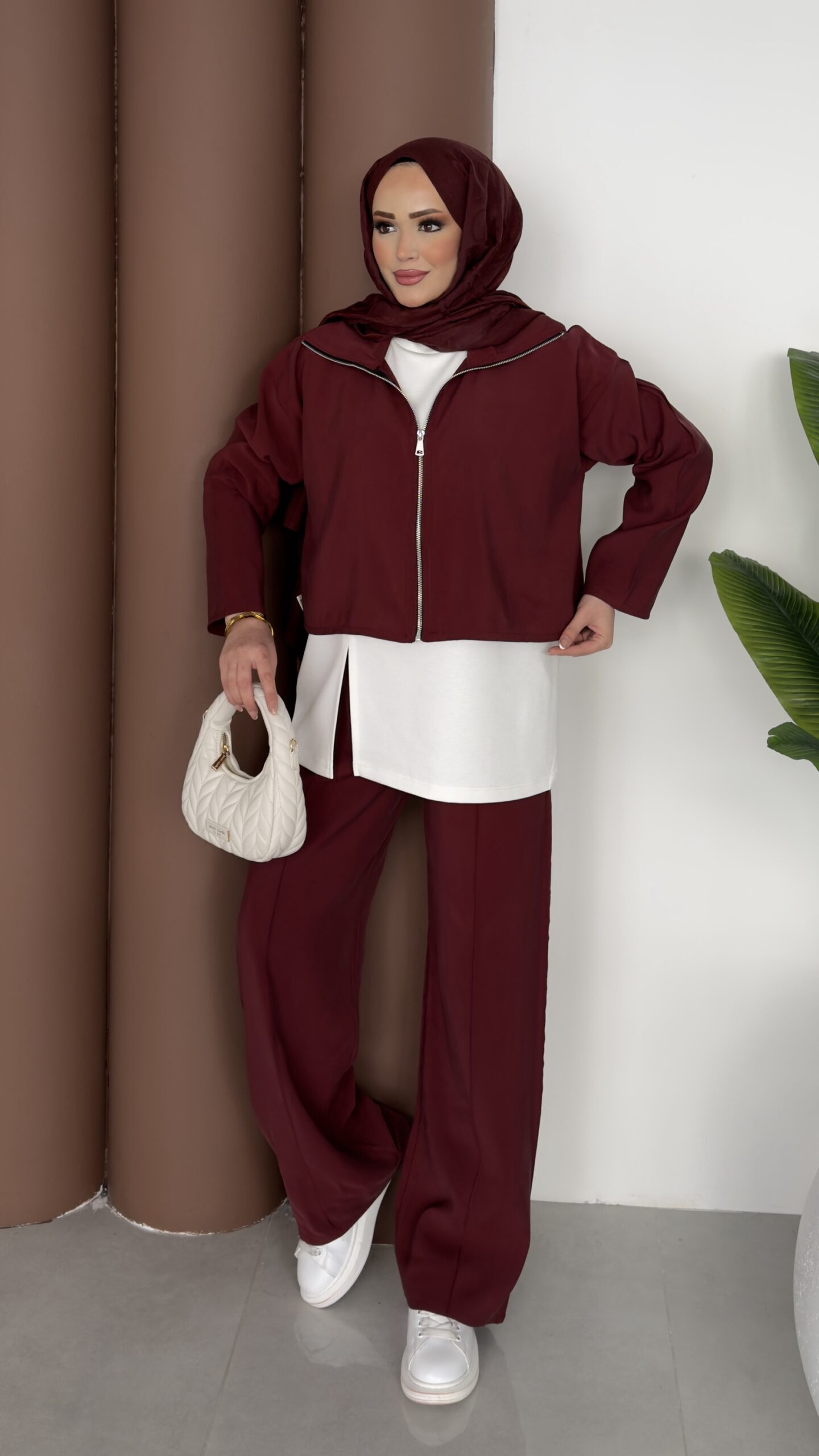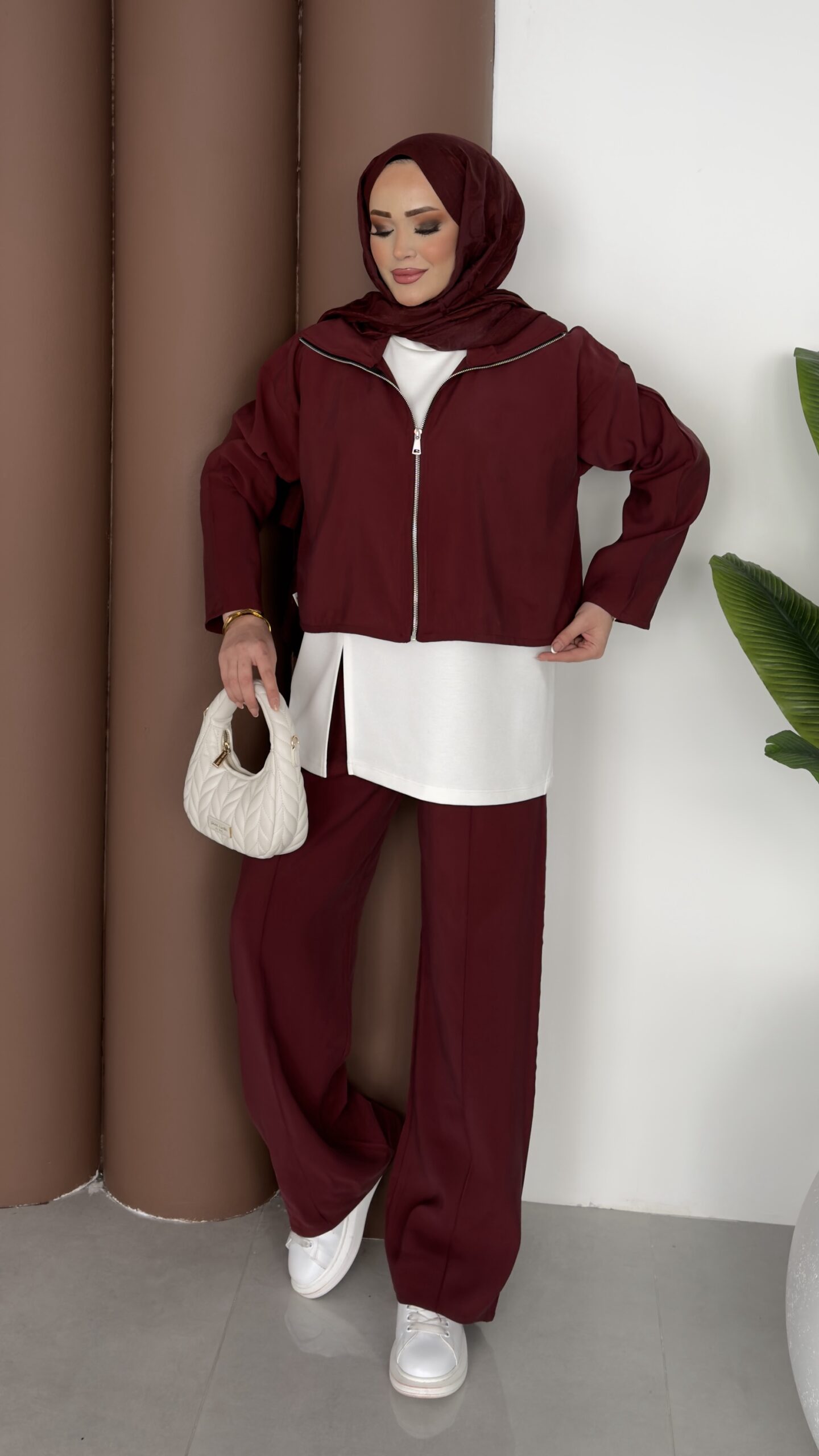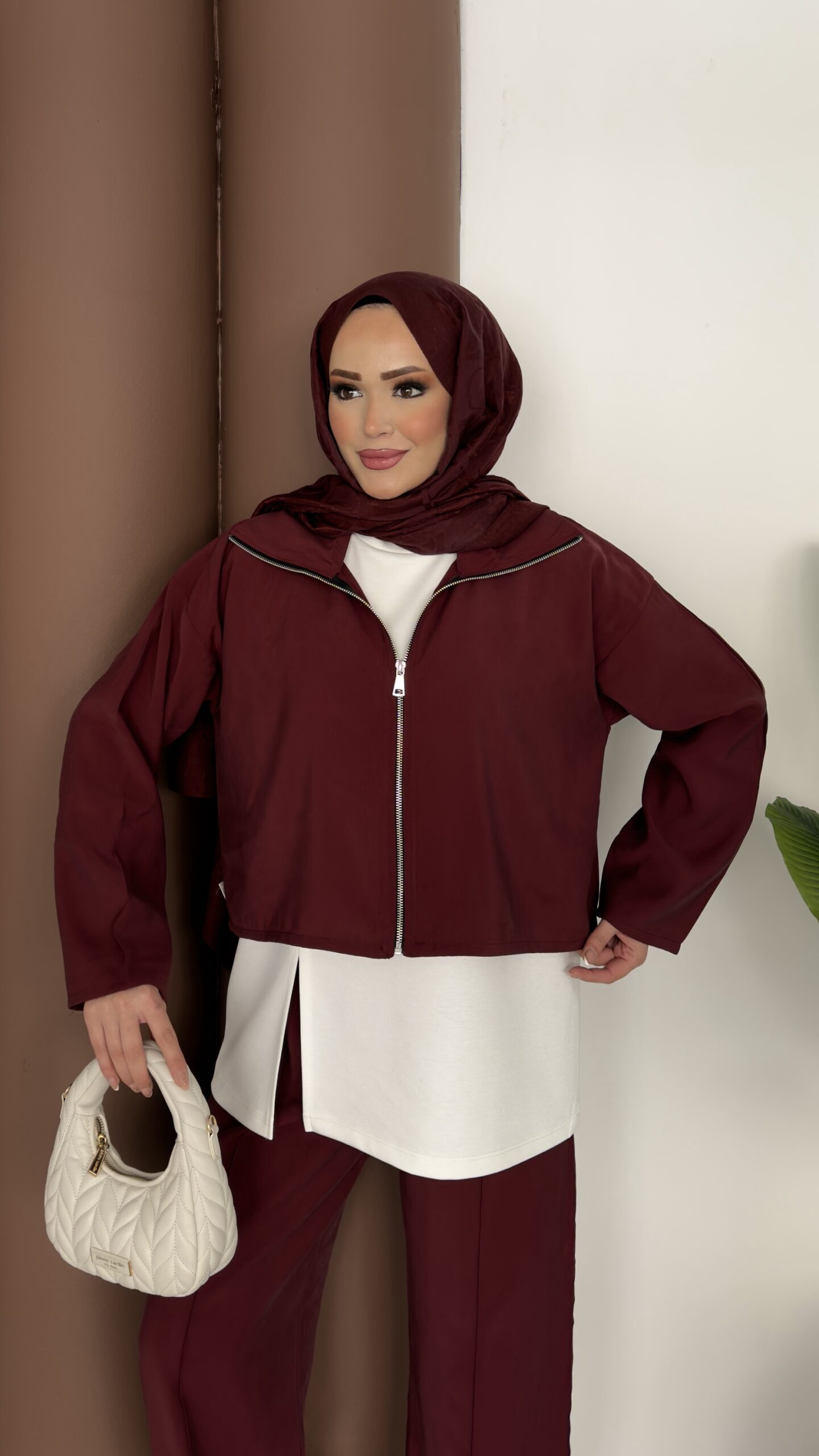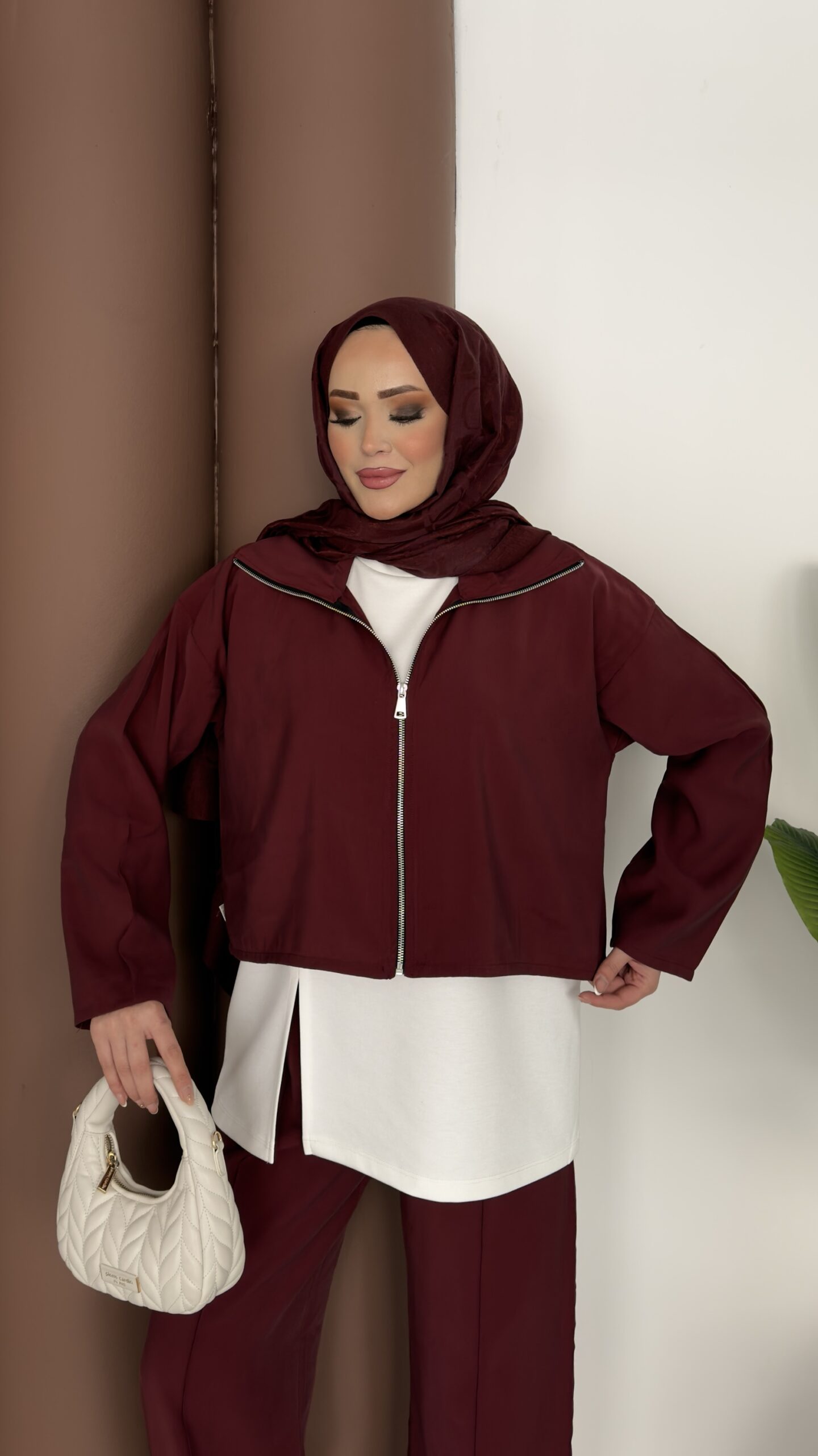Crop Tensel İçlikli İkili Takım – Bordo