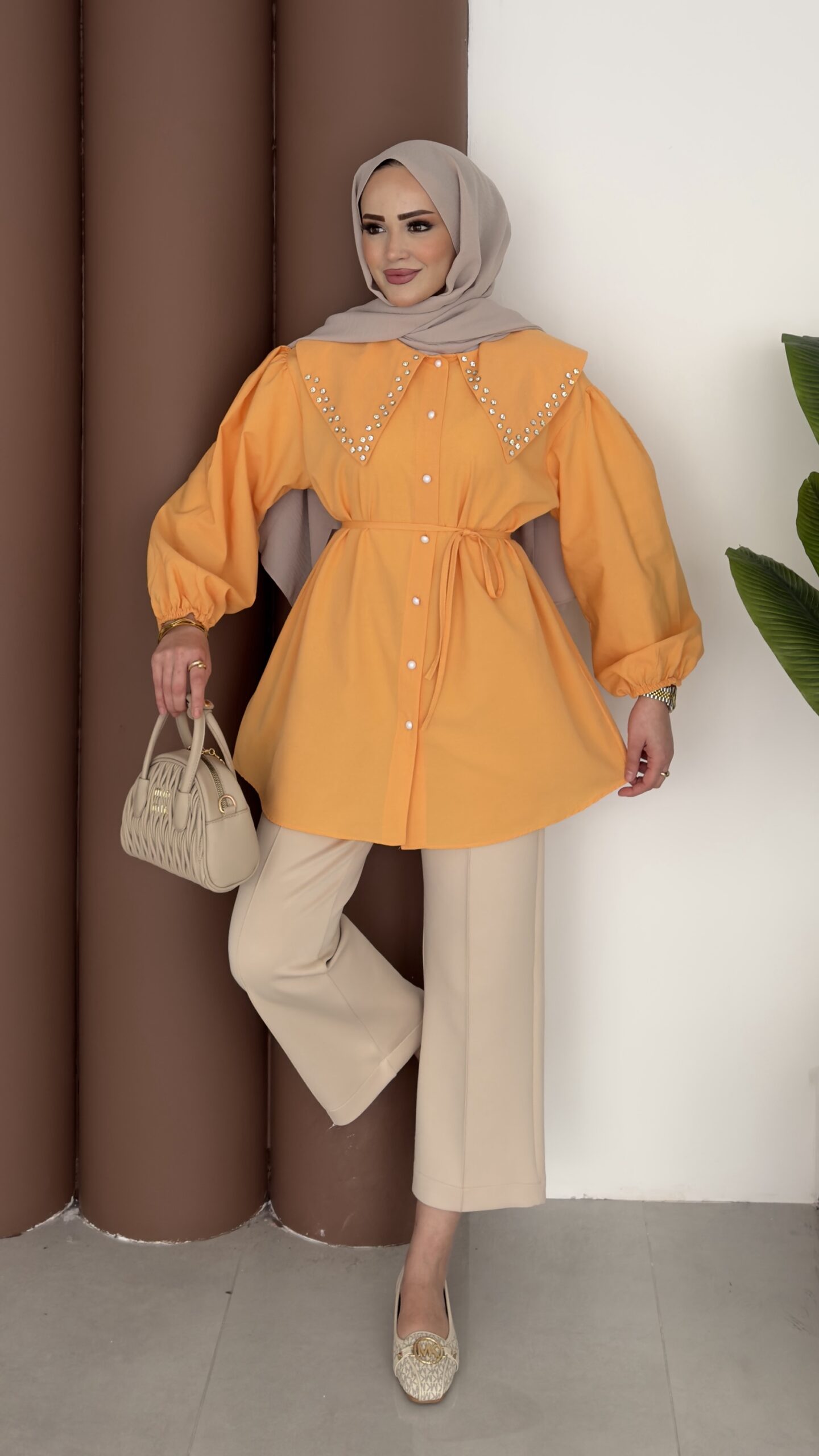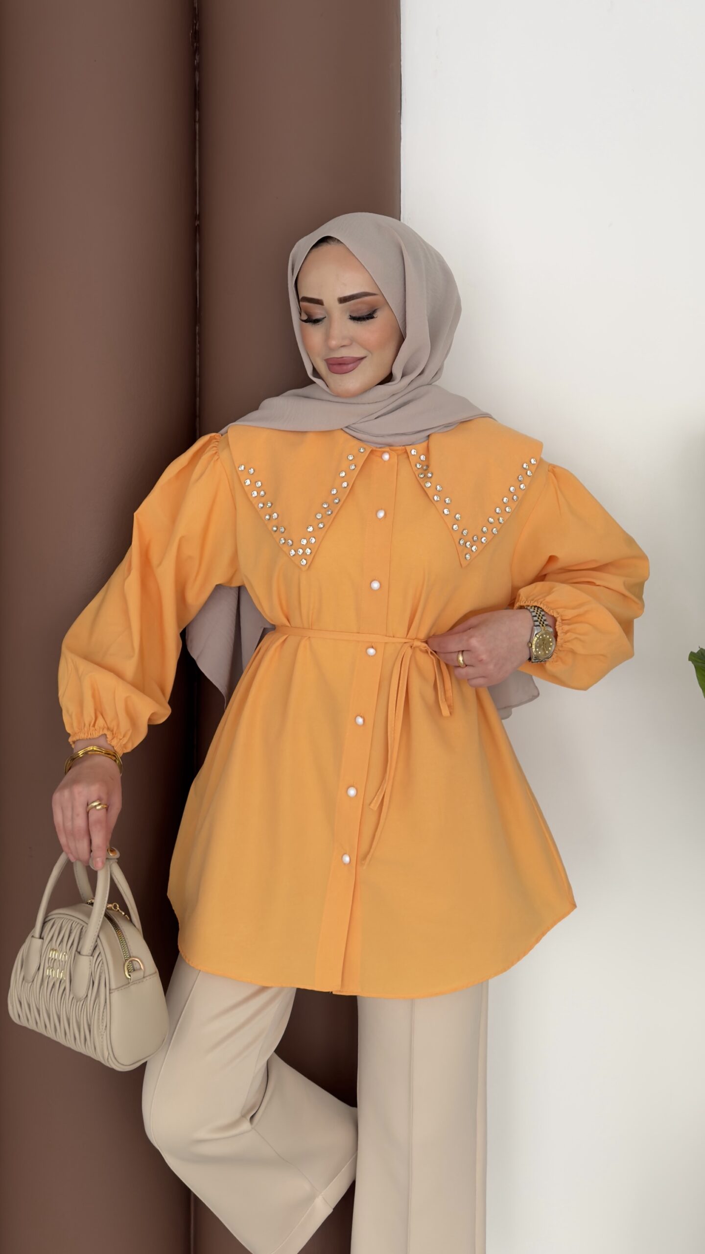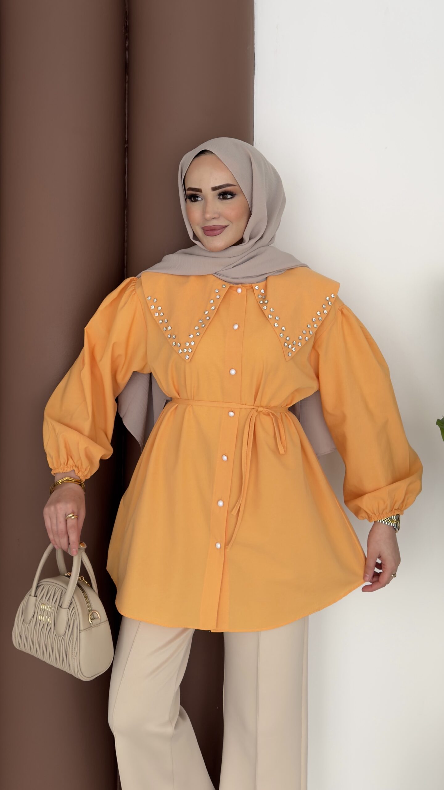 Diva Yakası Taşlı Gömlek – Orange