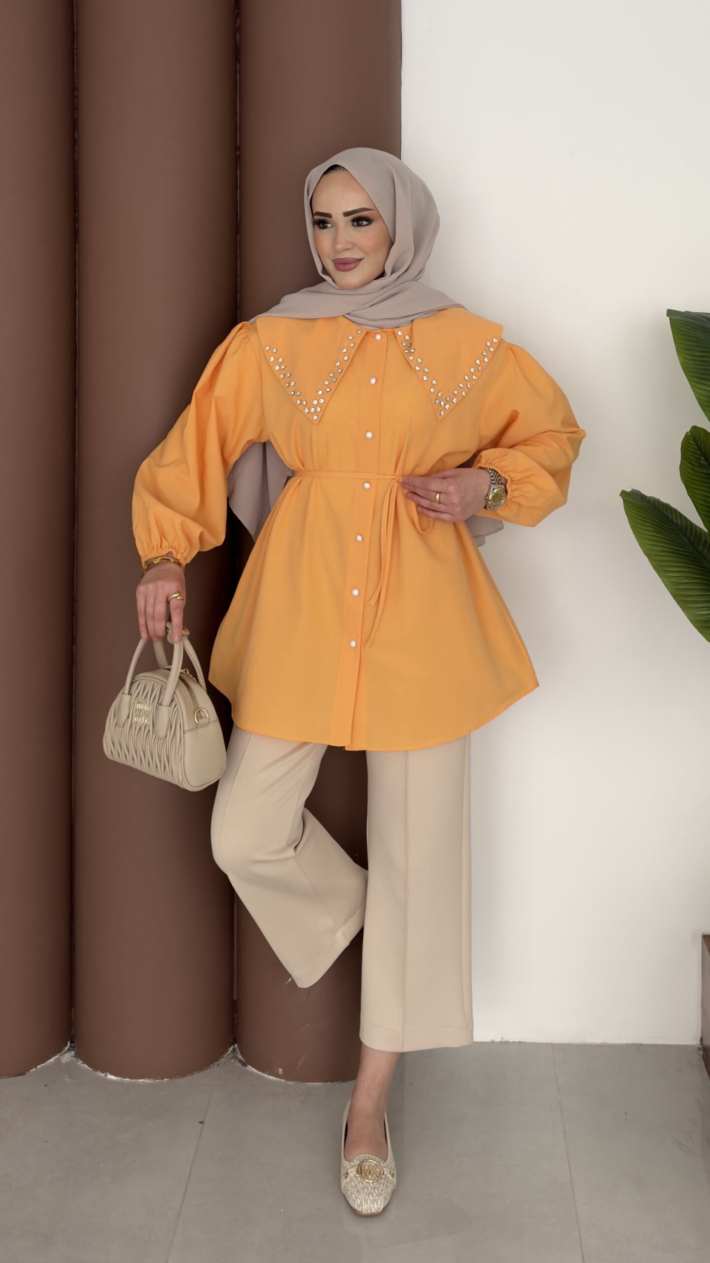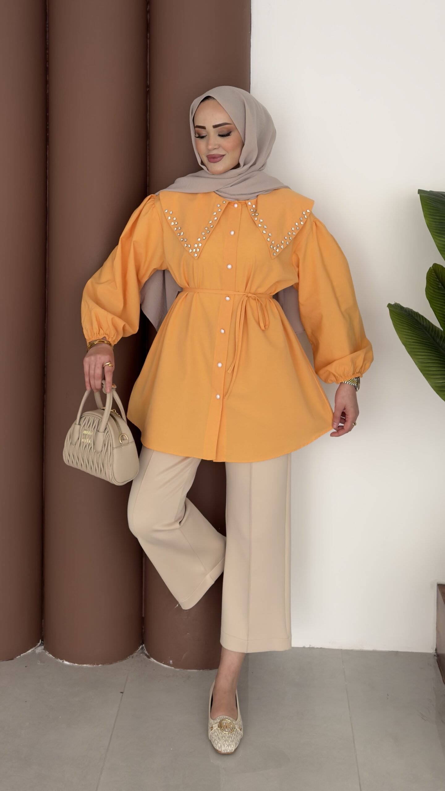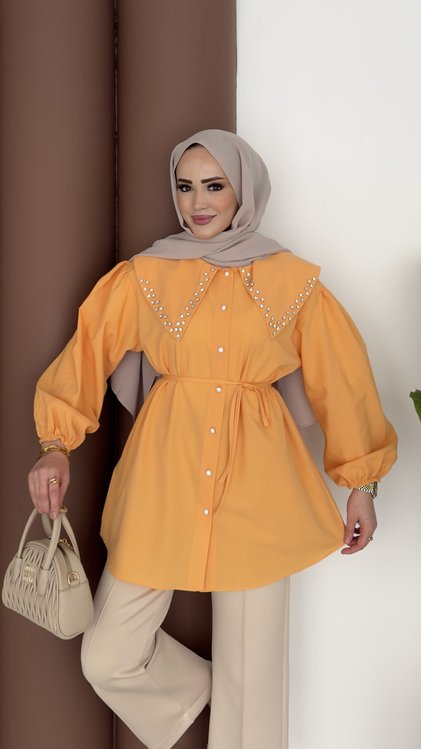 Diva Yakası Taşlı Gömlek – Orange