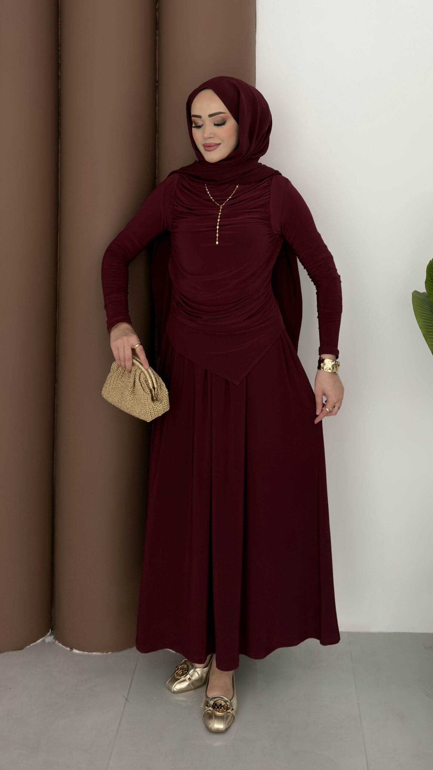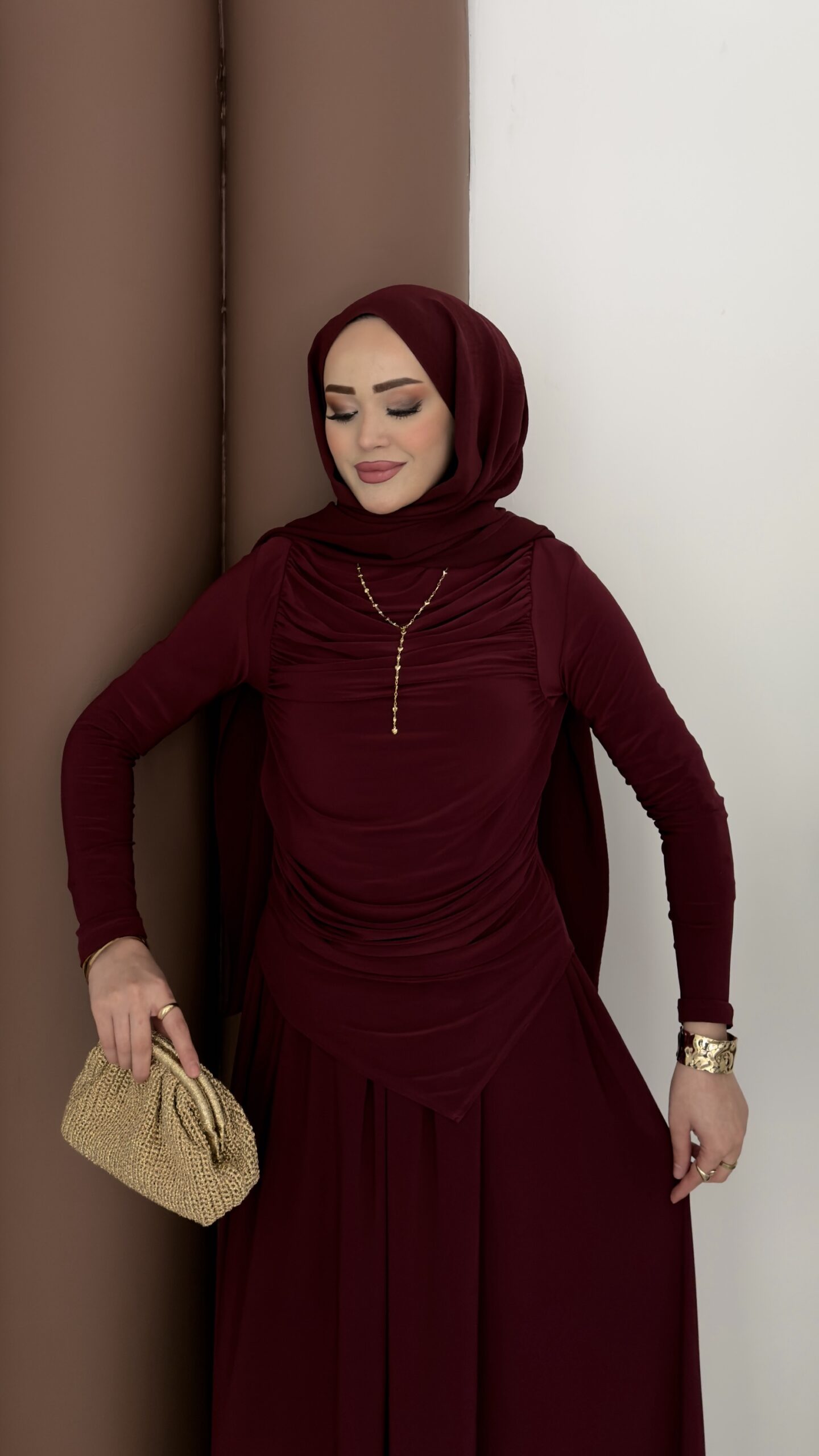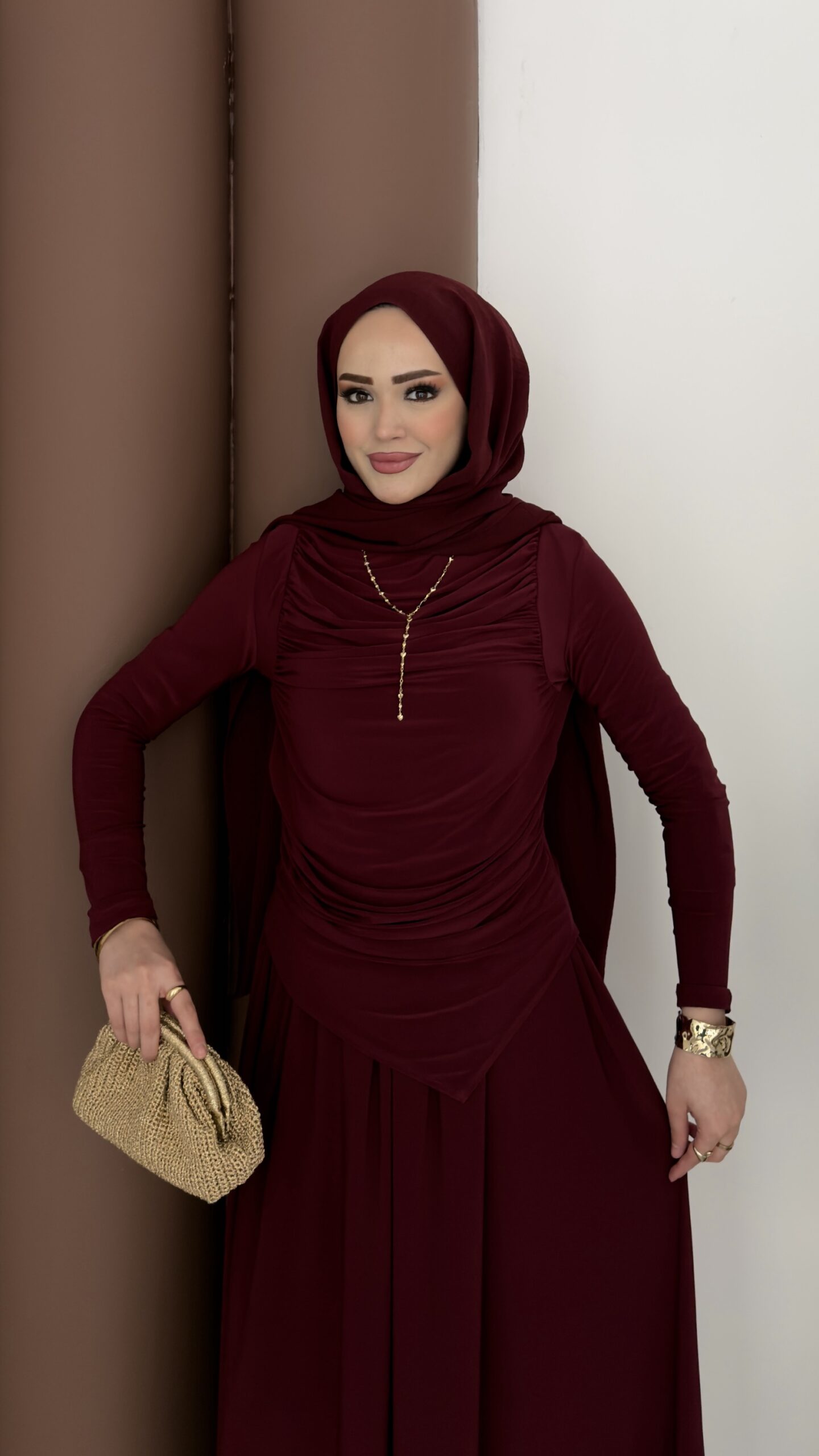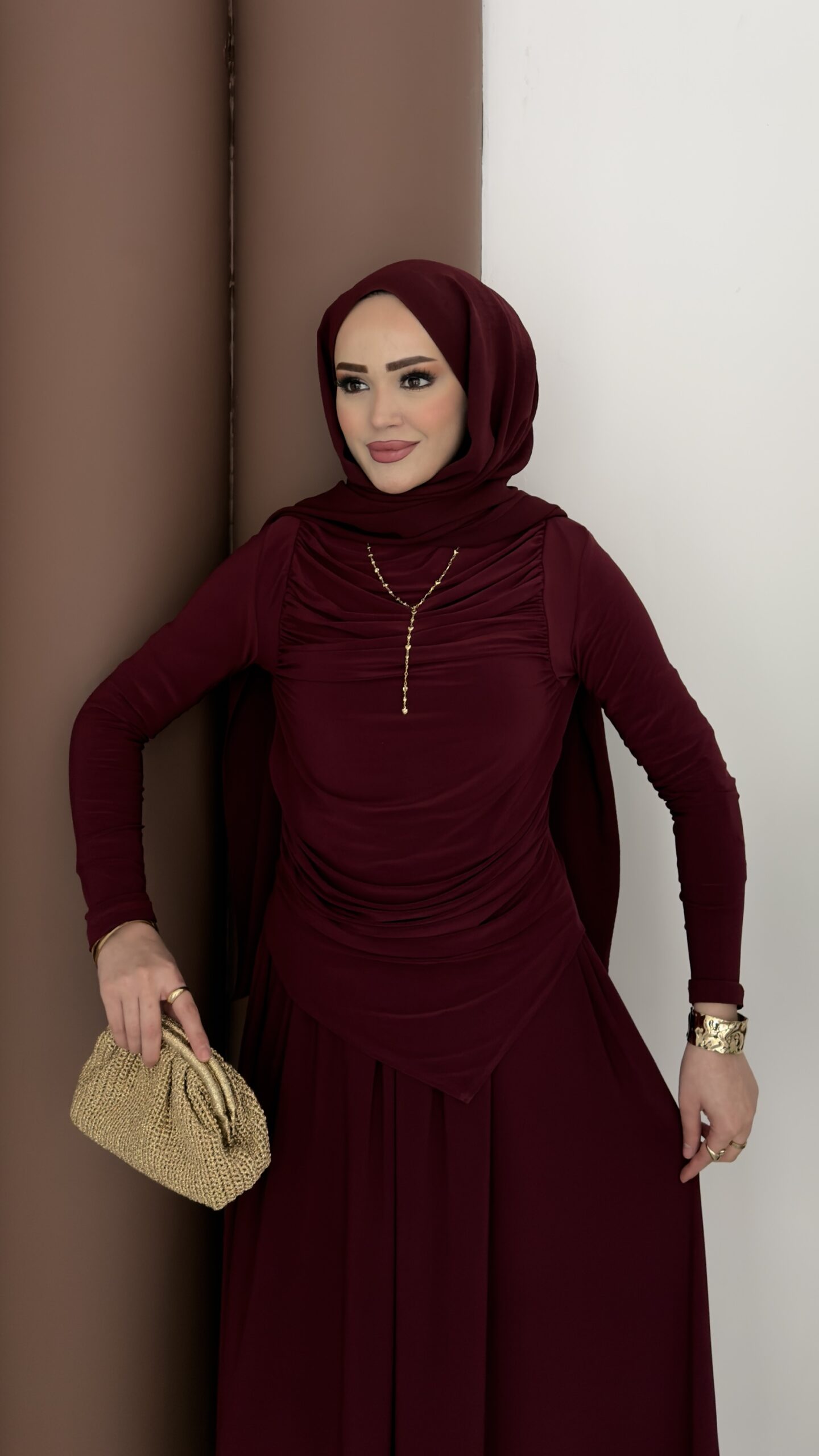 Drapeli Sandy Etekli İkili Takım – Bordo