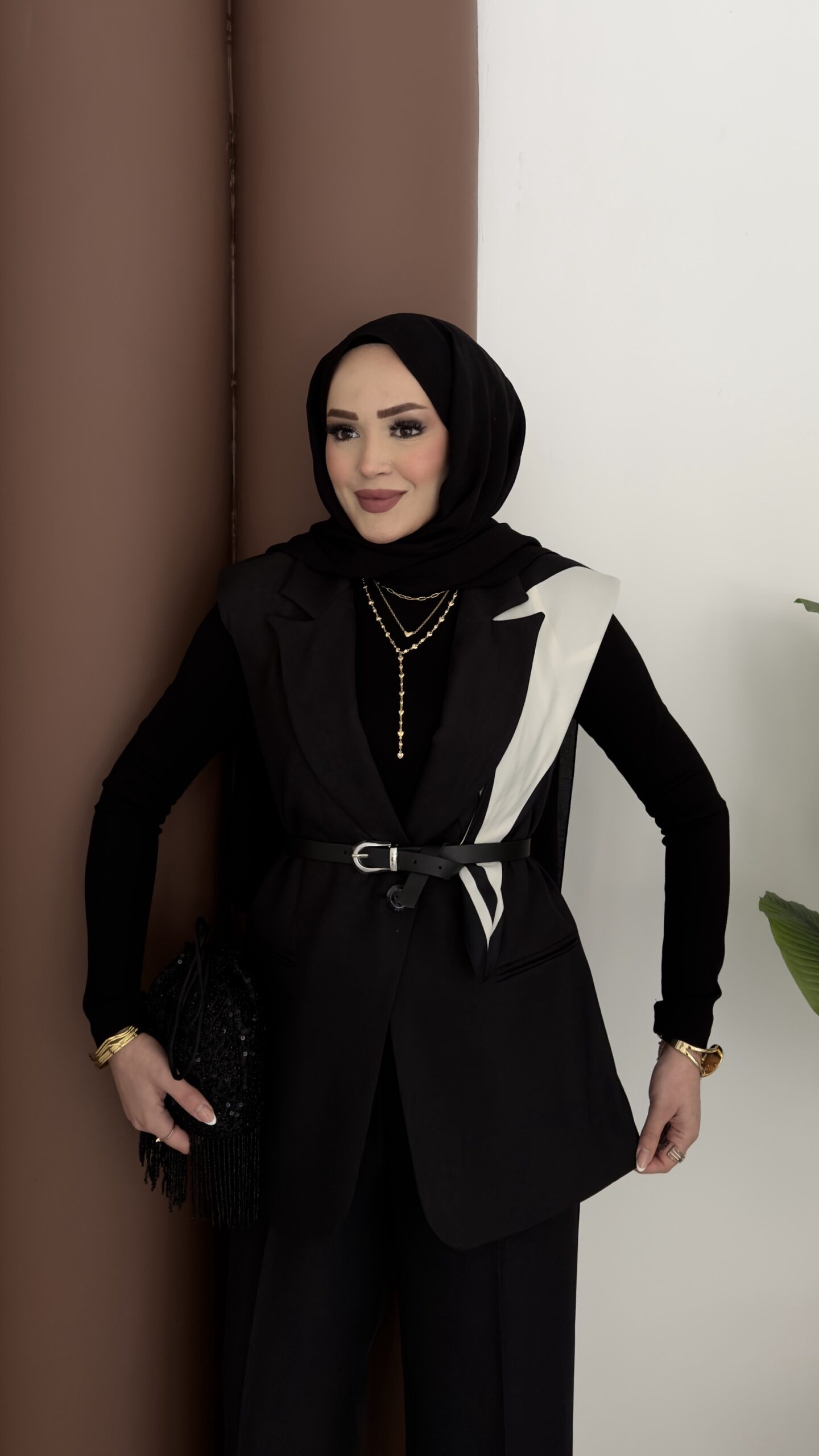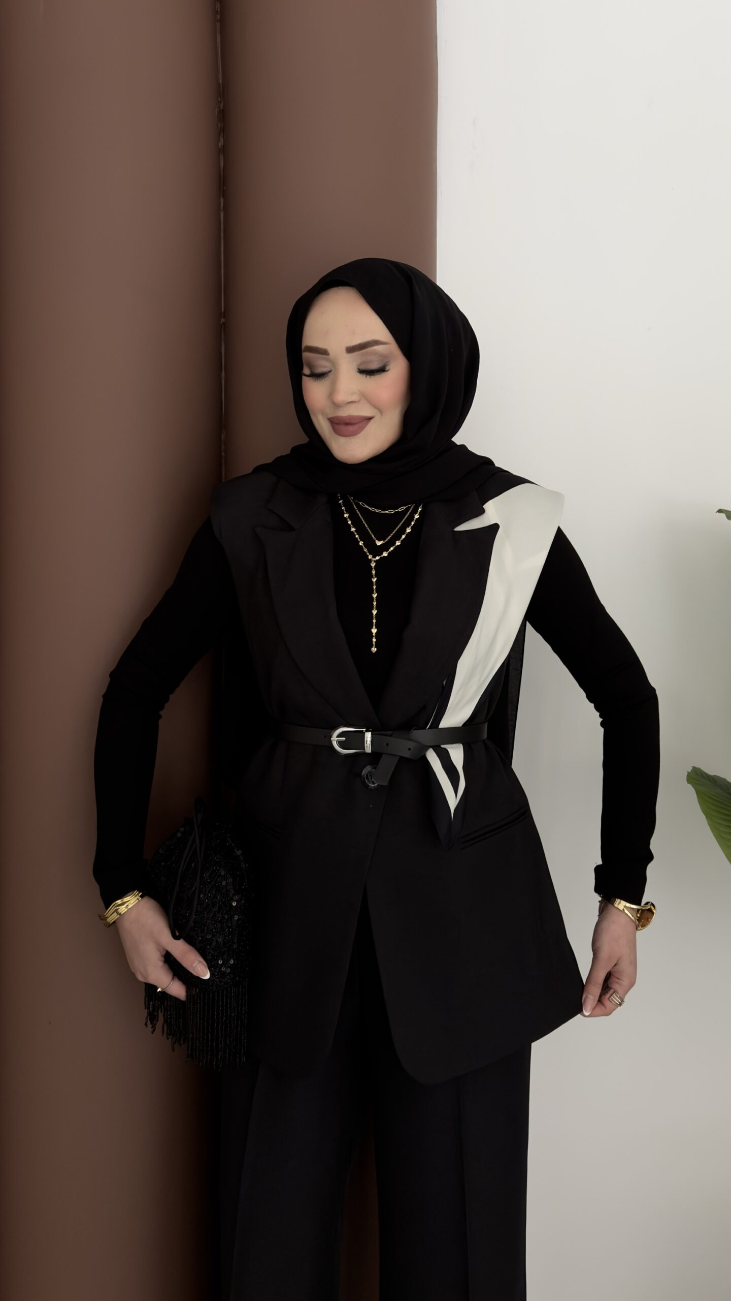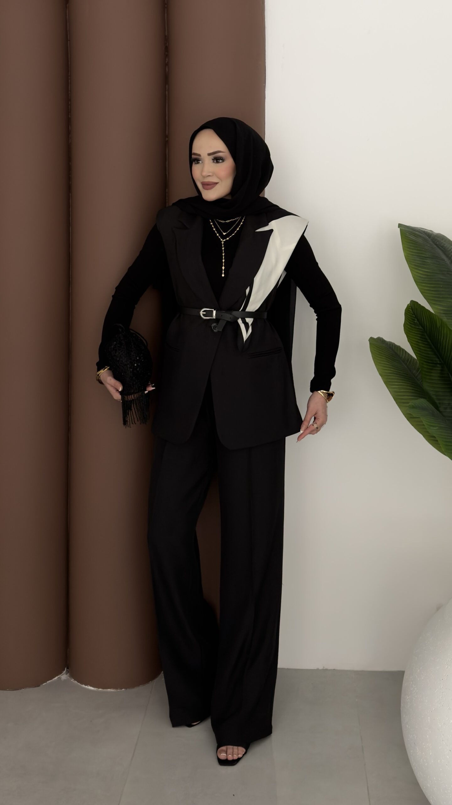 Dufy Kemerli Yelek İkili Takım – Siyah