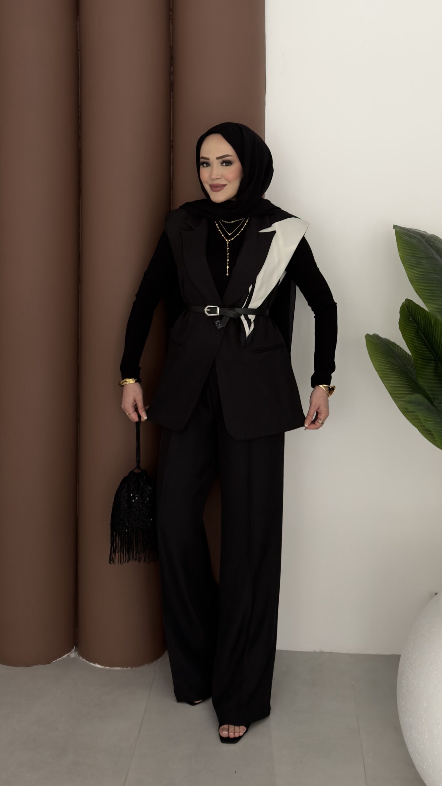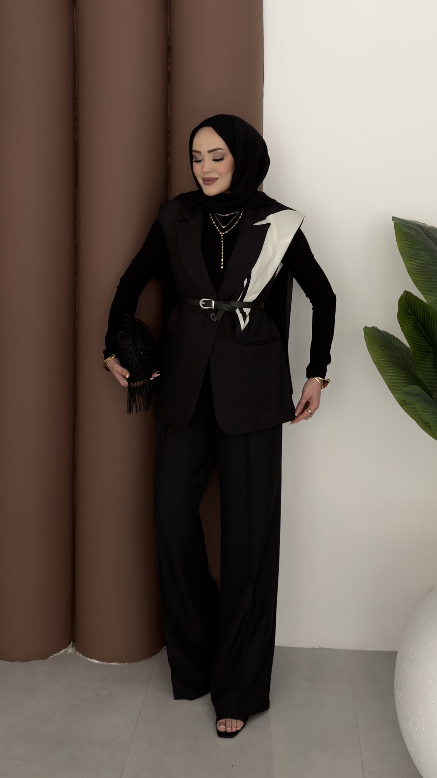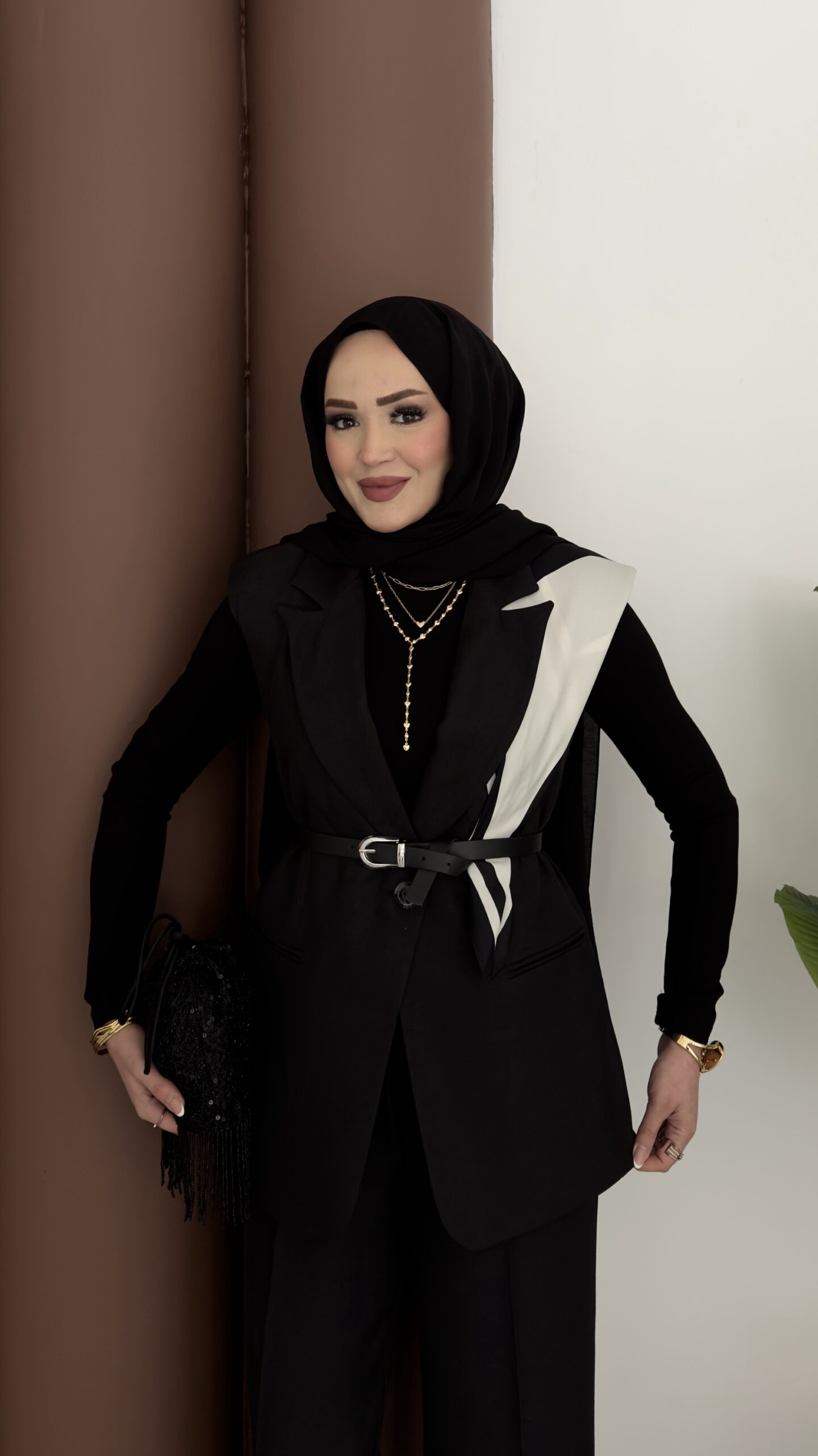 Dufy Kemerli Yelek İkili Takım – Siyah