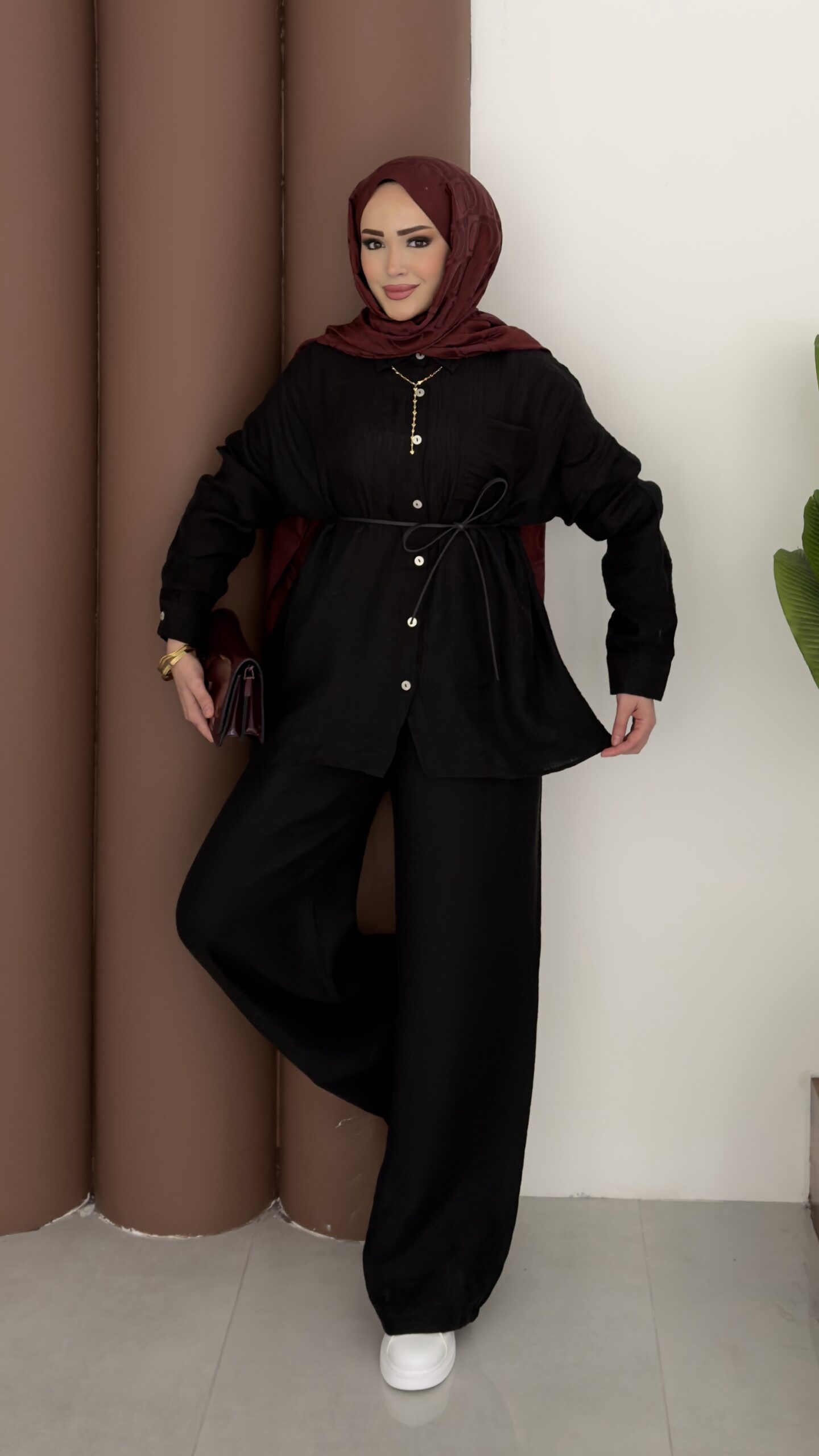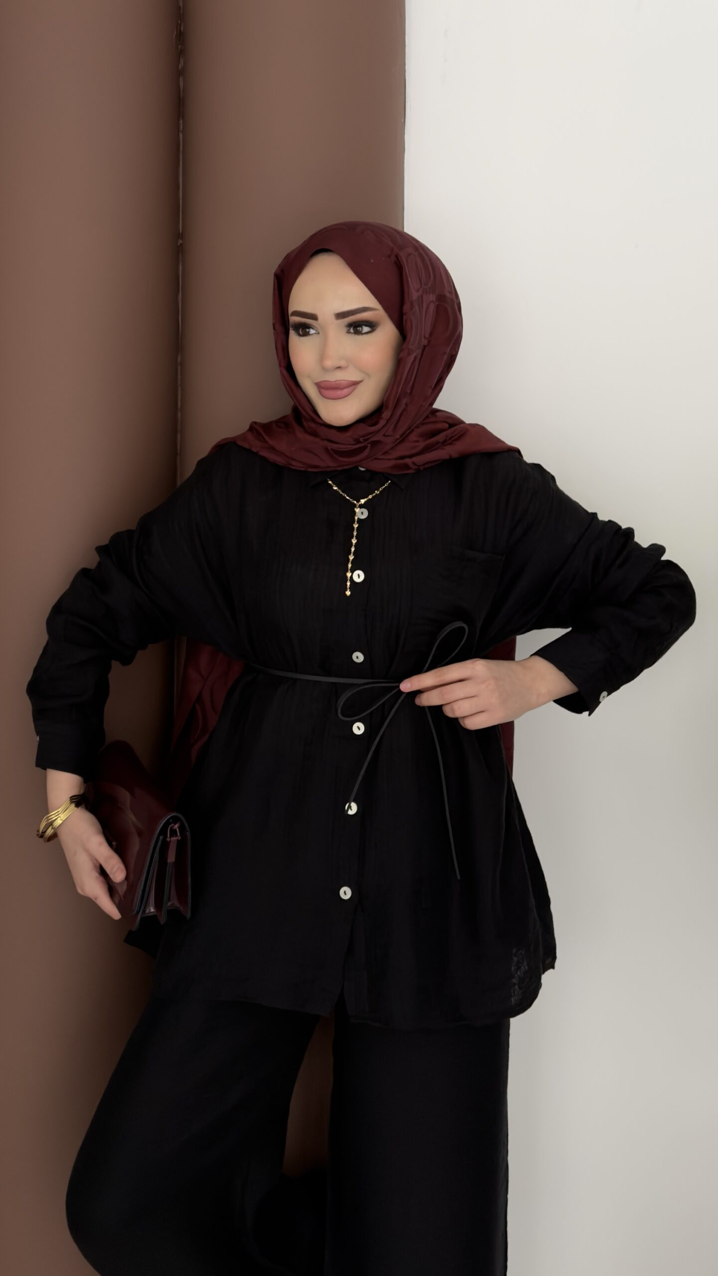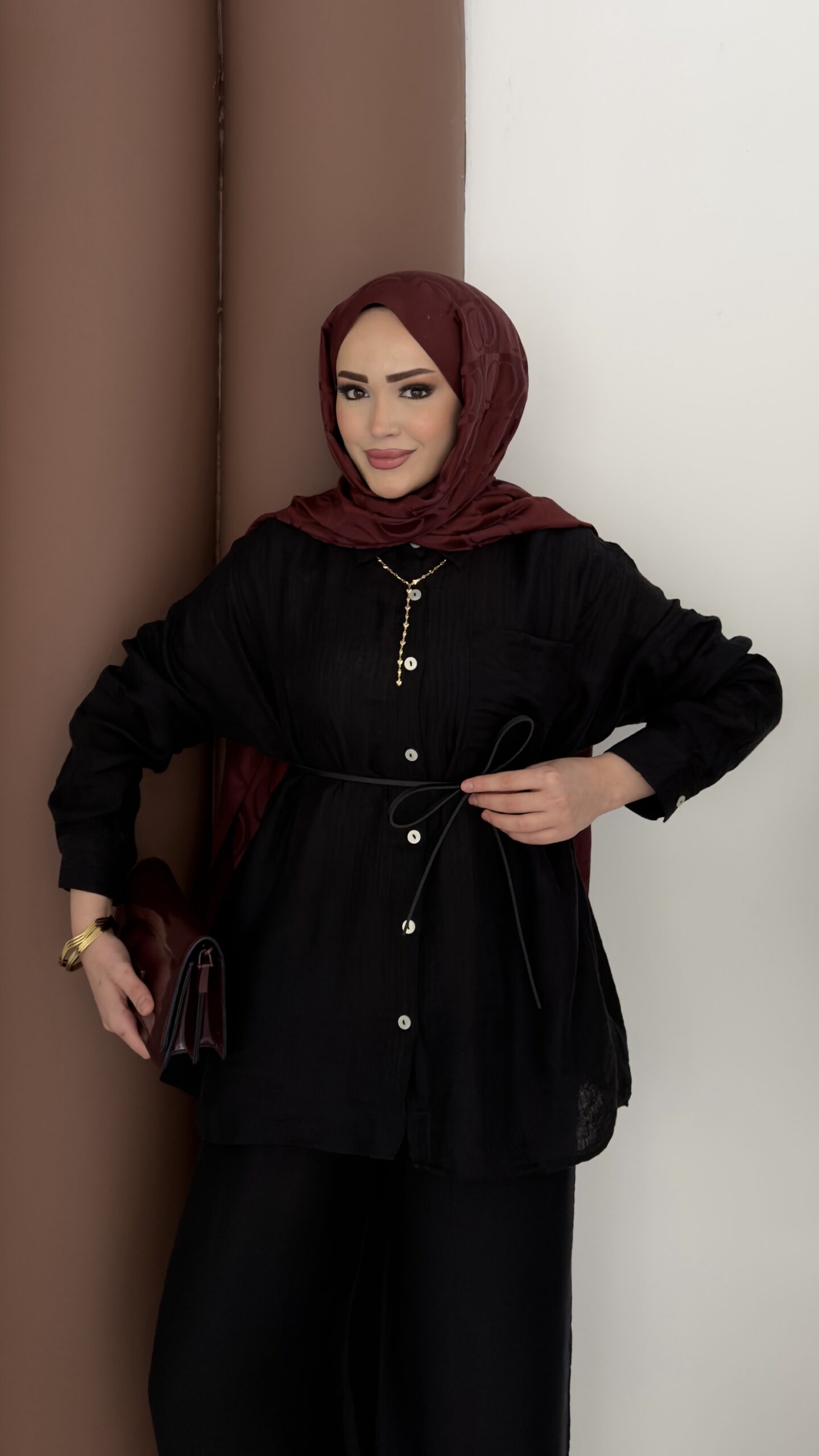 Elinnor Müslin Kemerli İkili Takım – Siyah