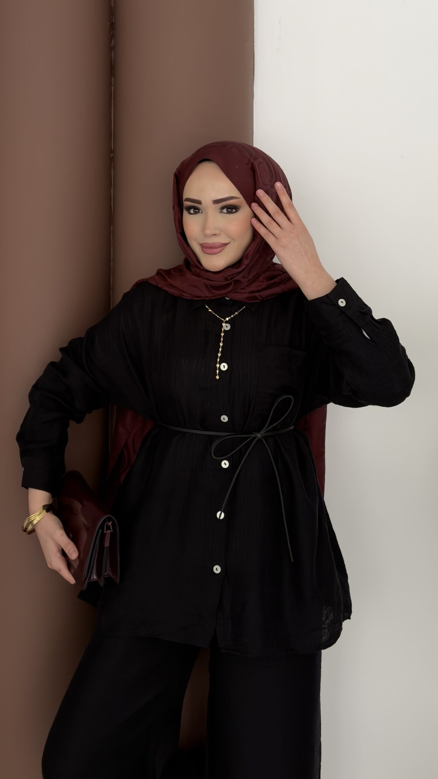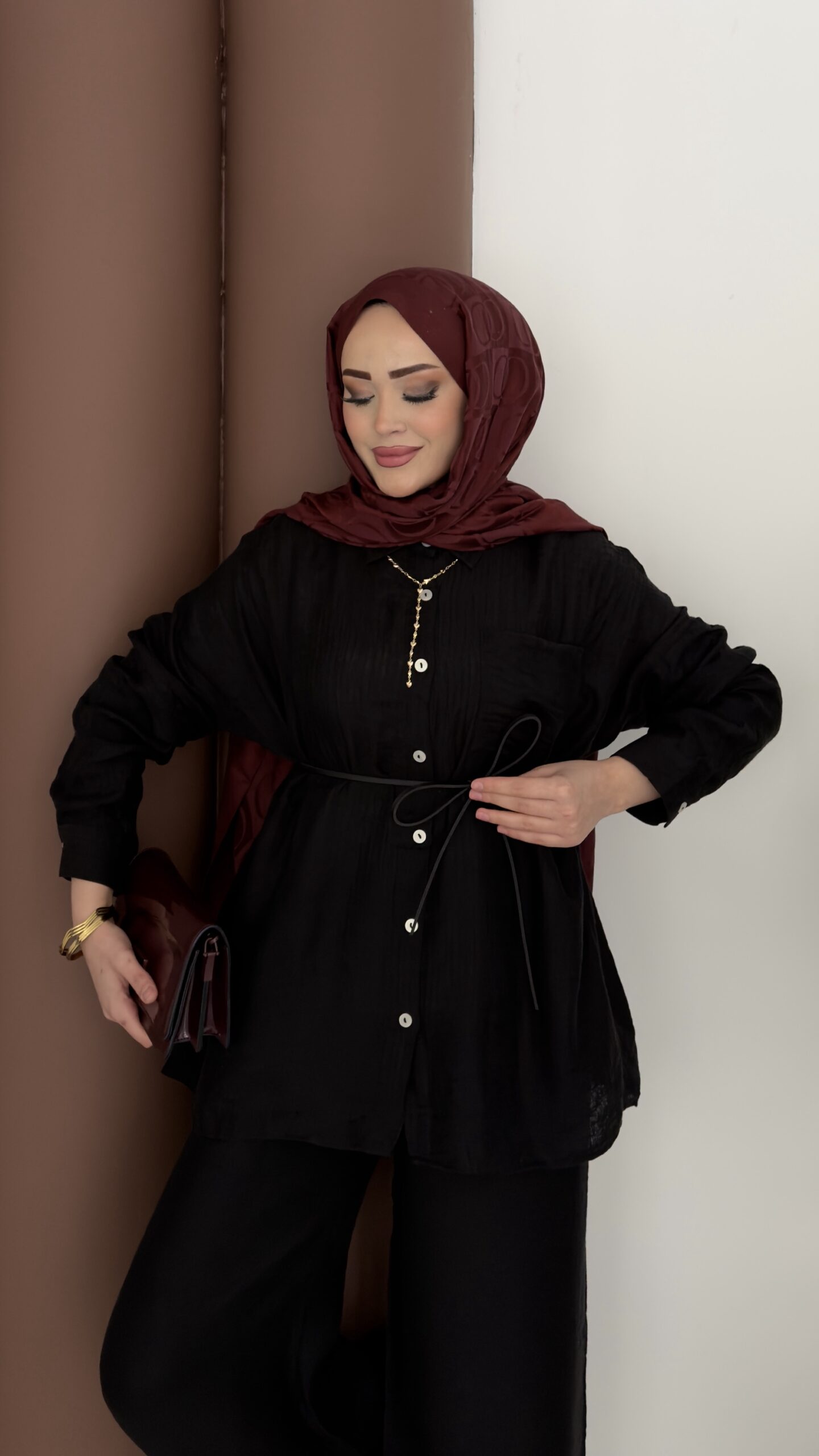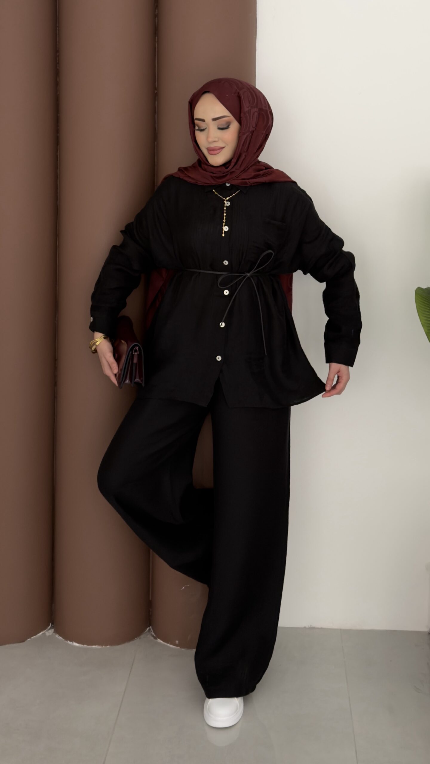 Elinnor Müslin Kemerli İkili Takım – Siyah