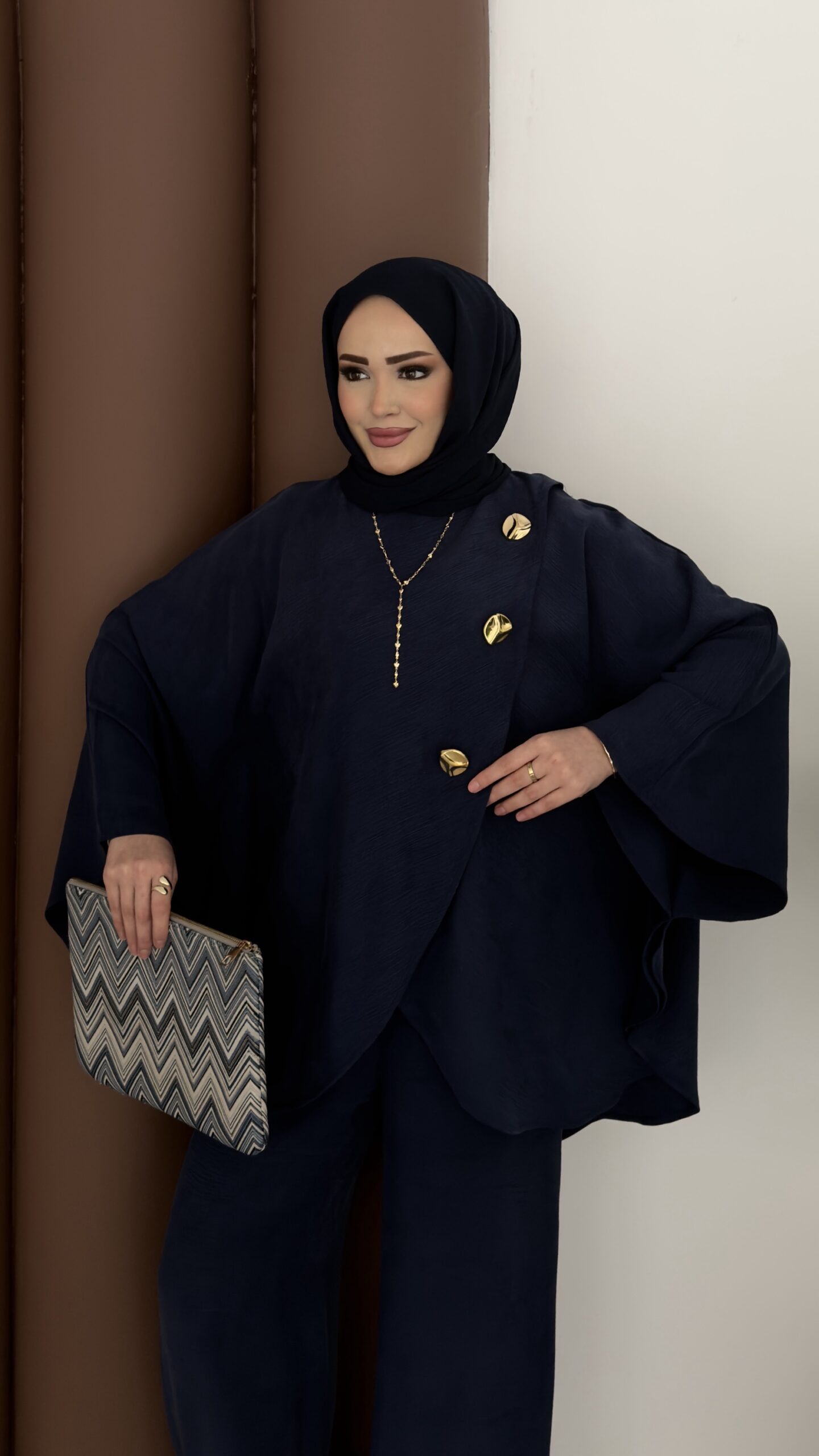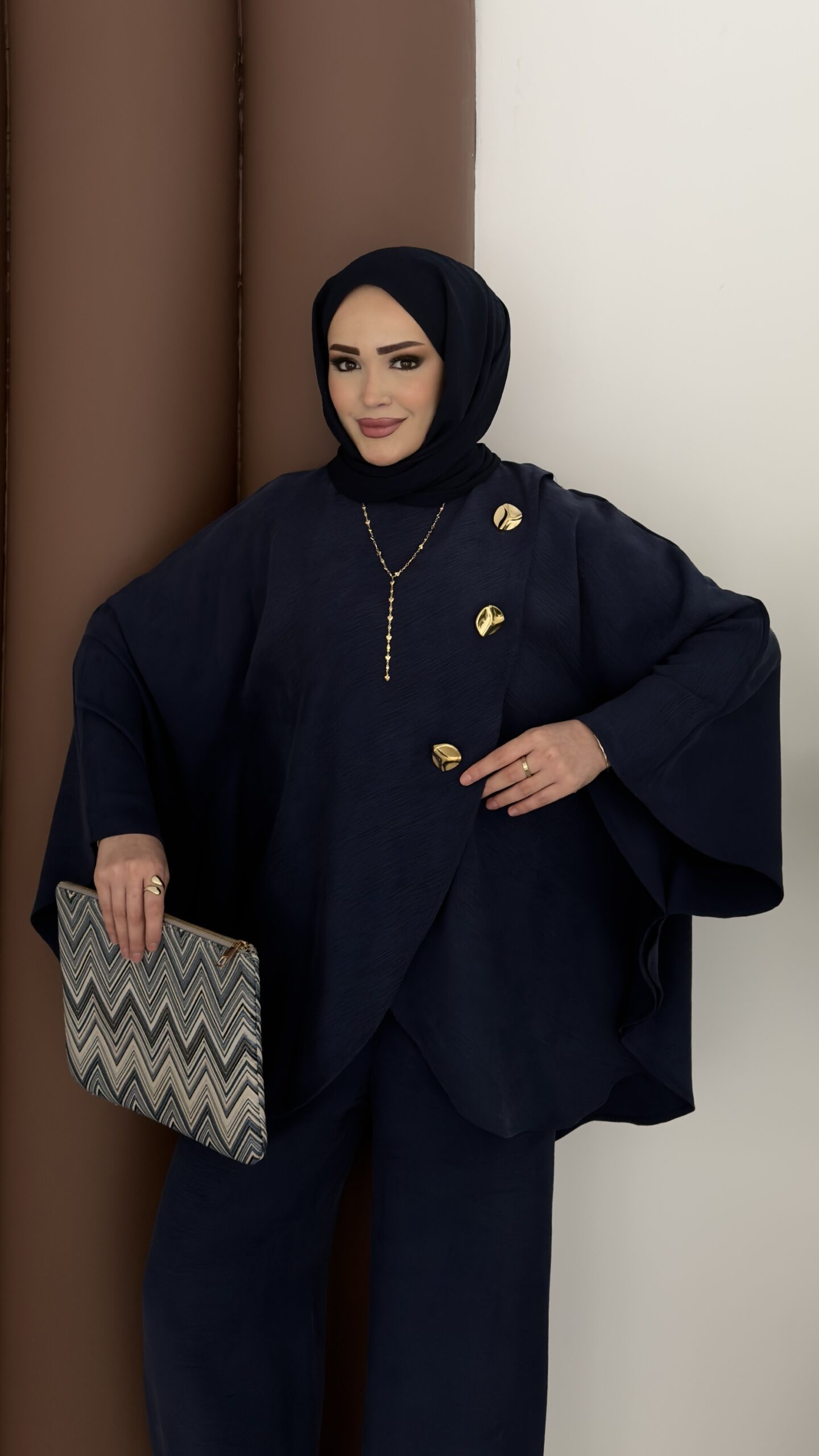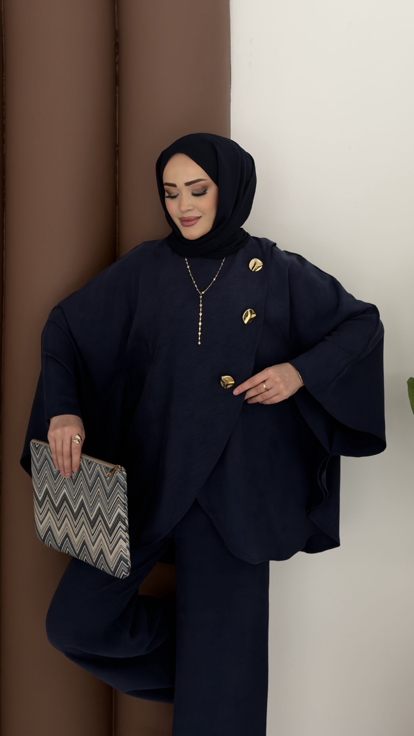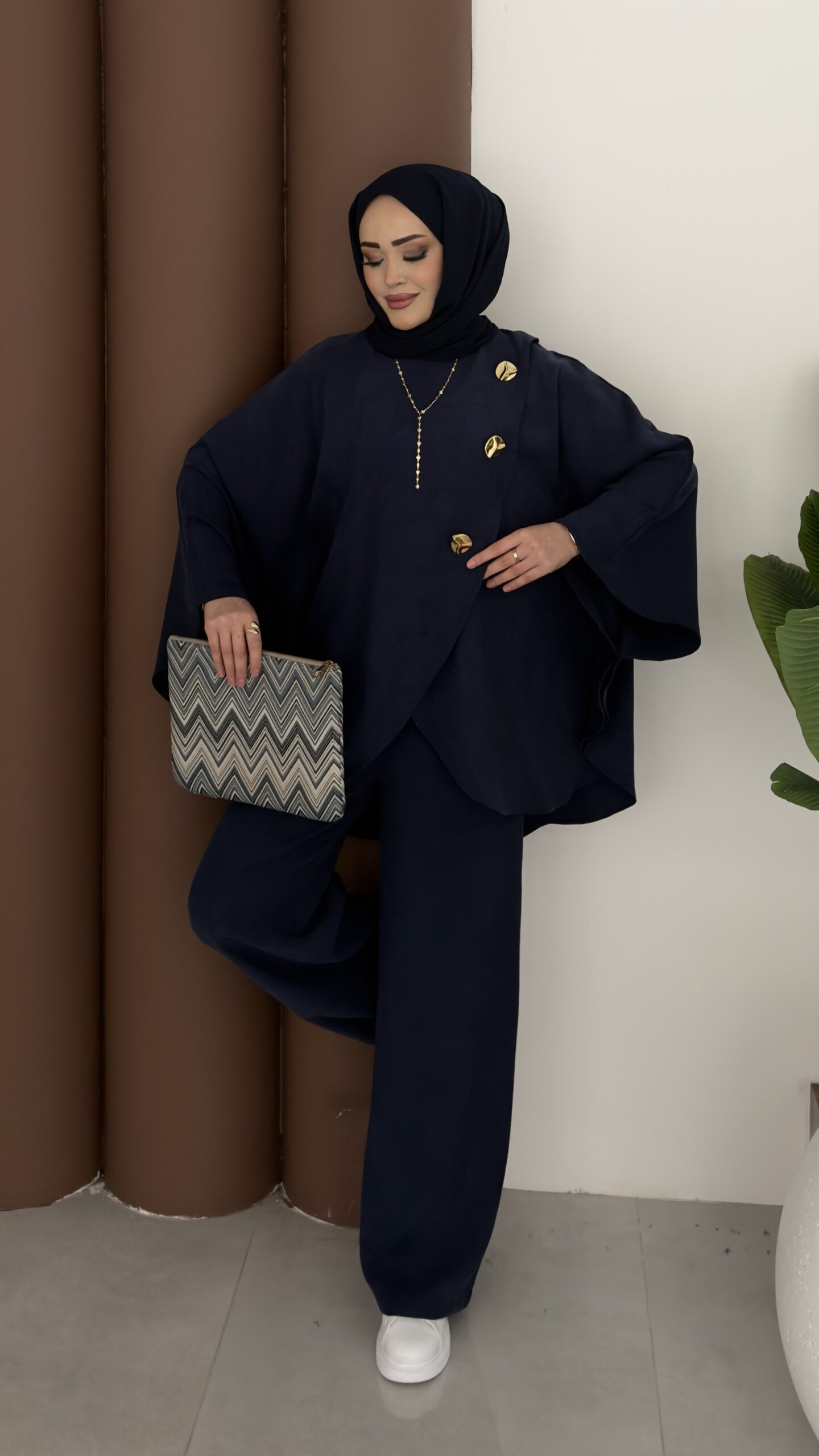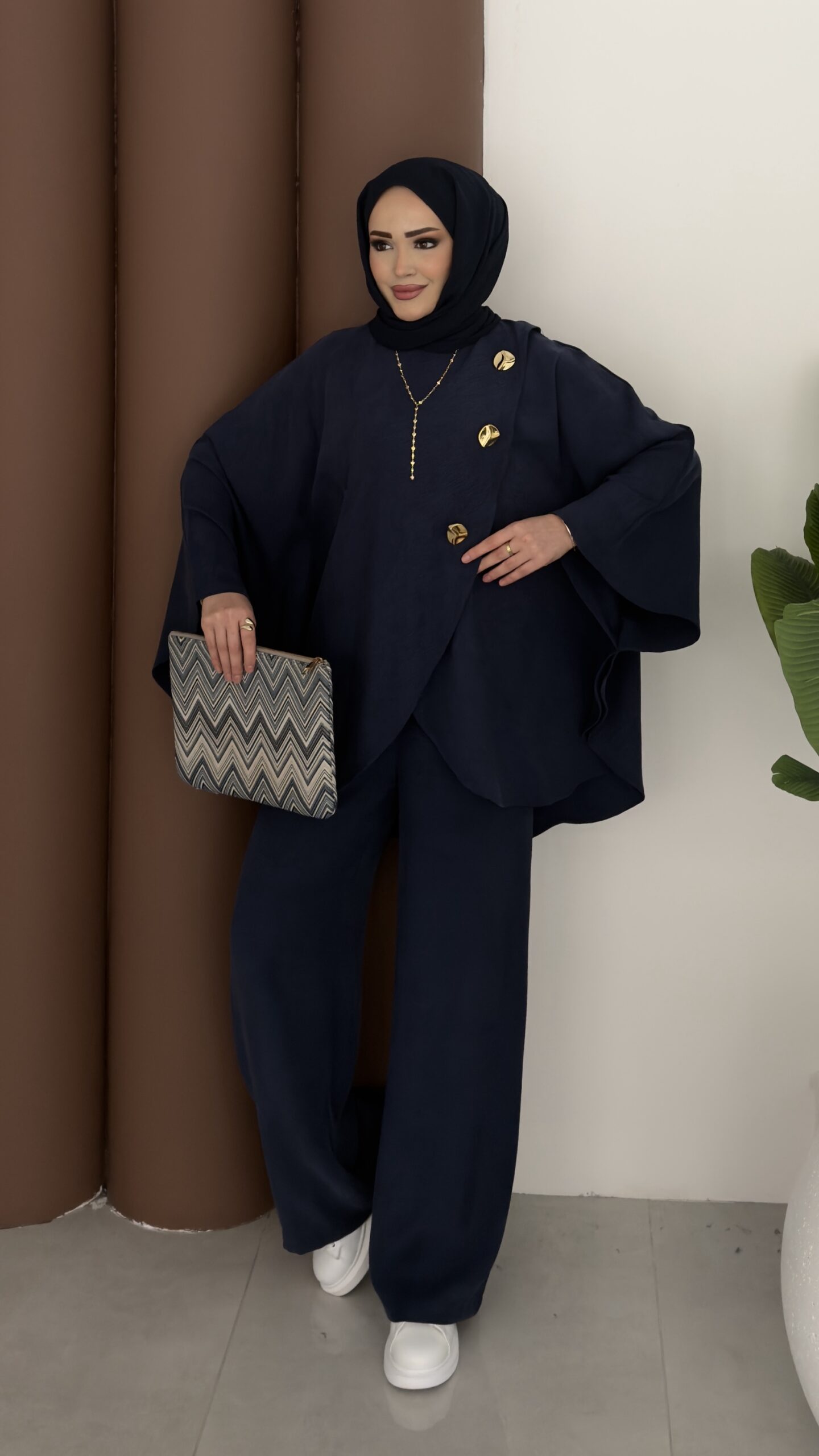 Gold Düğmeli Panço İkili Takım – Lacivert