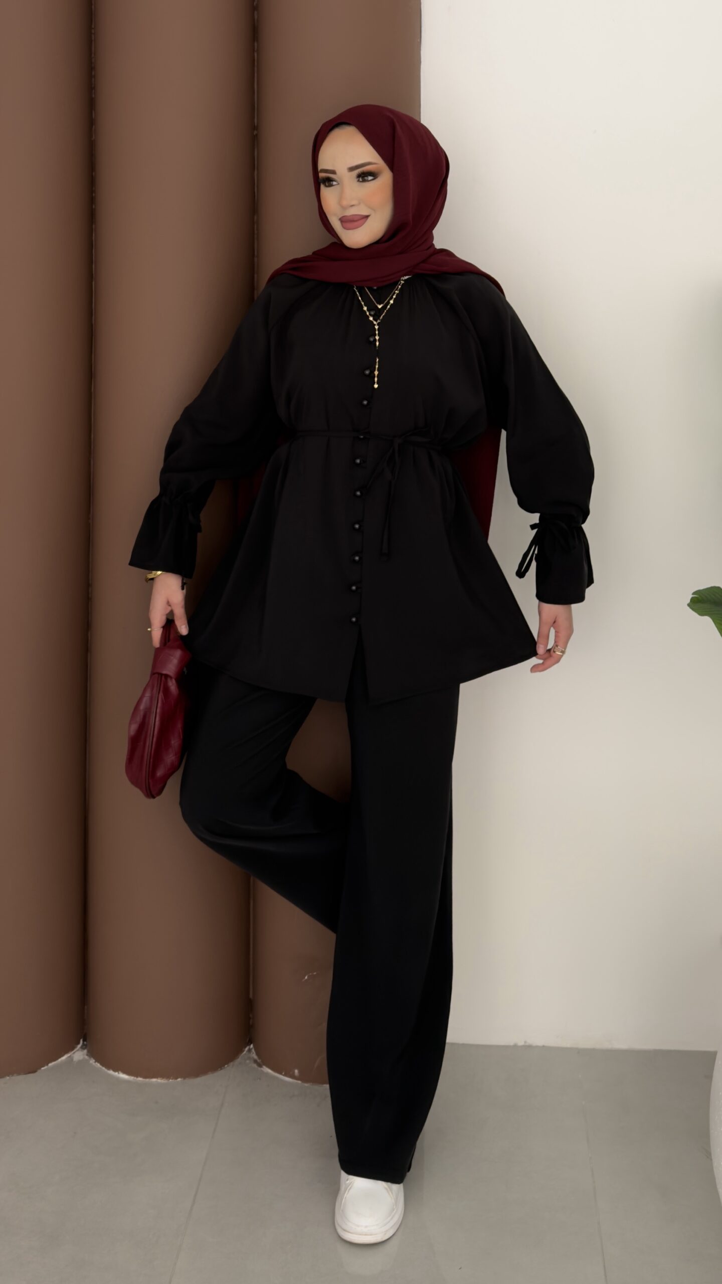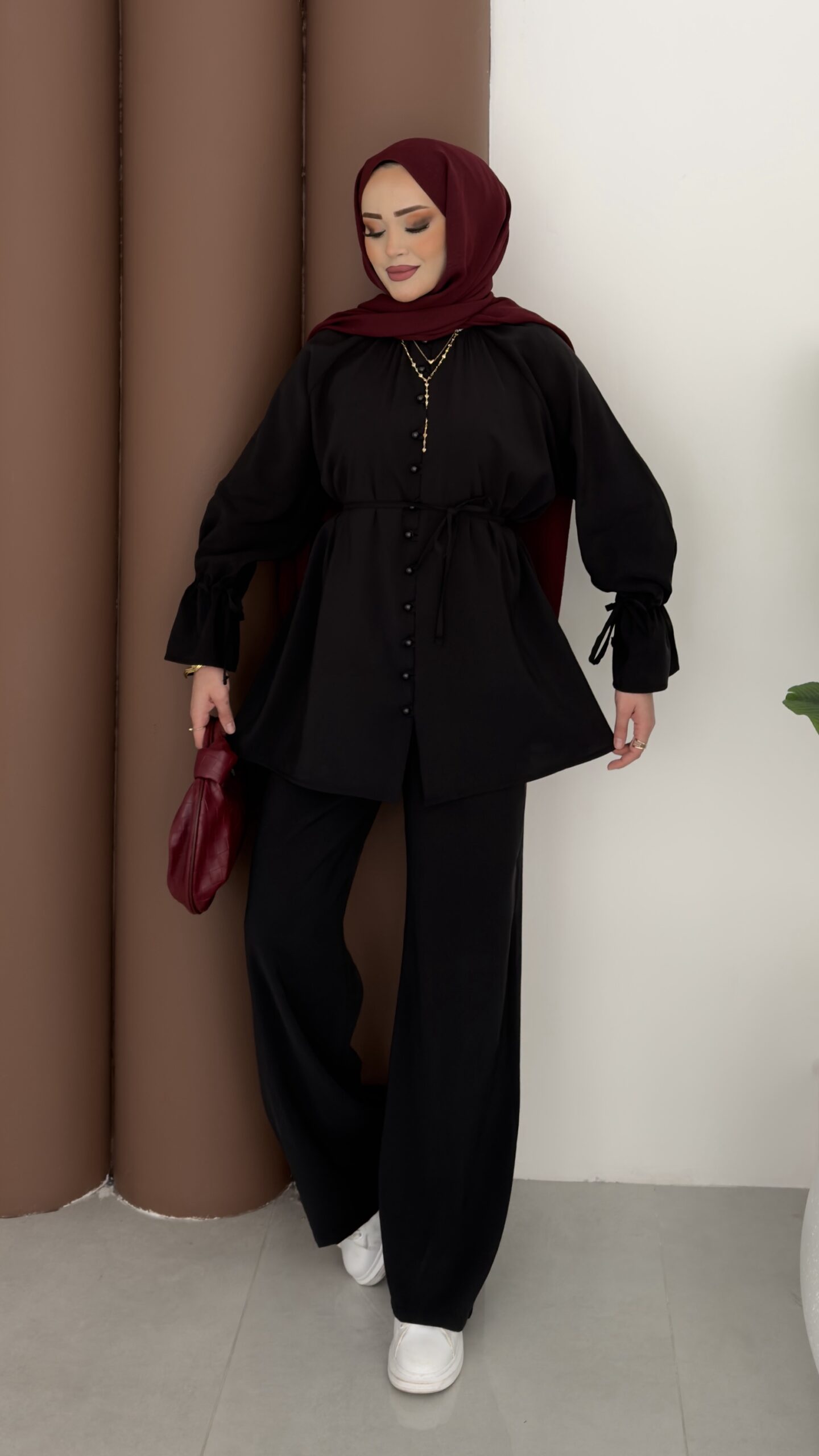 Helen Düğmeli Tensel İkili Takım – Siyah