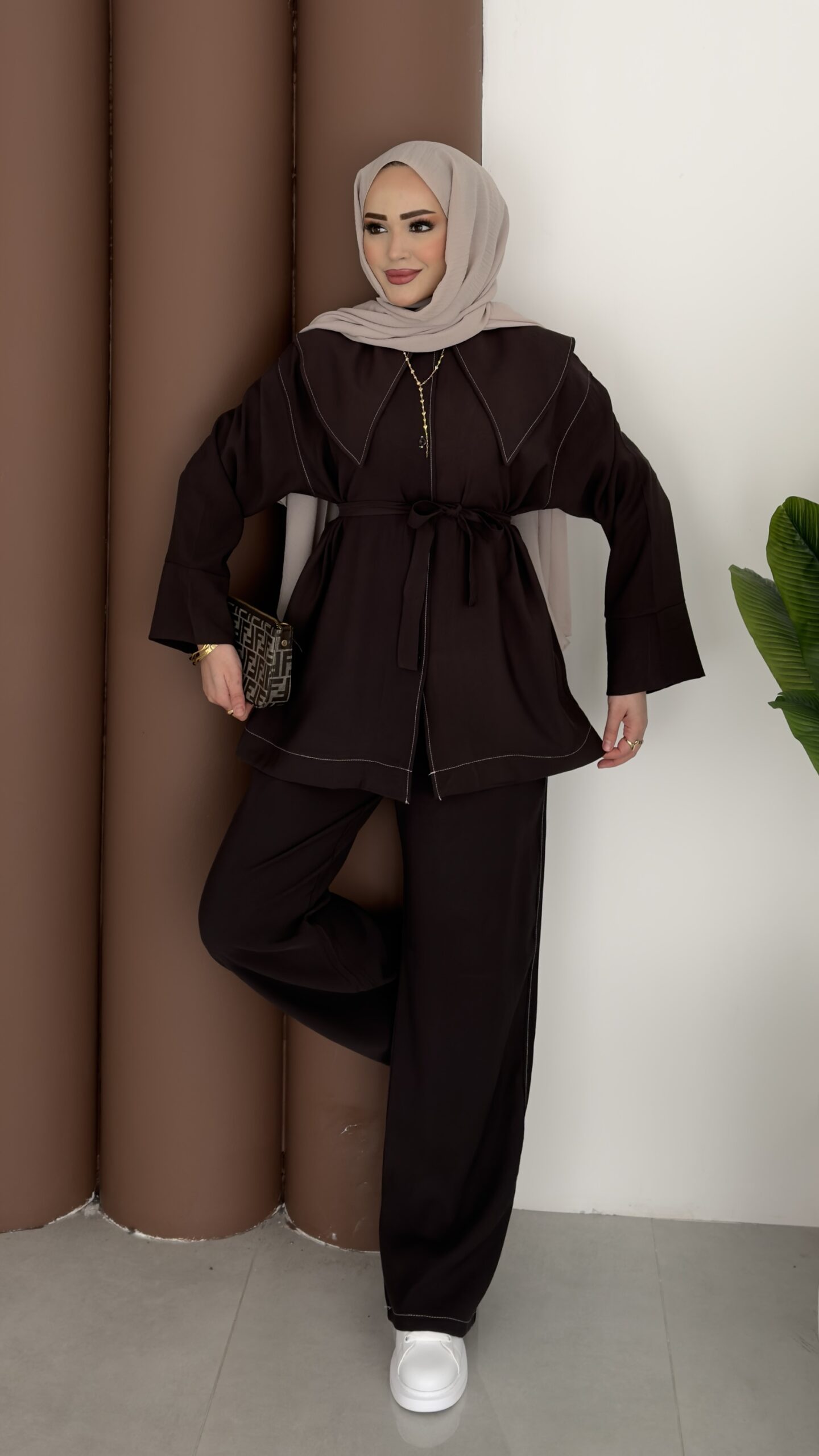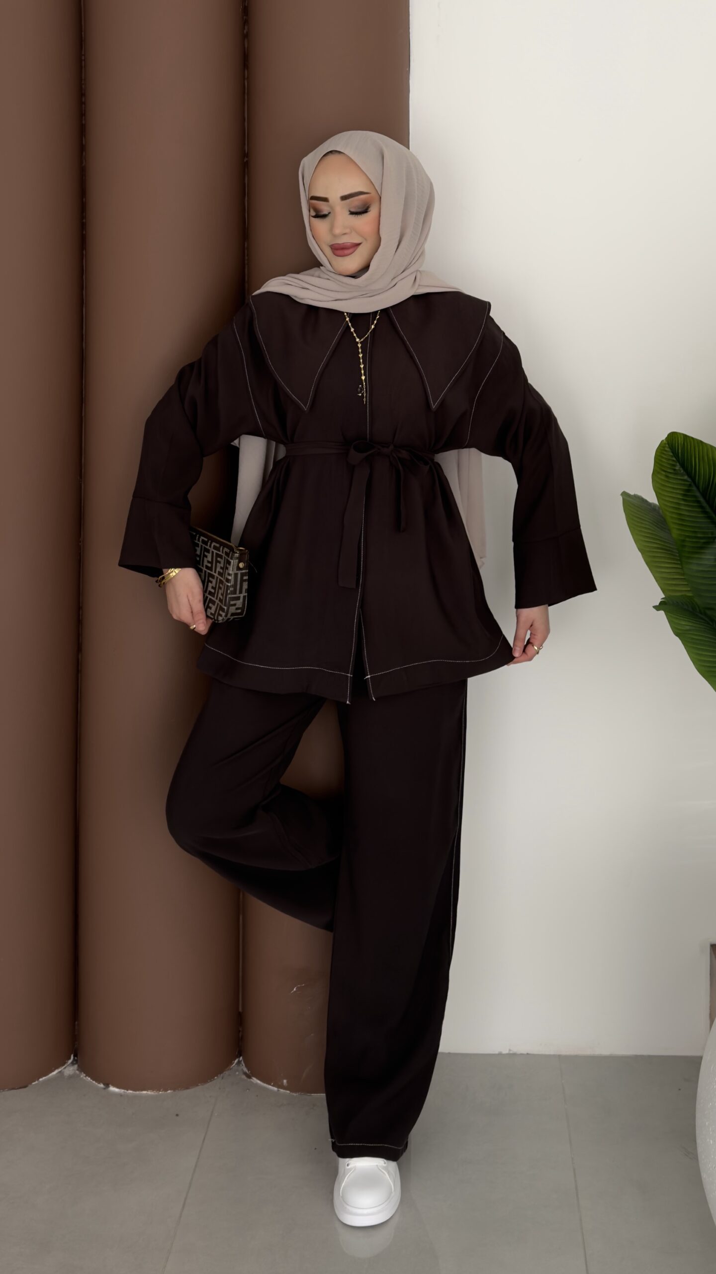 İvory Tensel Yakalı İkili Takım – Kahverengi