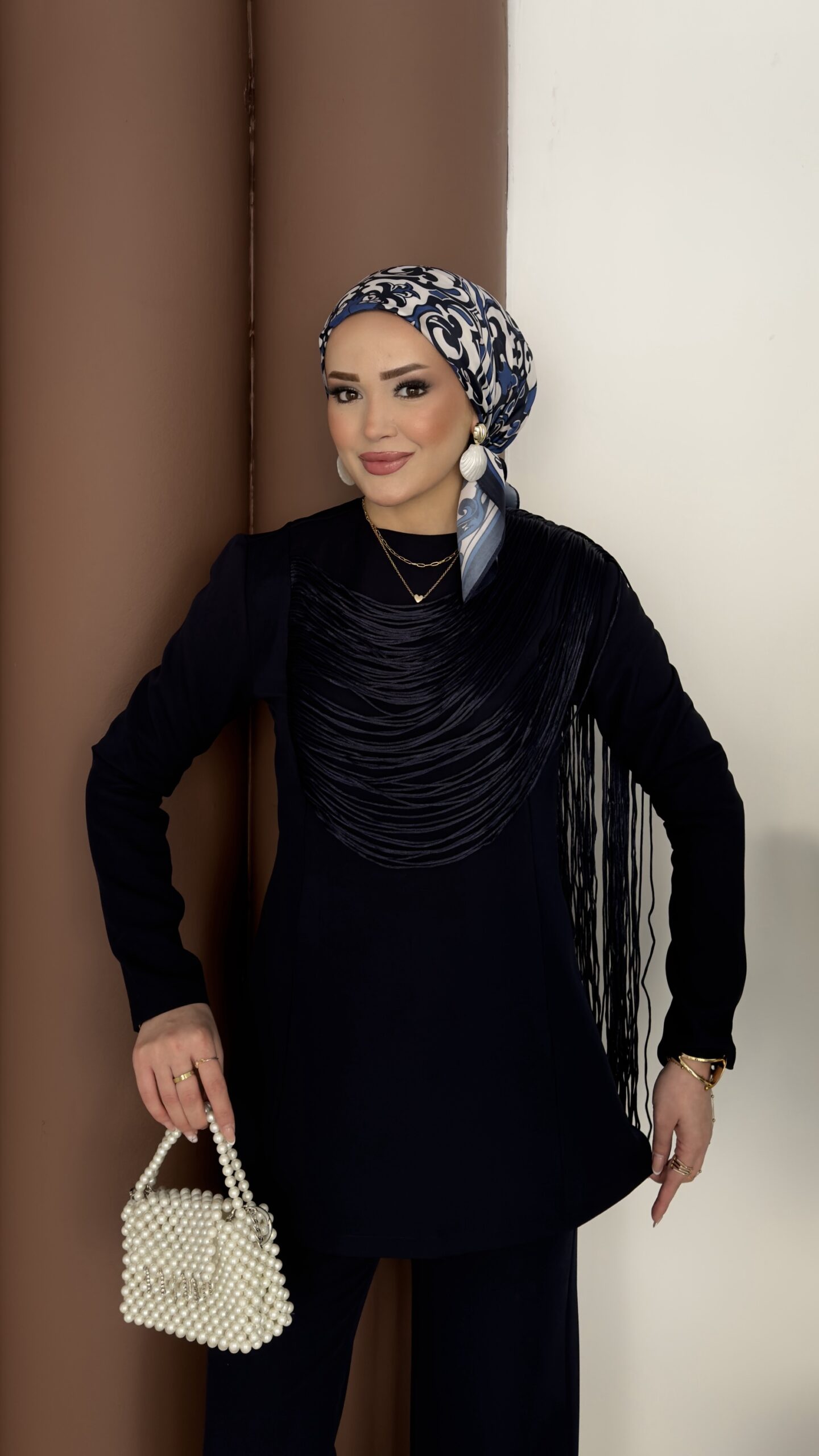 Kuğu Omuzu Püskül İpli İkili Takım – Lacivert