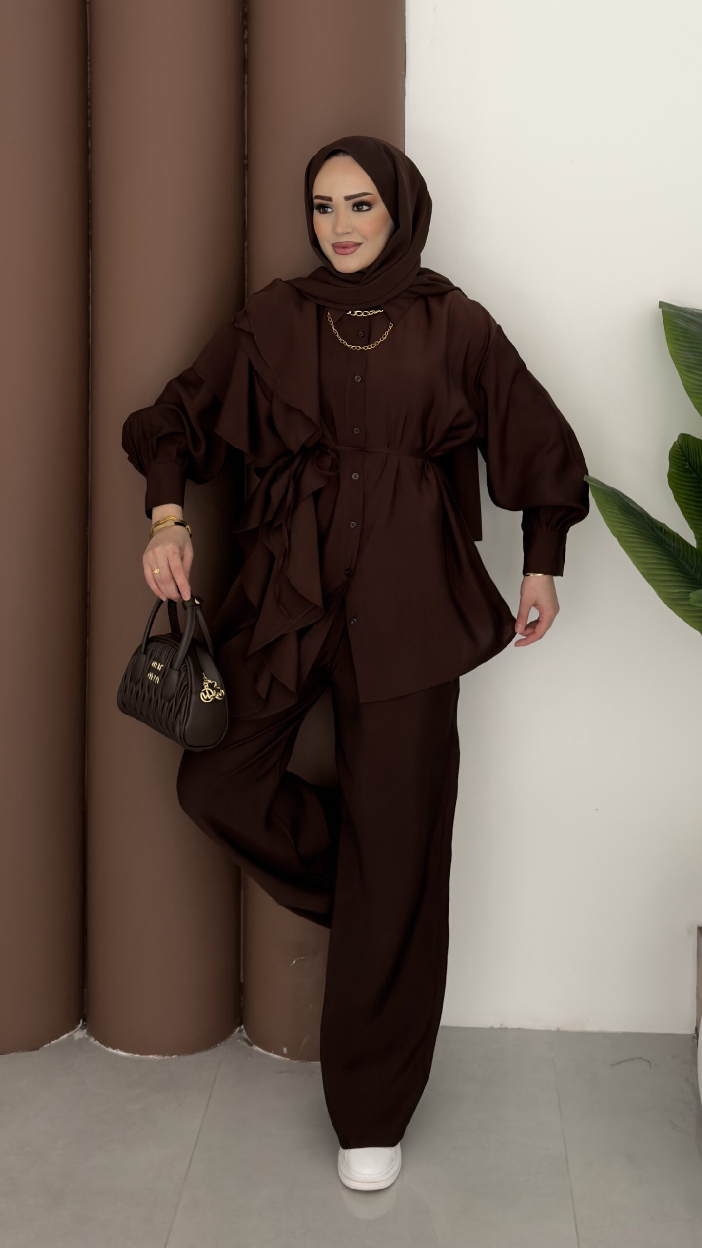 Maison Fırfırlı Tensel İkili Takım – Kahverengi