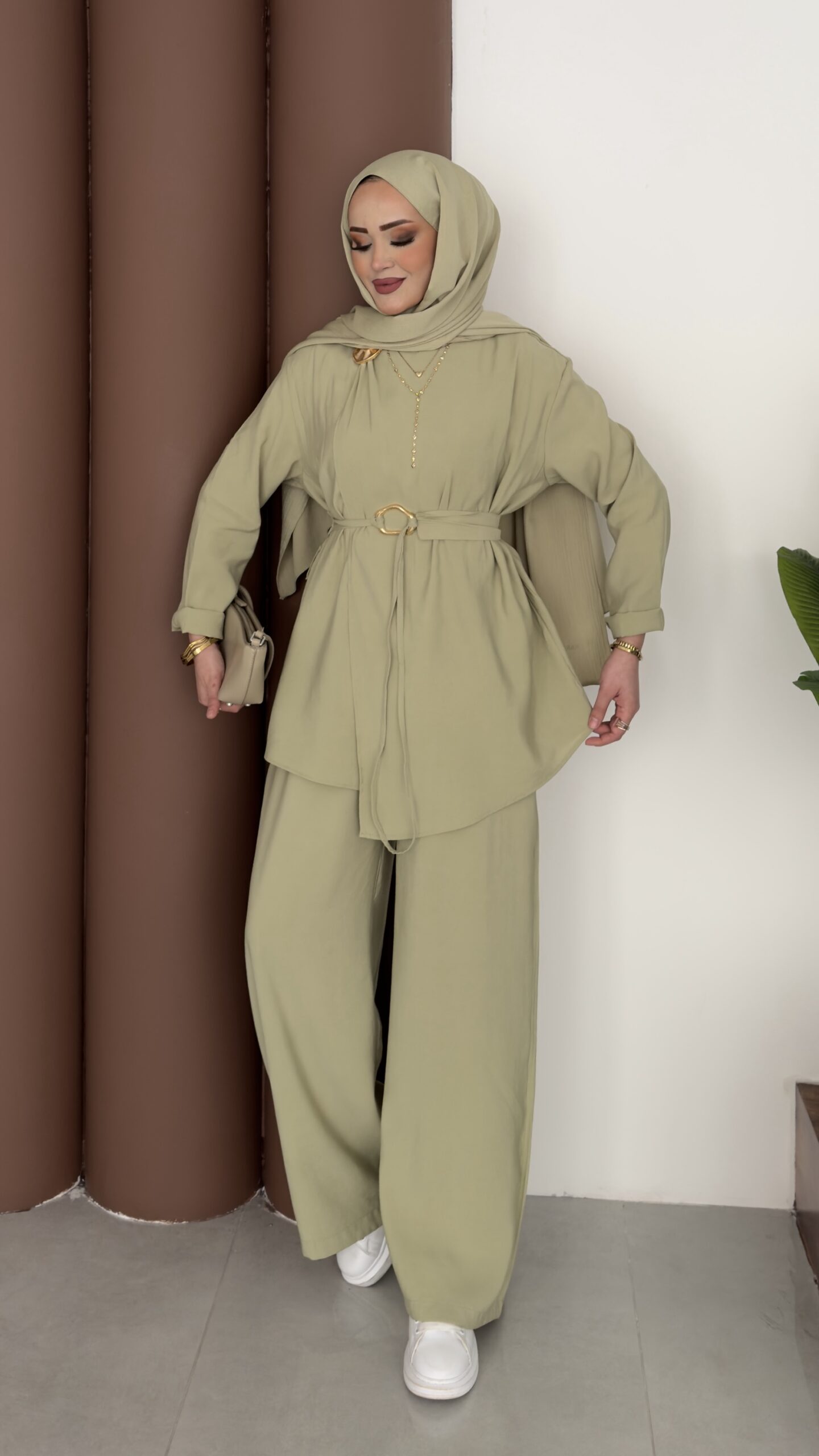Moila Bronşlu Tensel İkili Takım – Yağ Yeşil