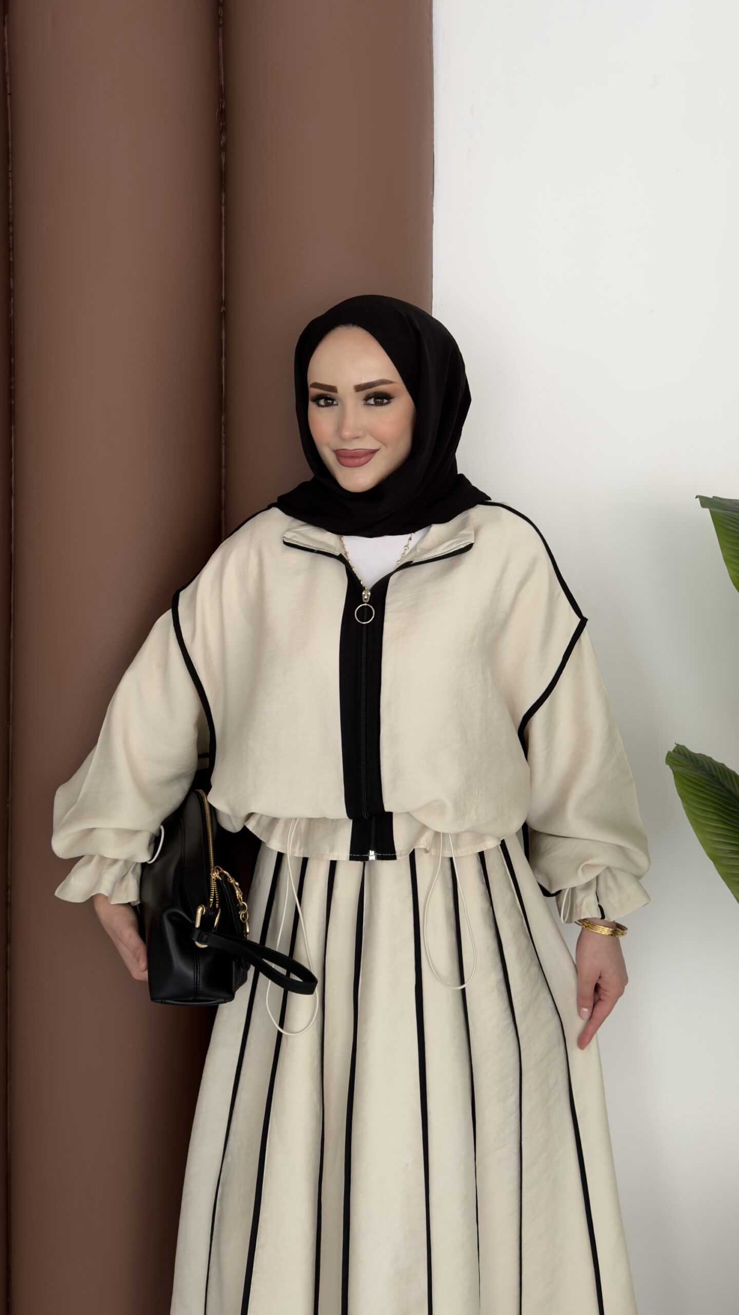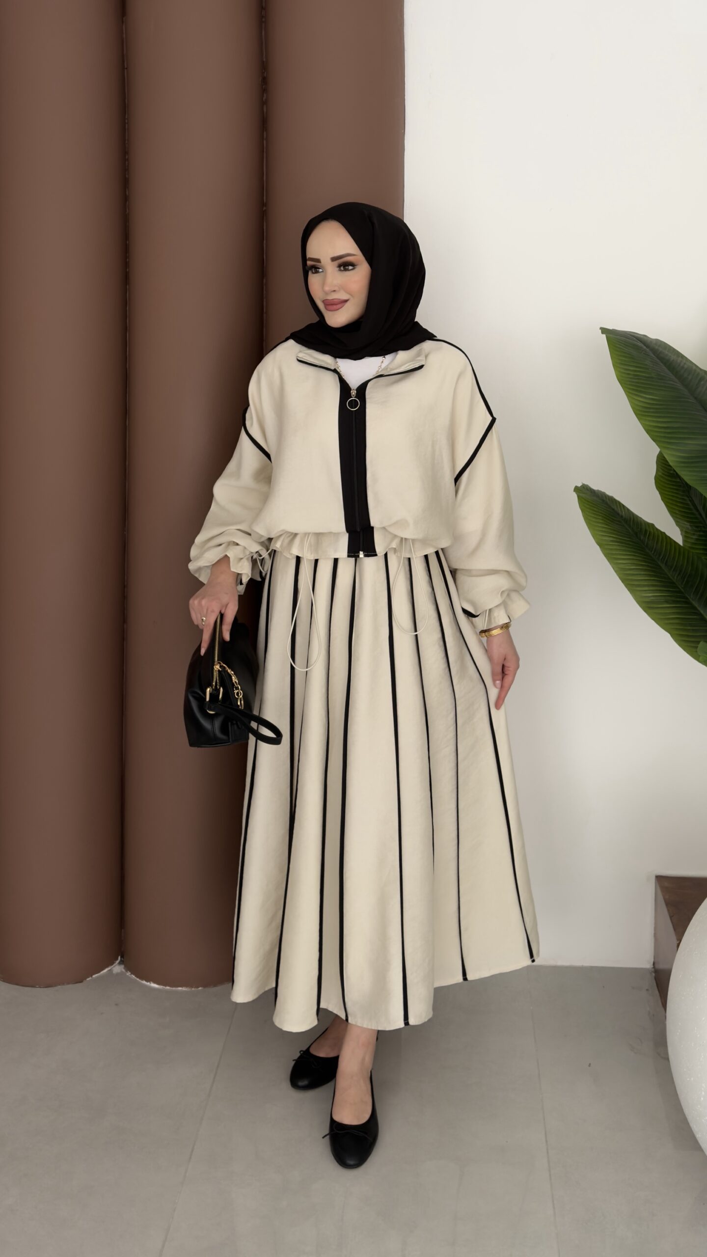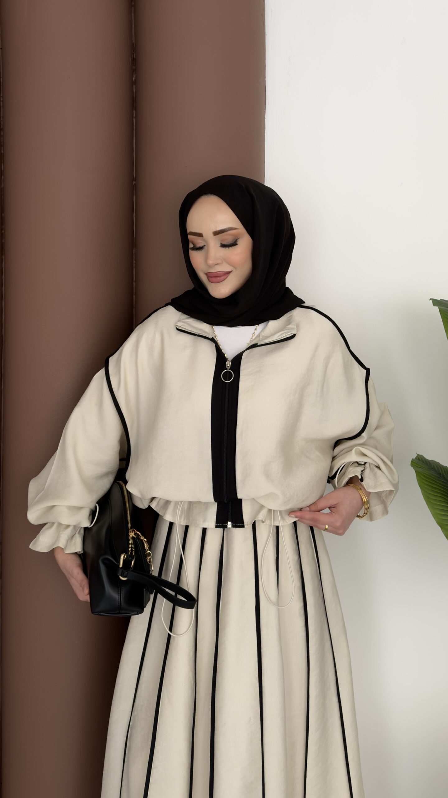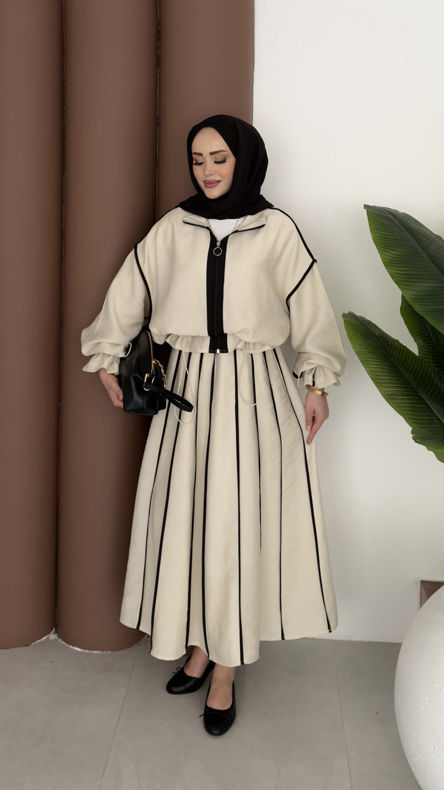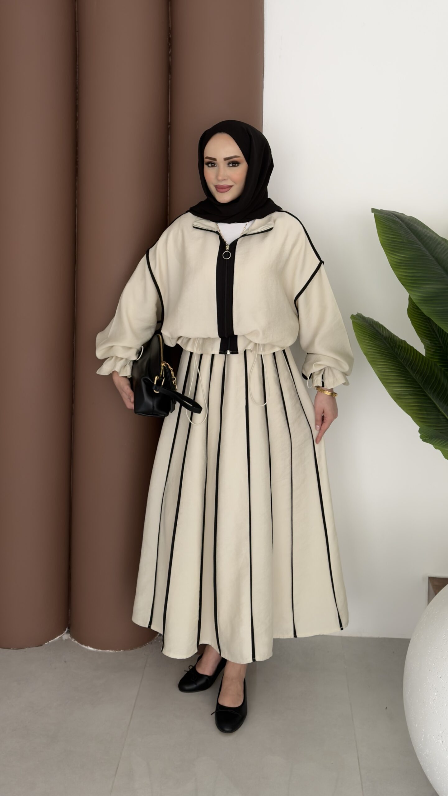 Muadil Biye Detaylı Etek İkili Takım – Bej