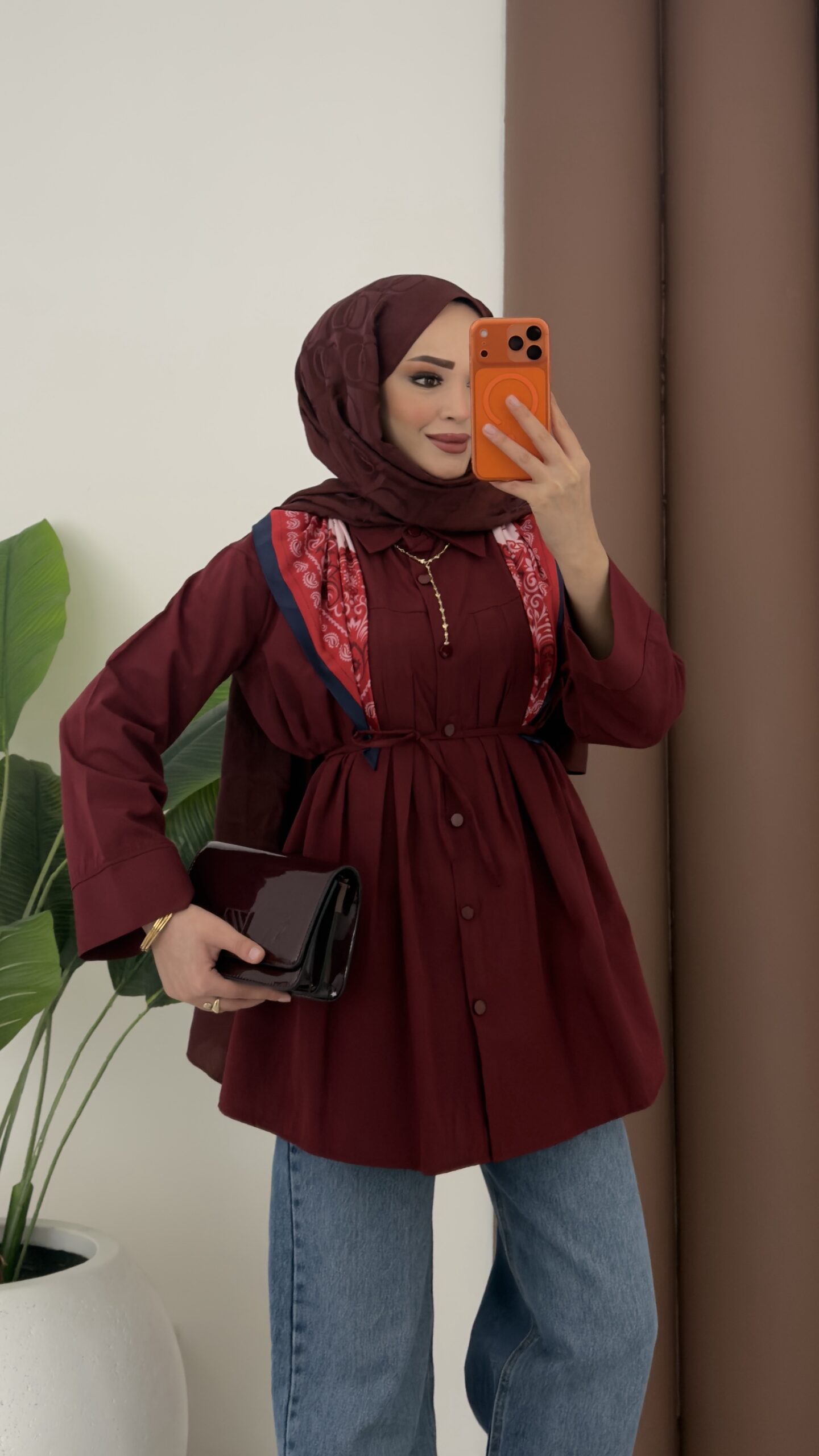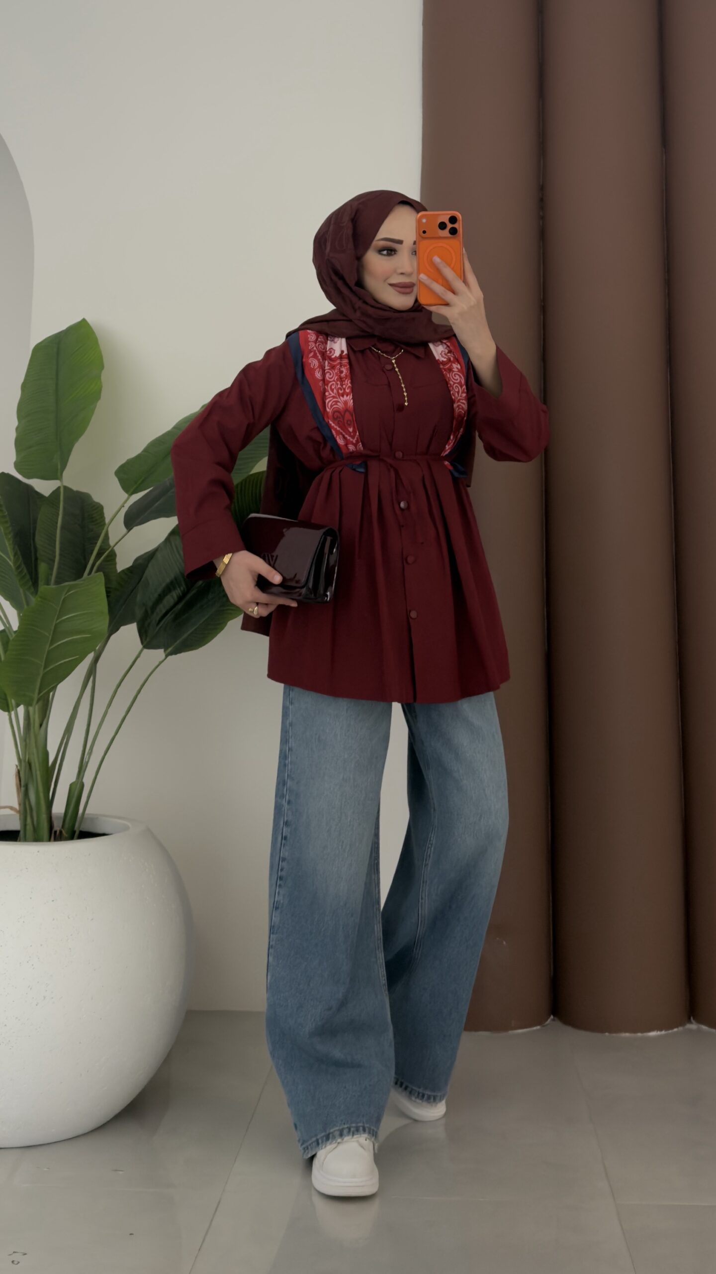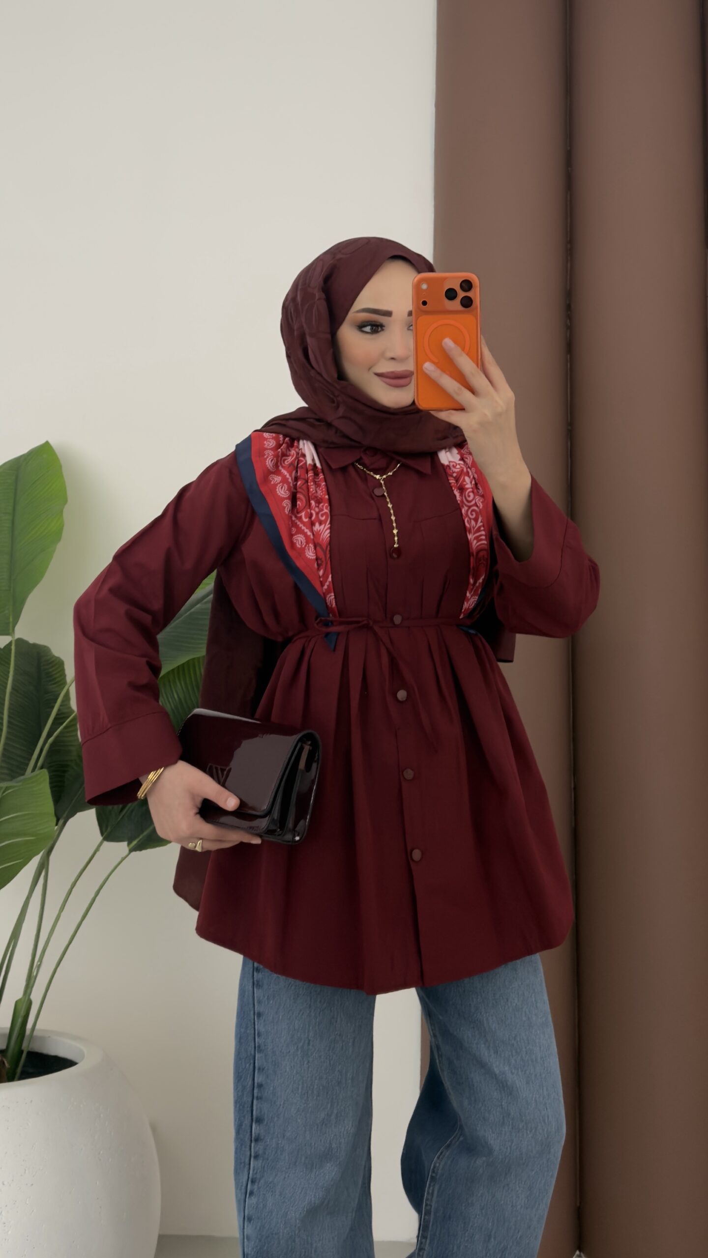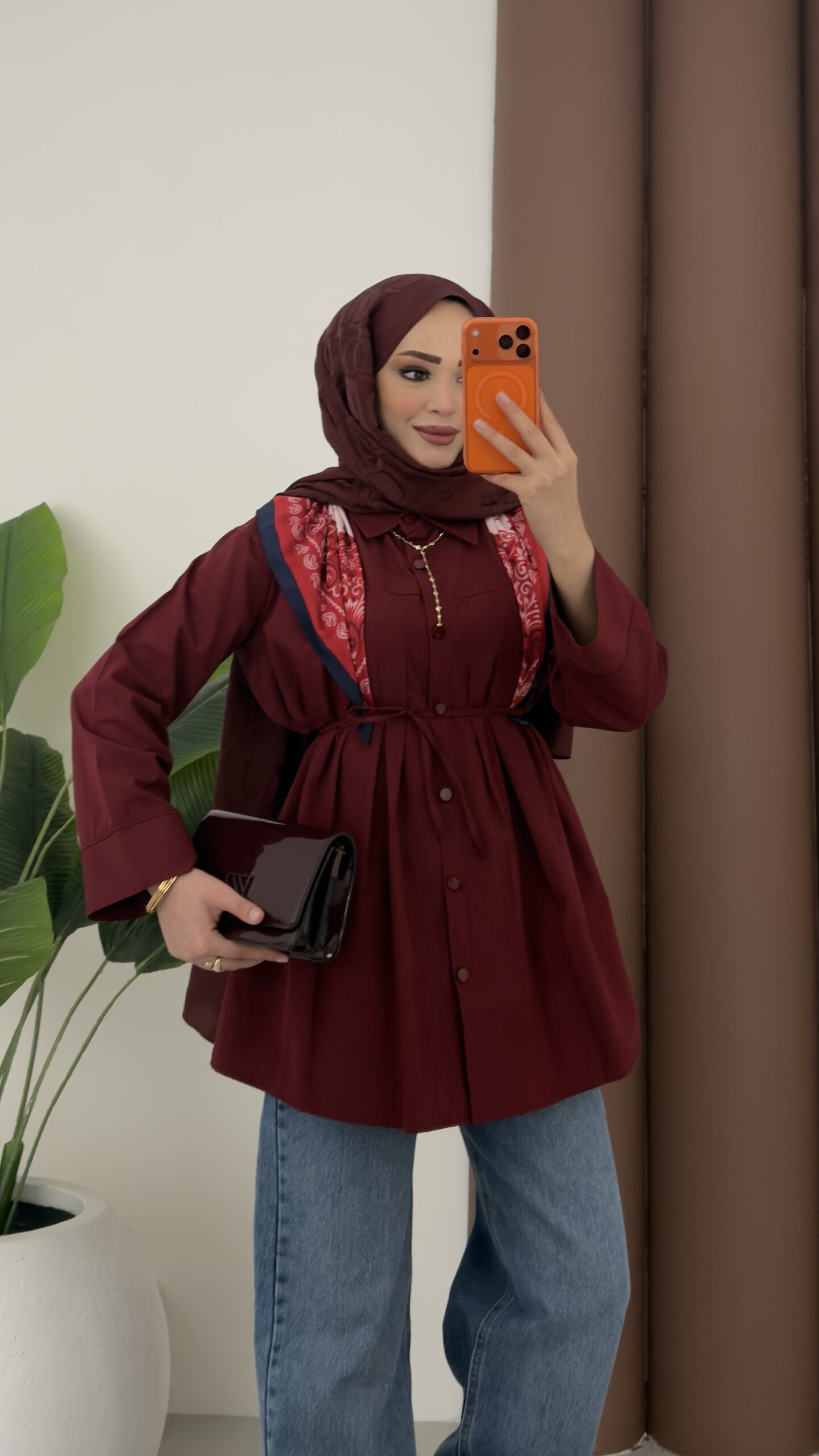 Nervürlü Poplin Gömlek – Bordo