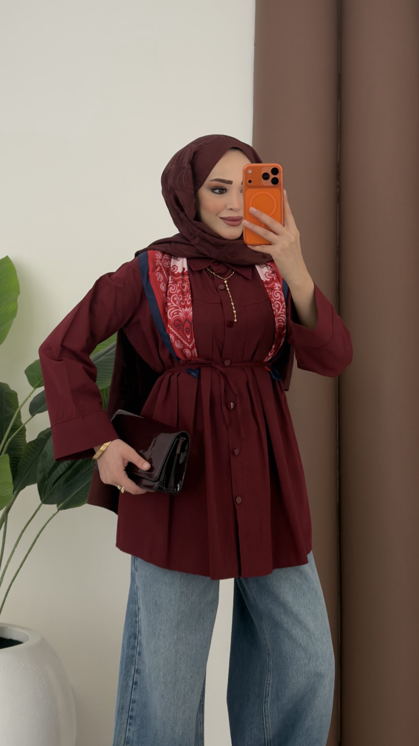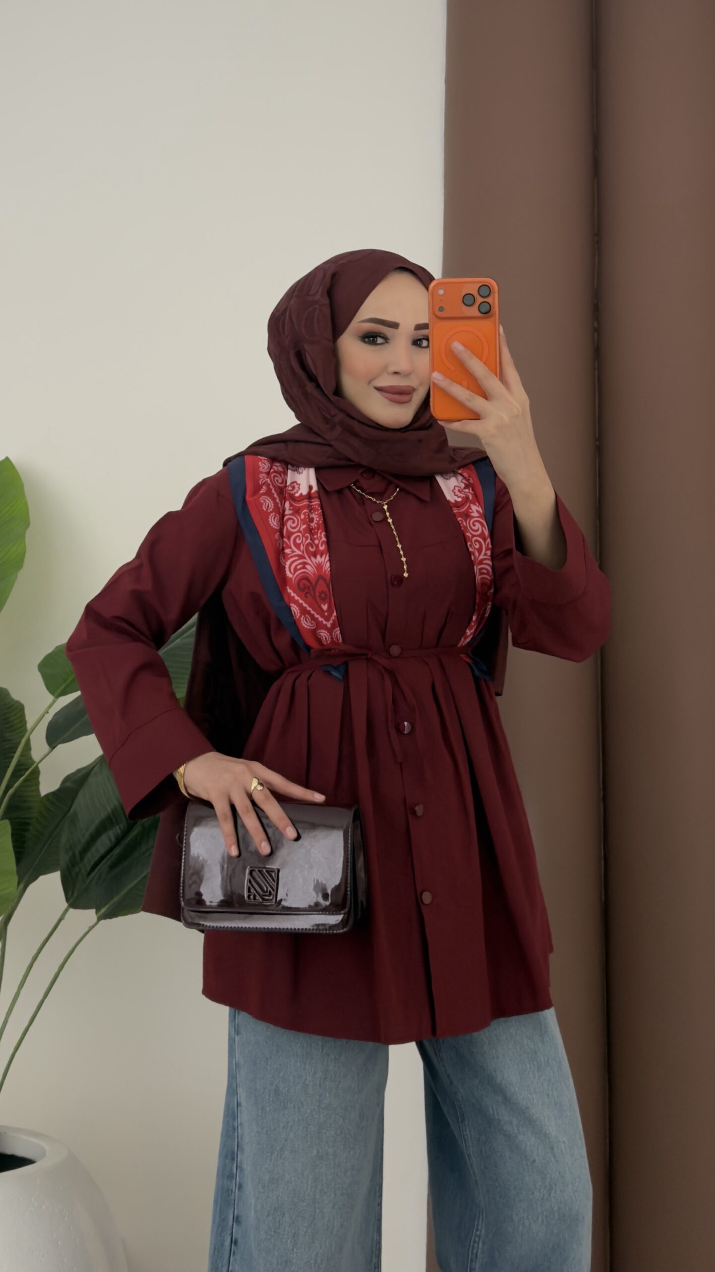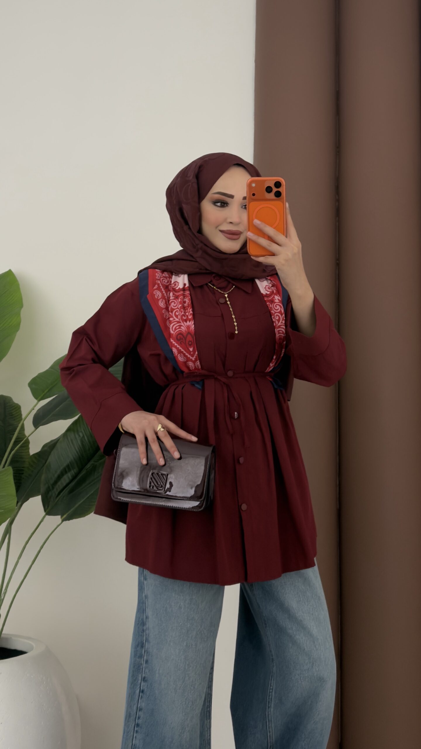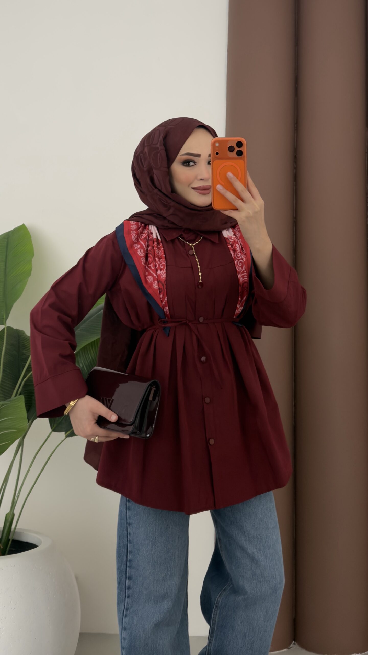 Nervürlü Poplin Gömlek – Bordo