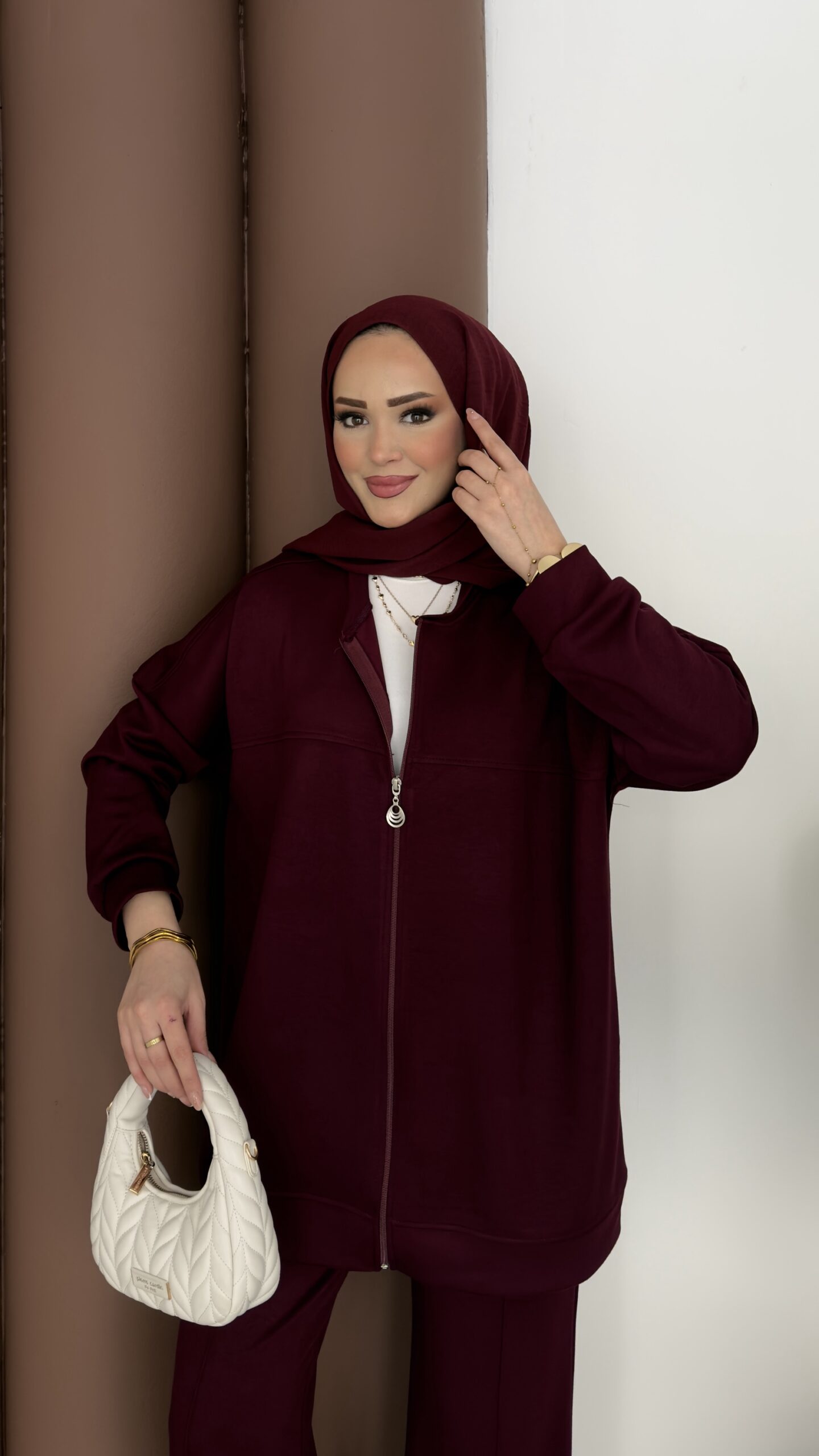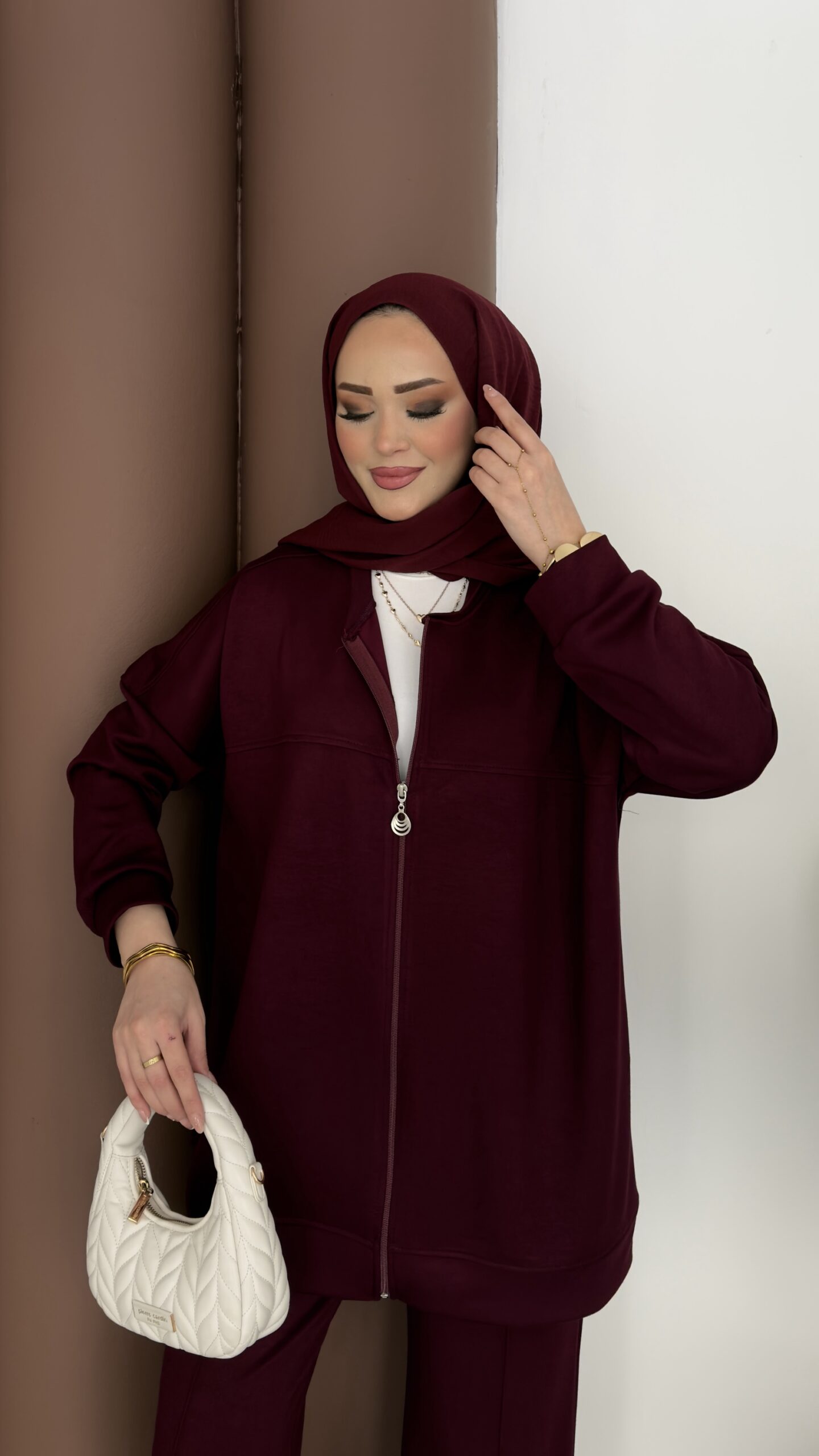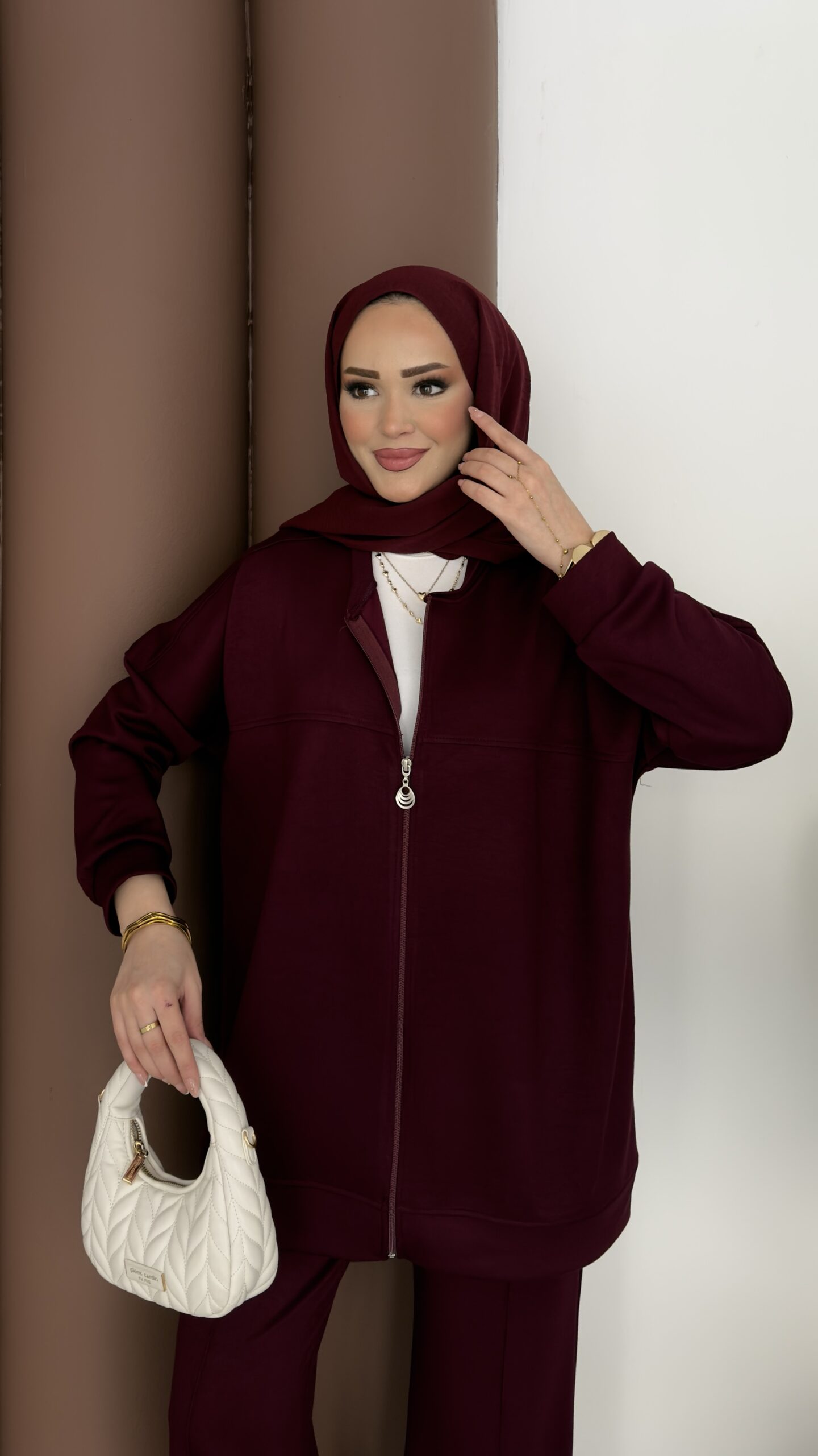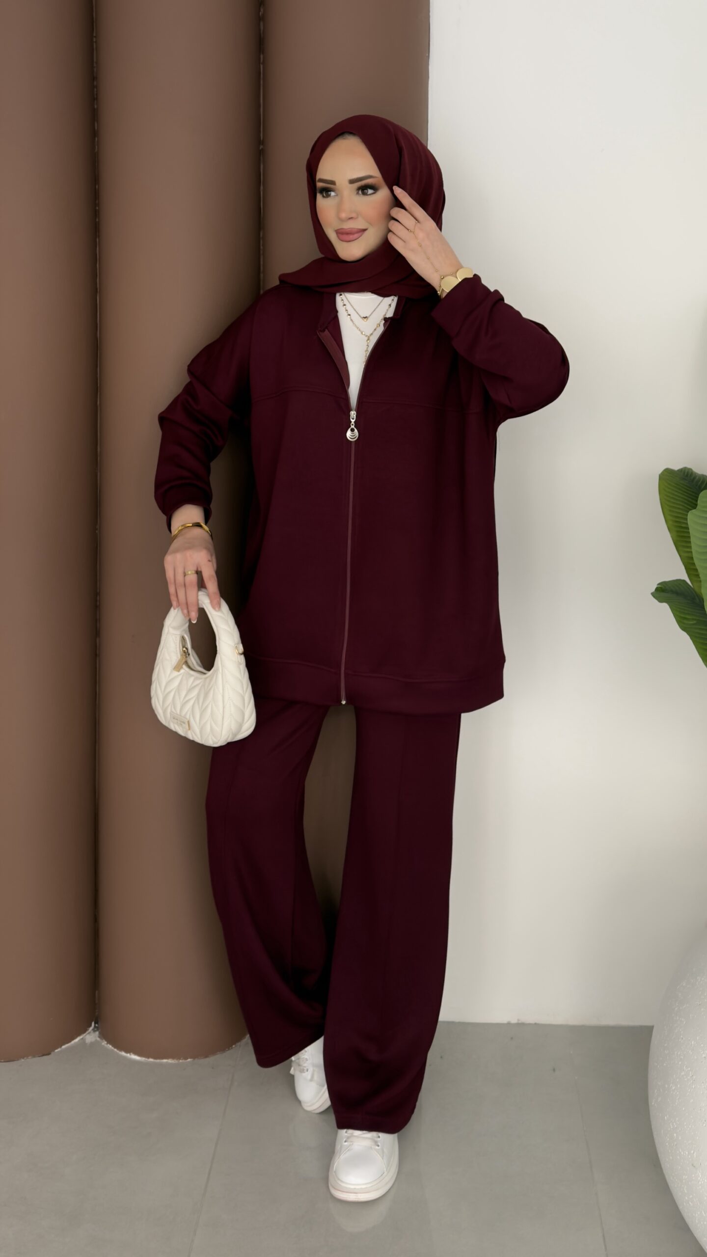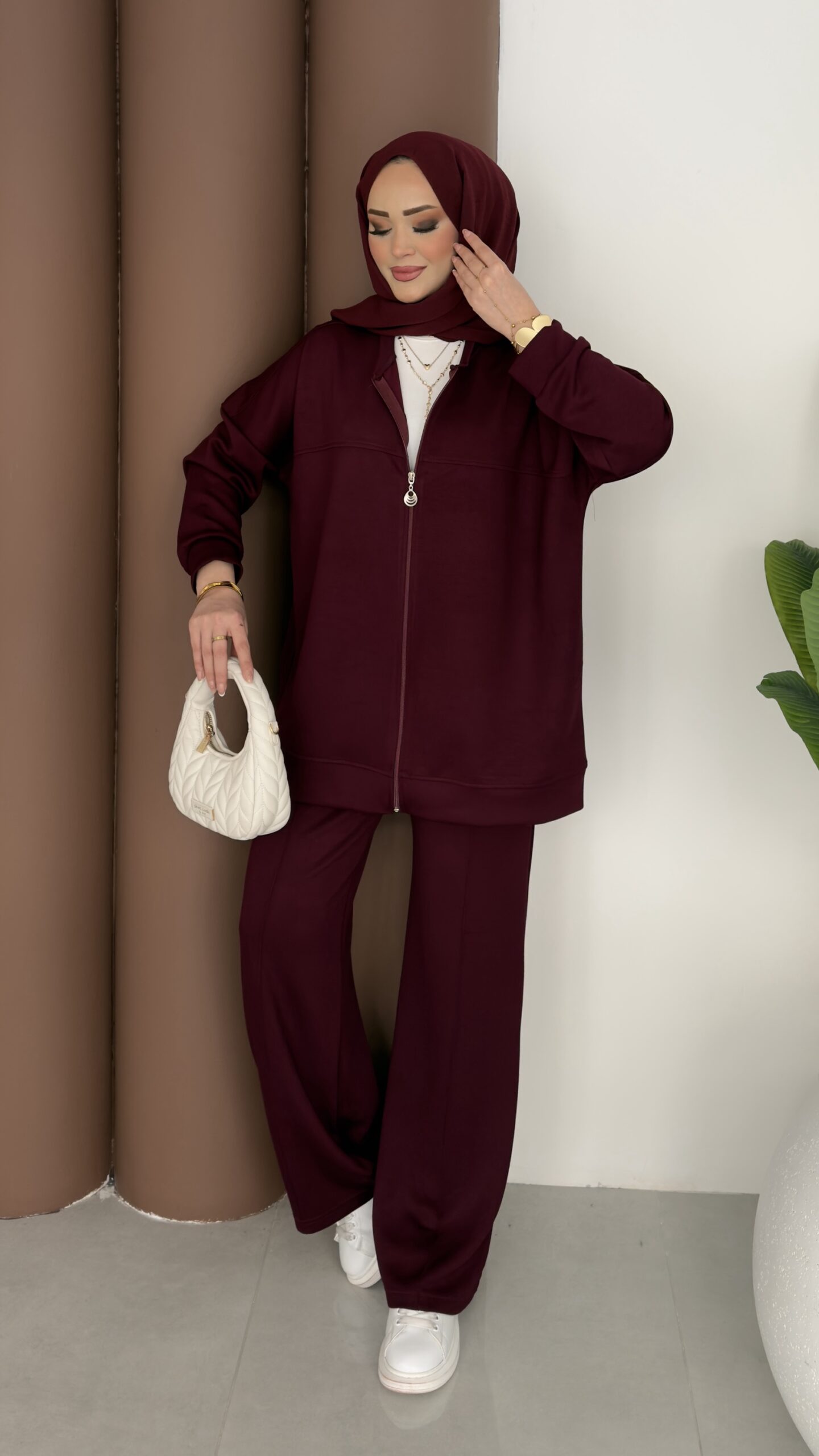 Fermuarlı Basic İkili Takım – Bordo