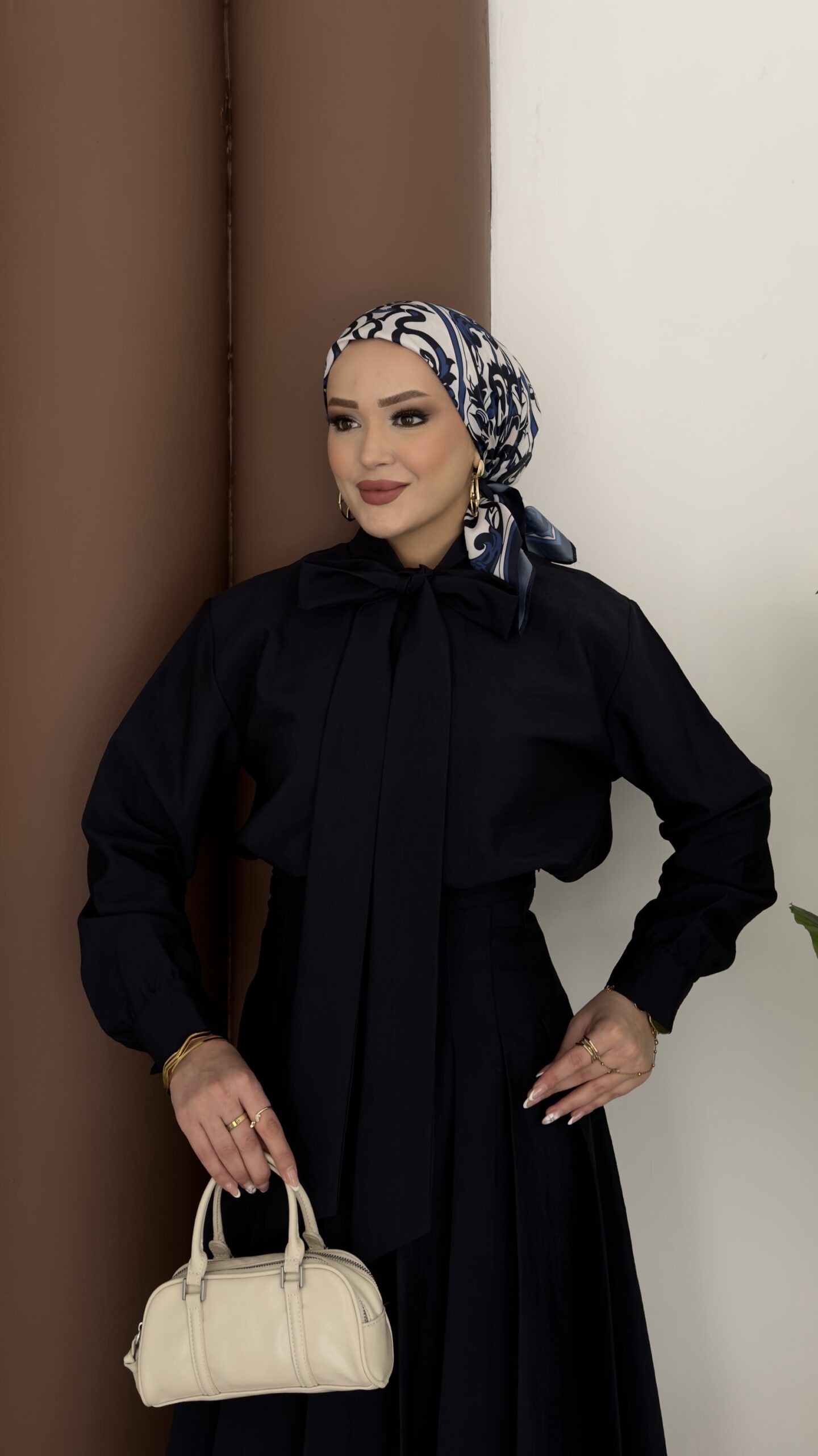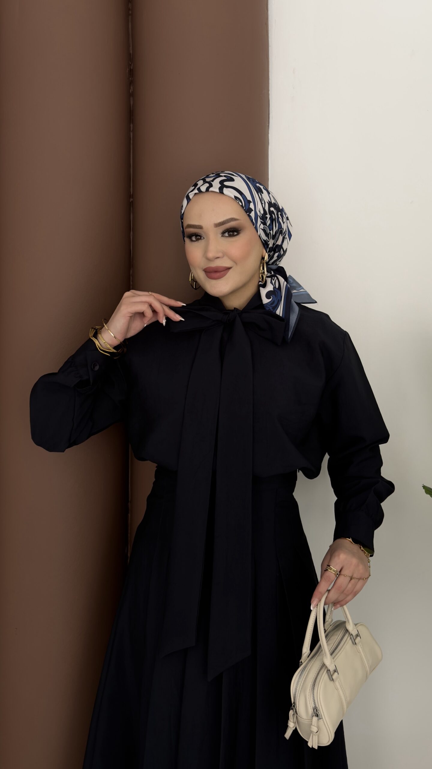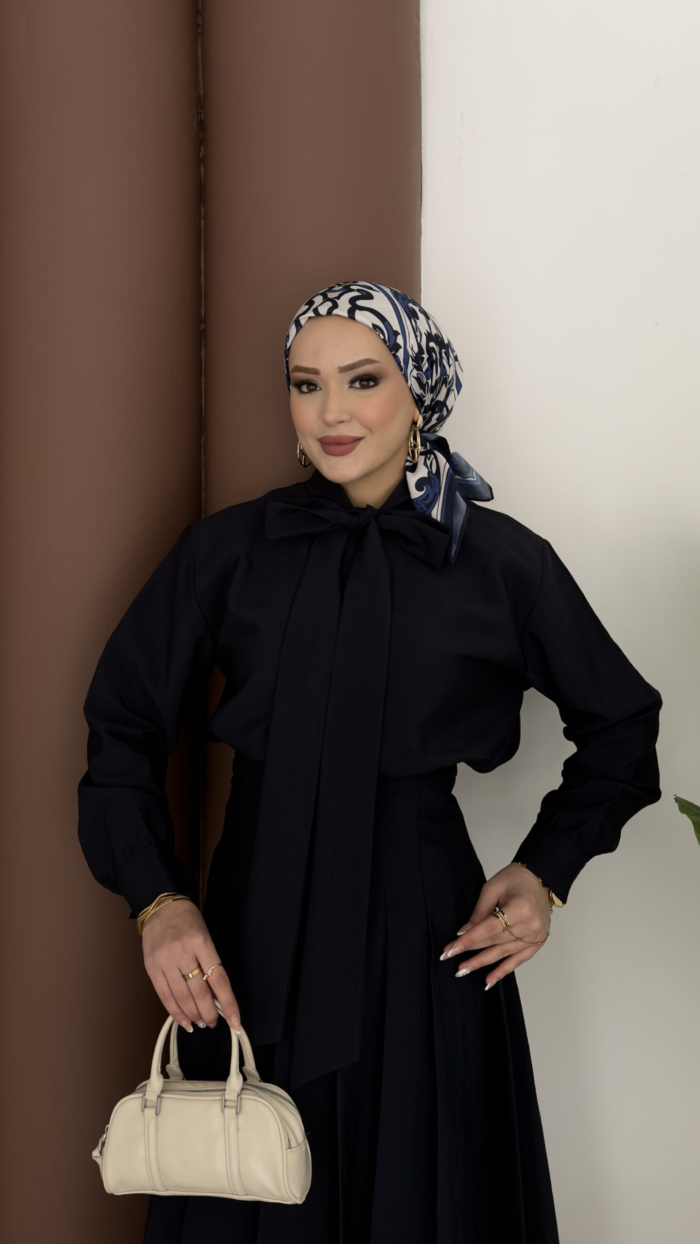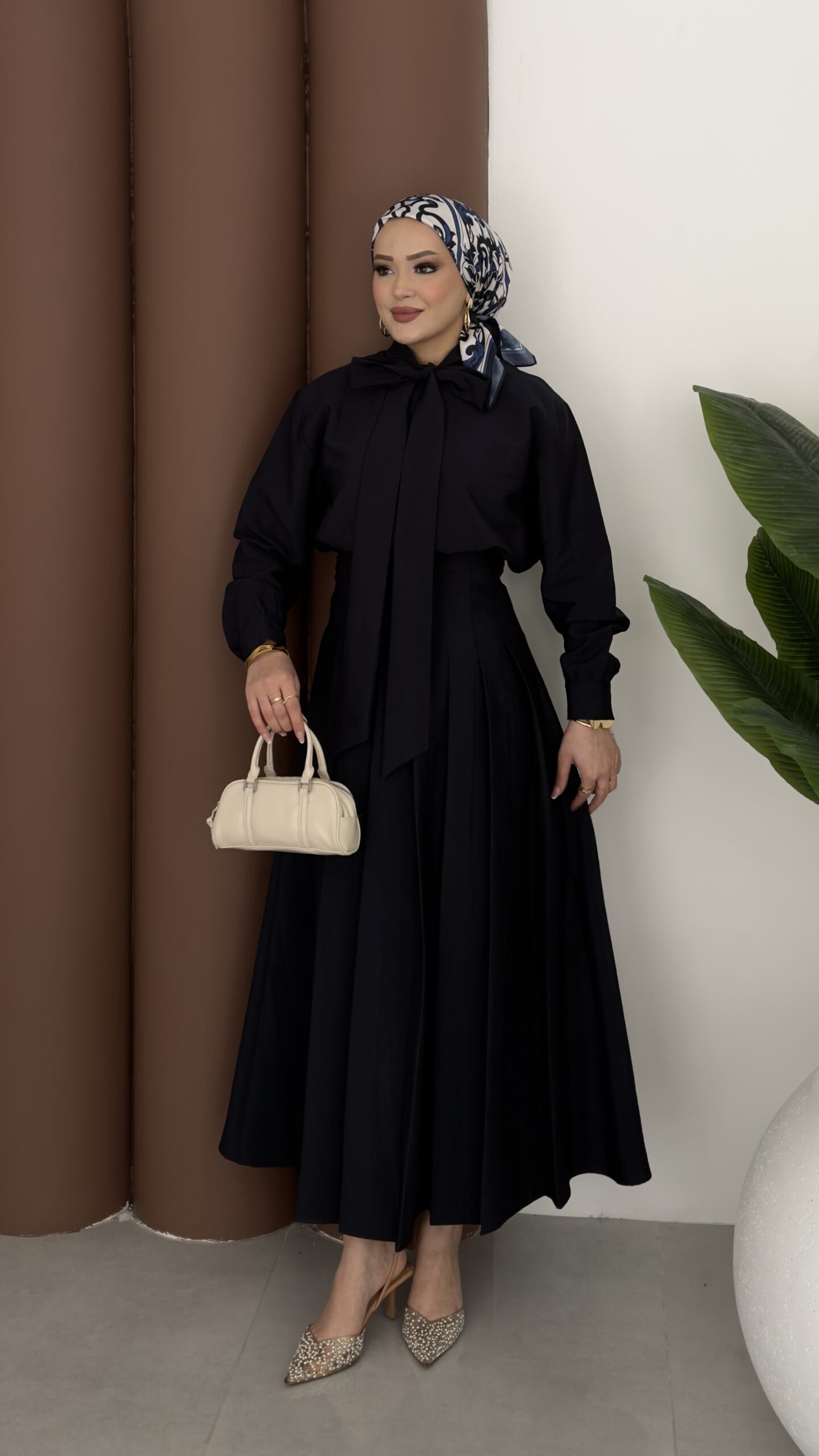 Pile Detaylı Cupra Etek İkili Takım – Lacivert