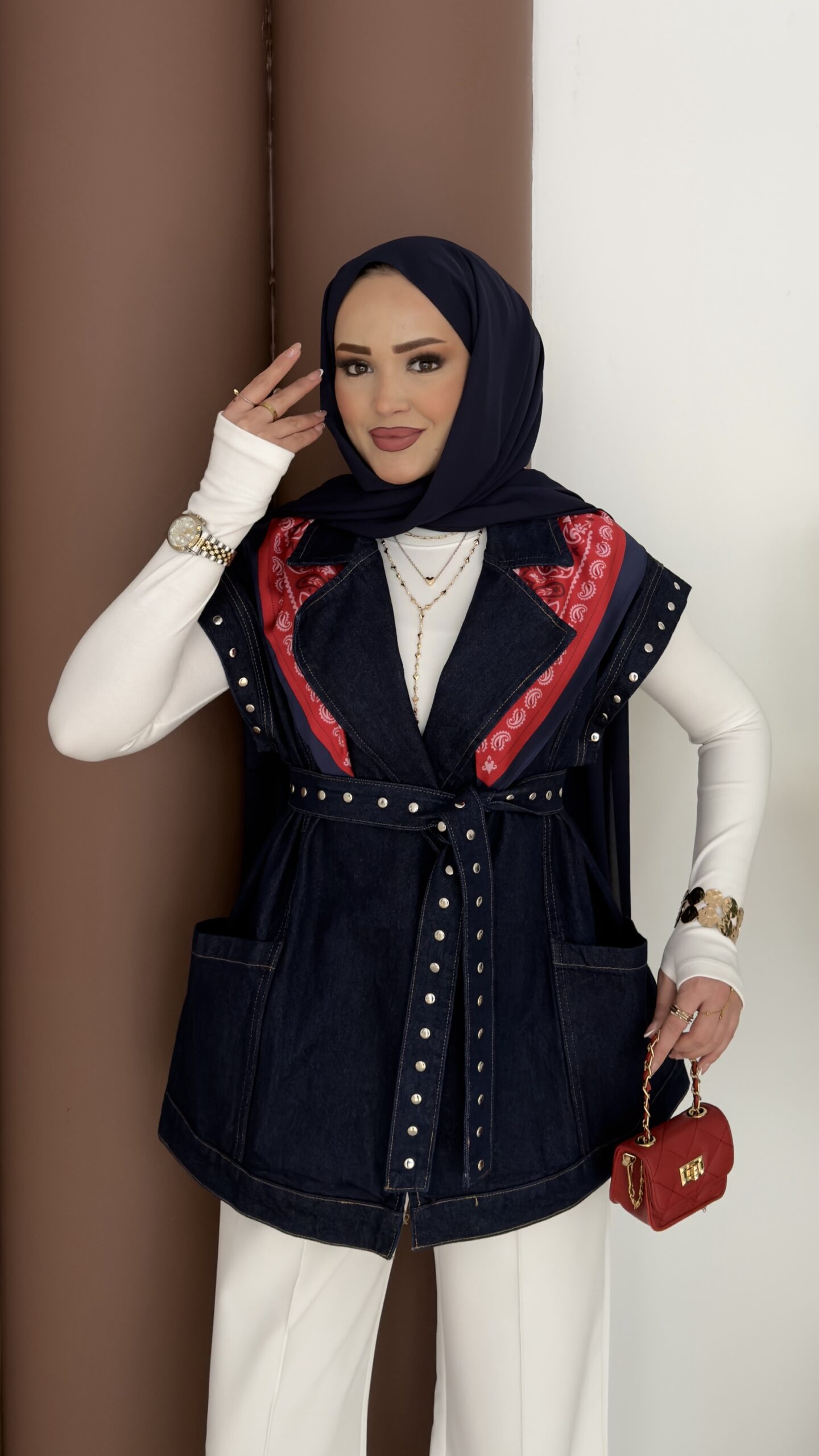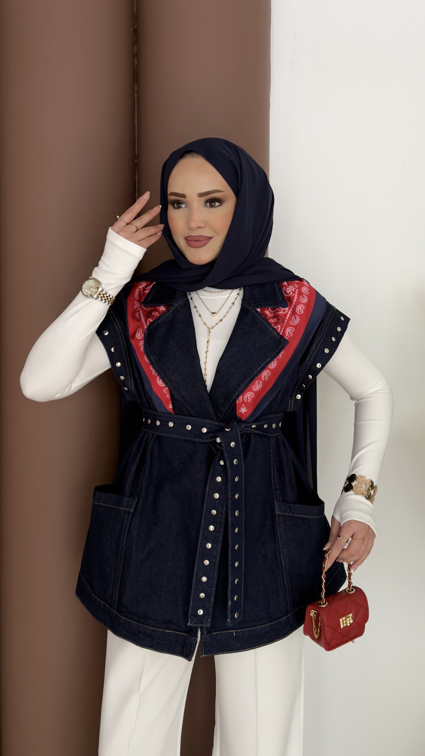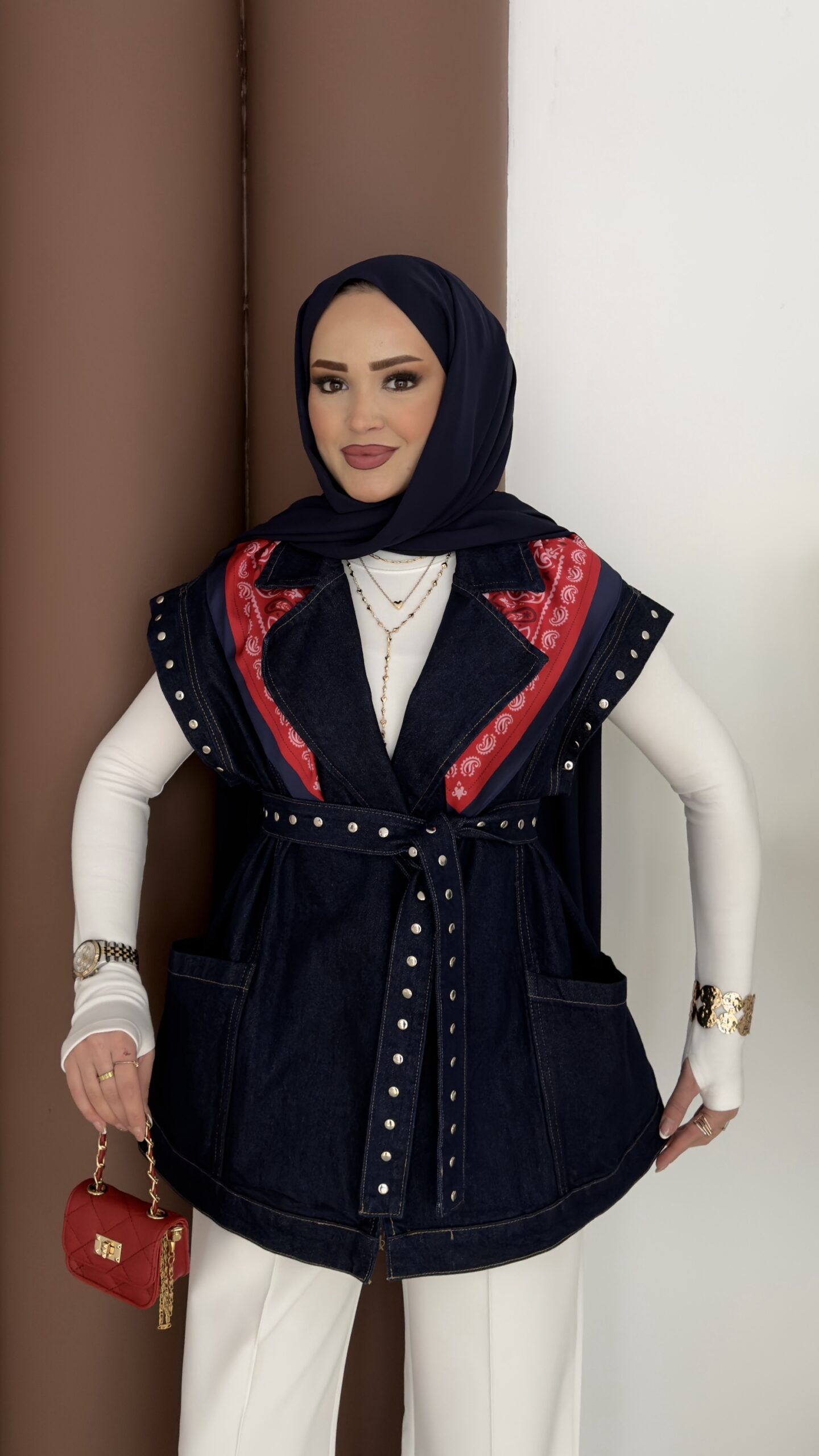 Premium Zımbalı Tasarım Kot Yelek – Koyu Mavi