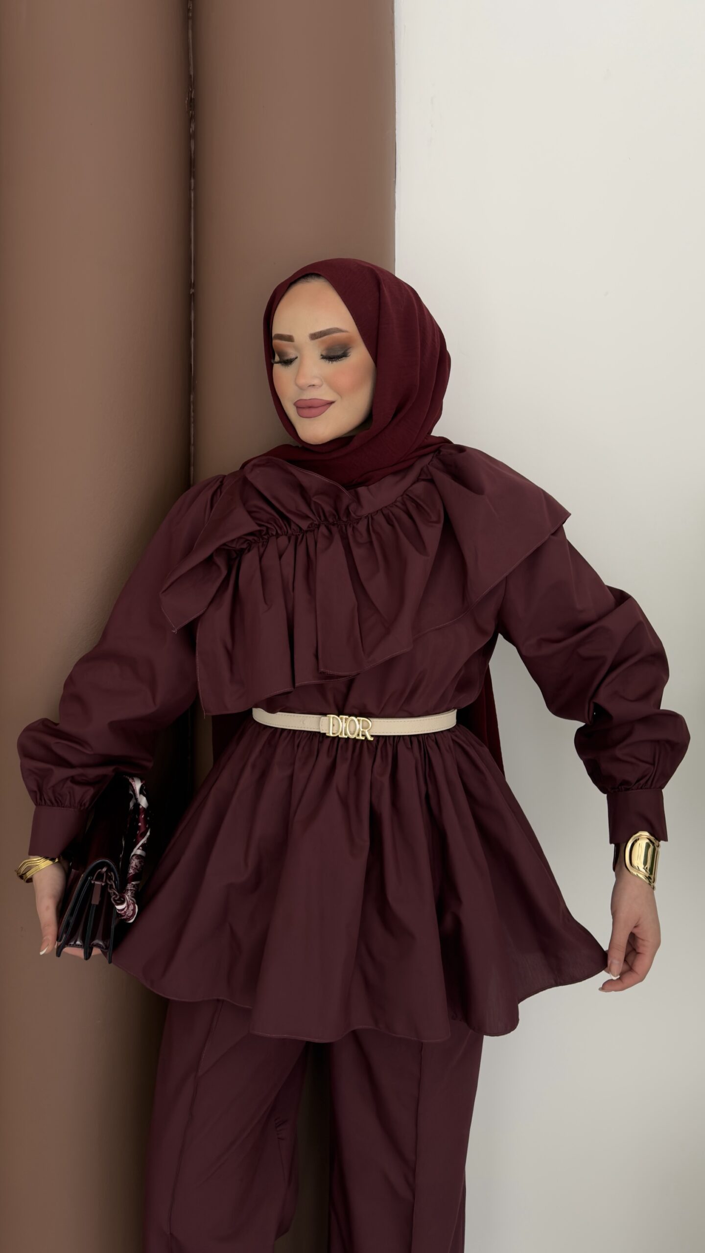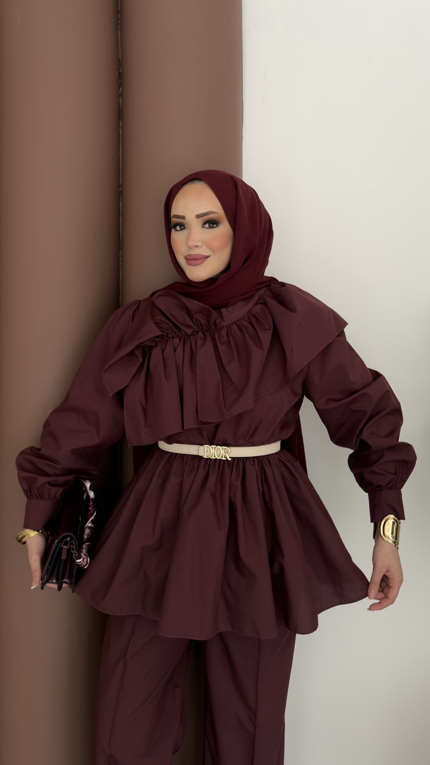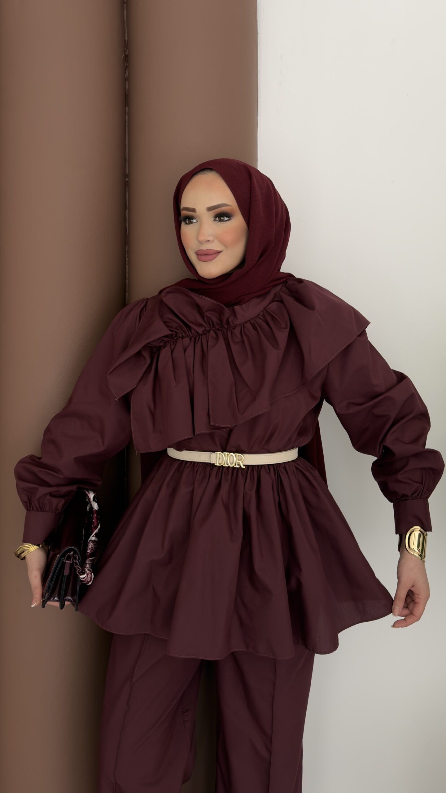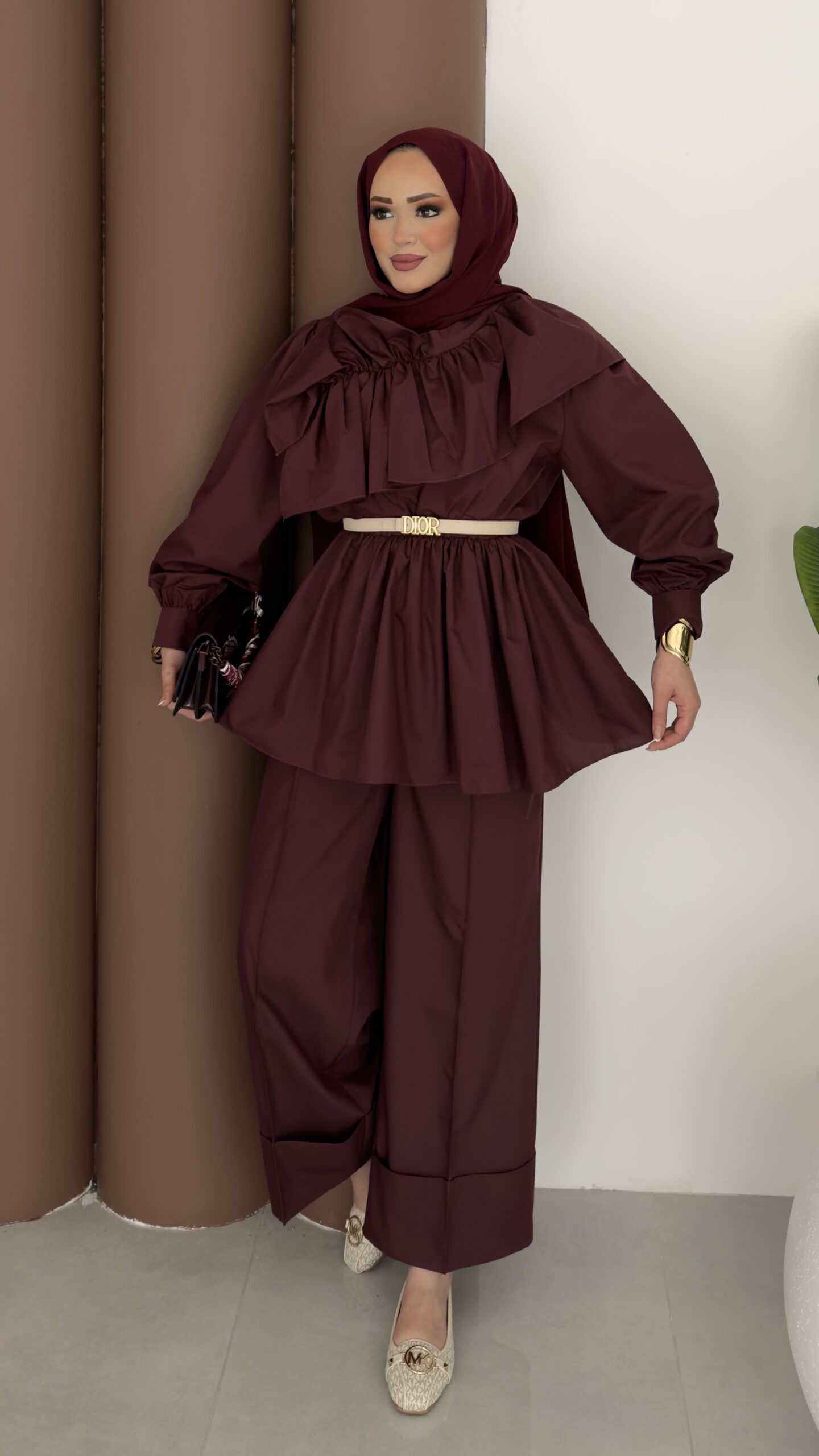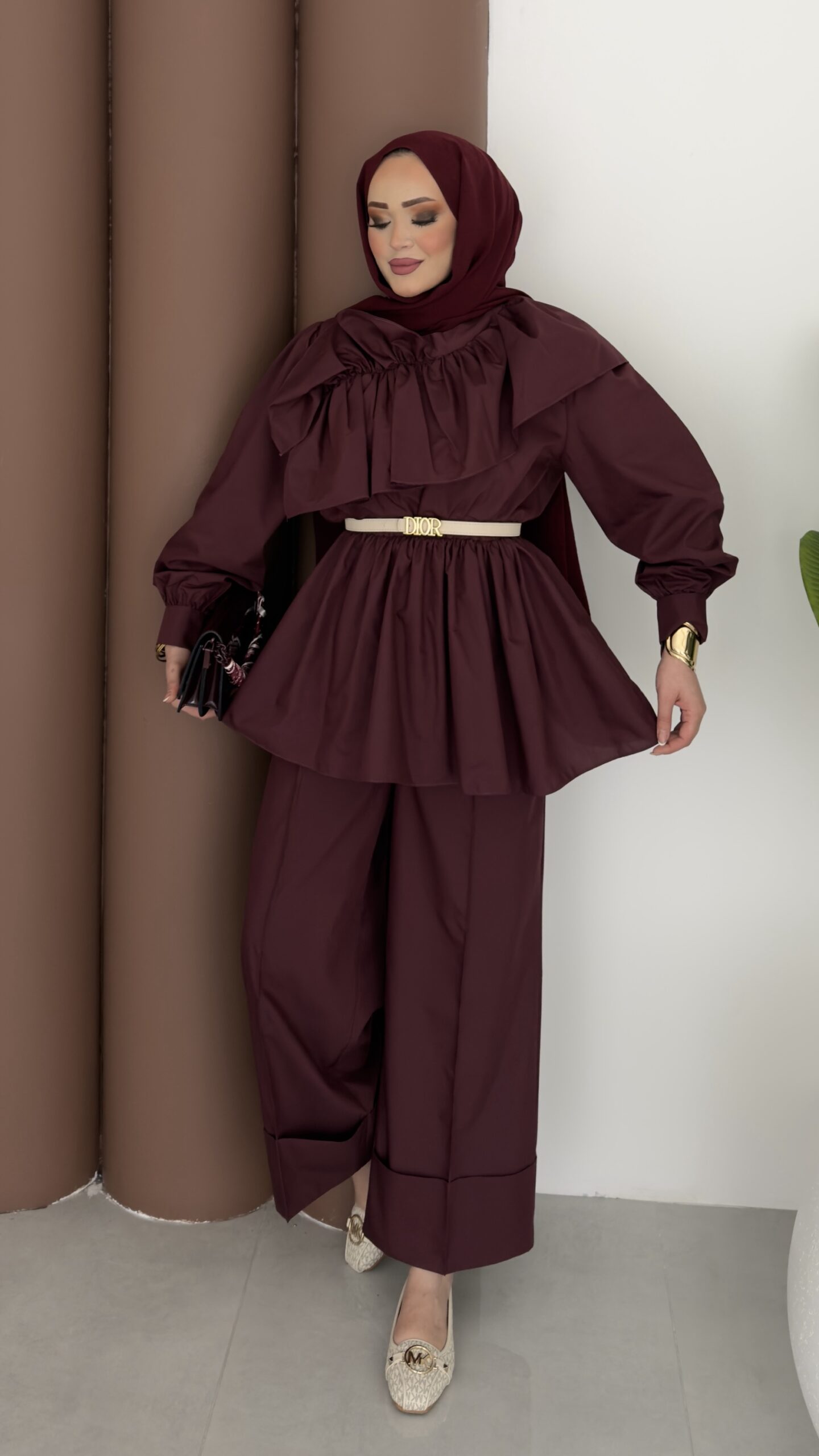 Qatar Fırfırlı Beli Lastikli Takım – Bordo