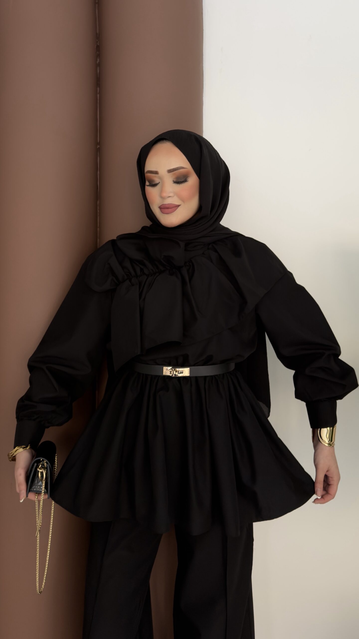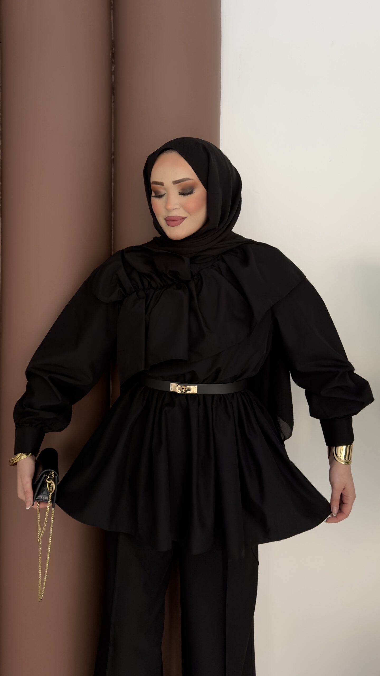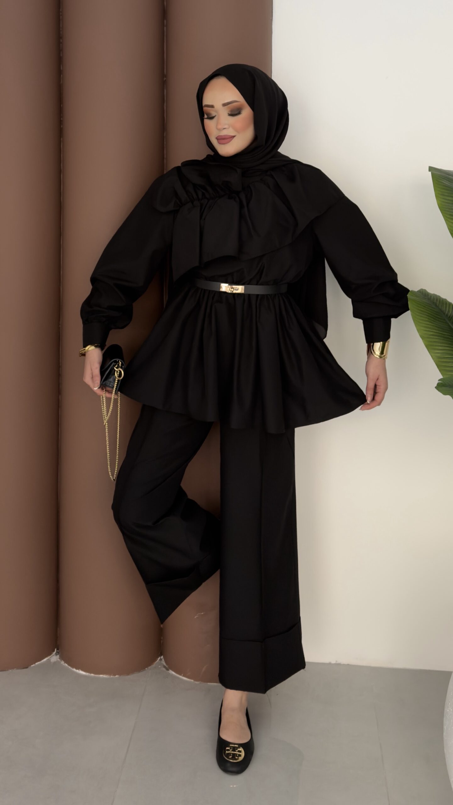 Qatar Fırfırlı Beli Lastikli Takım – Siyah