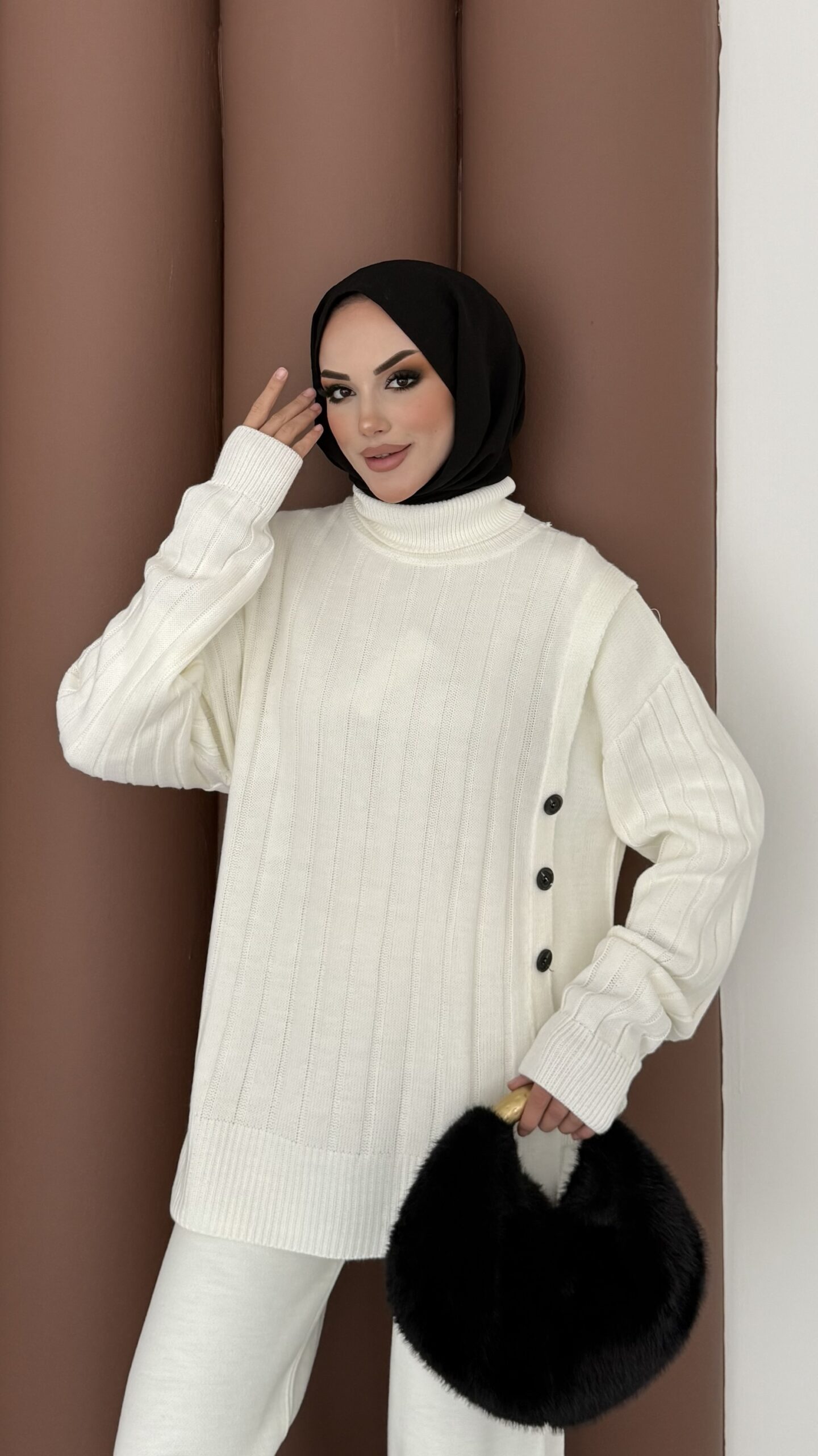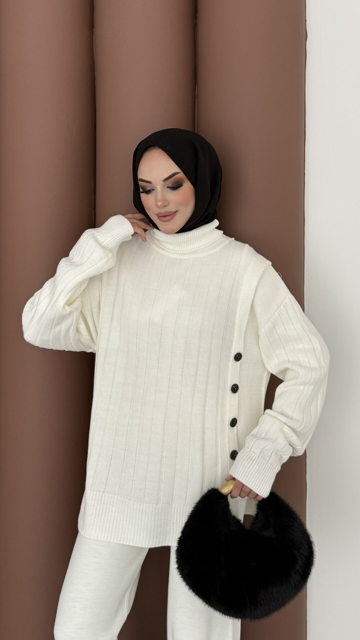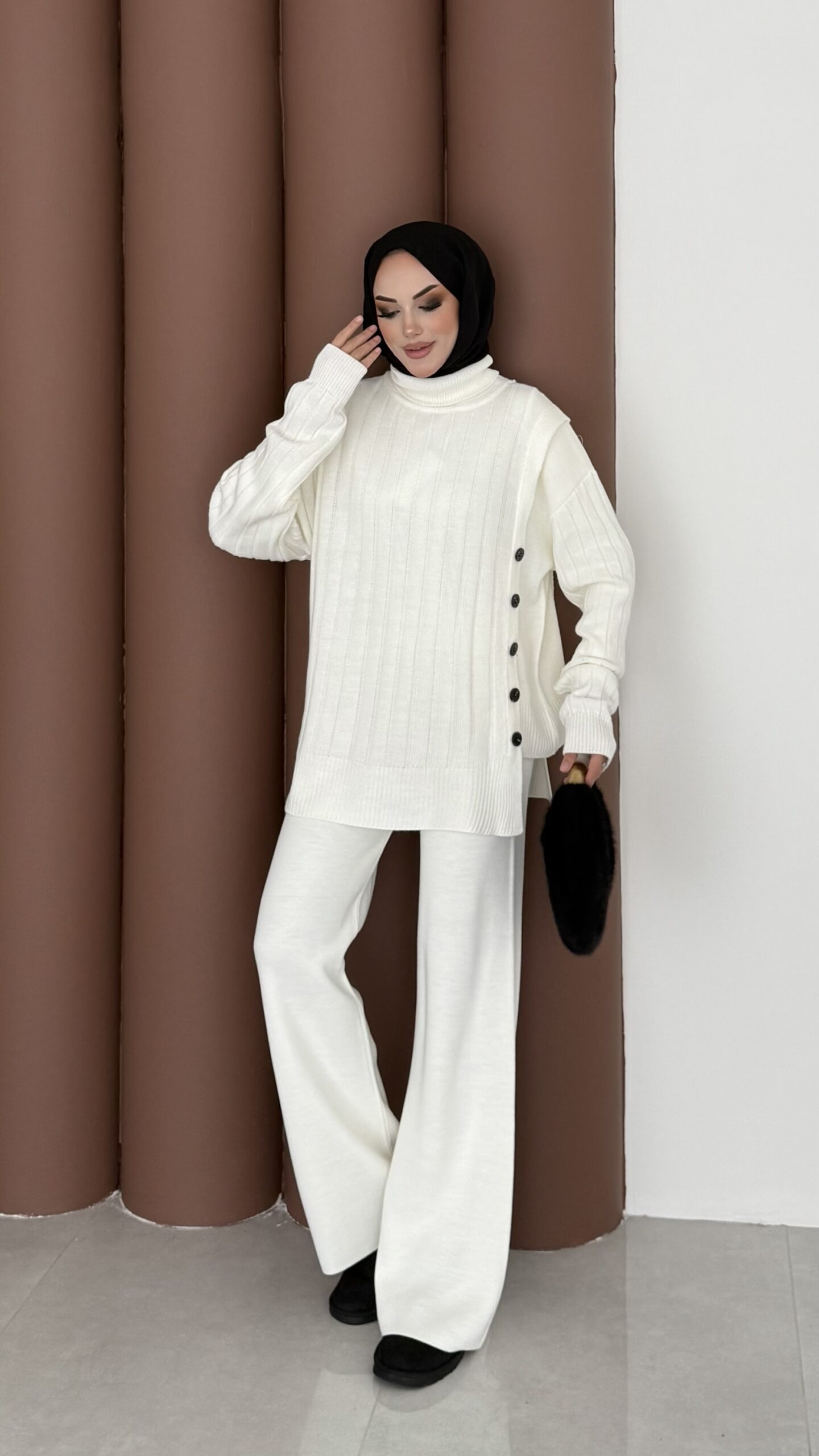 Sık Örme Fitilli Triko Takım – Beyaz