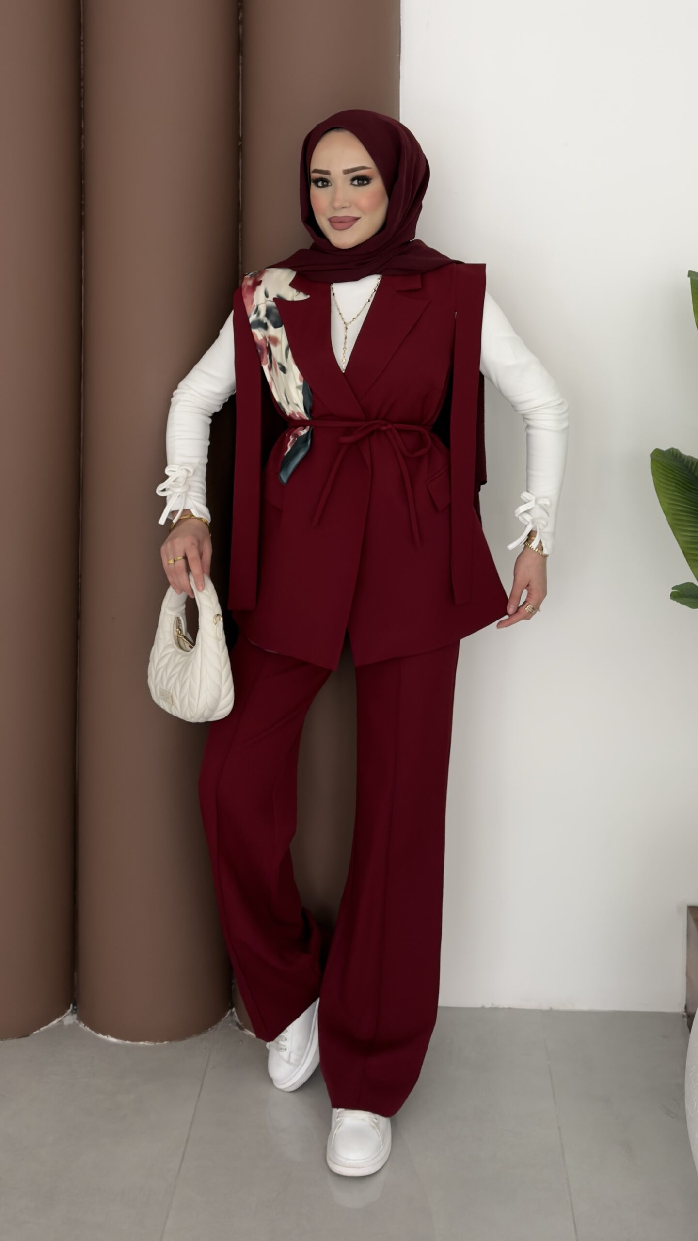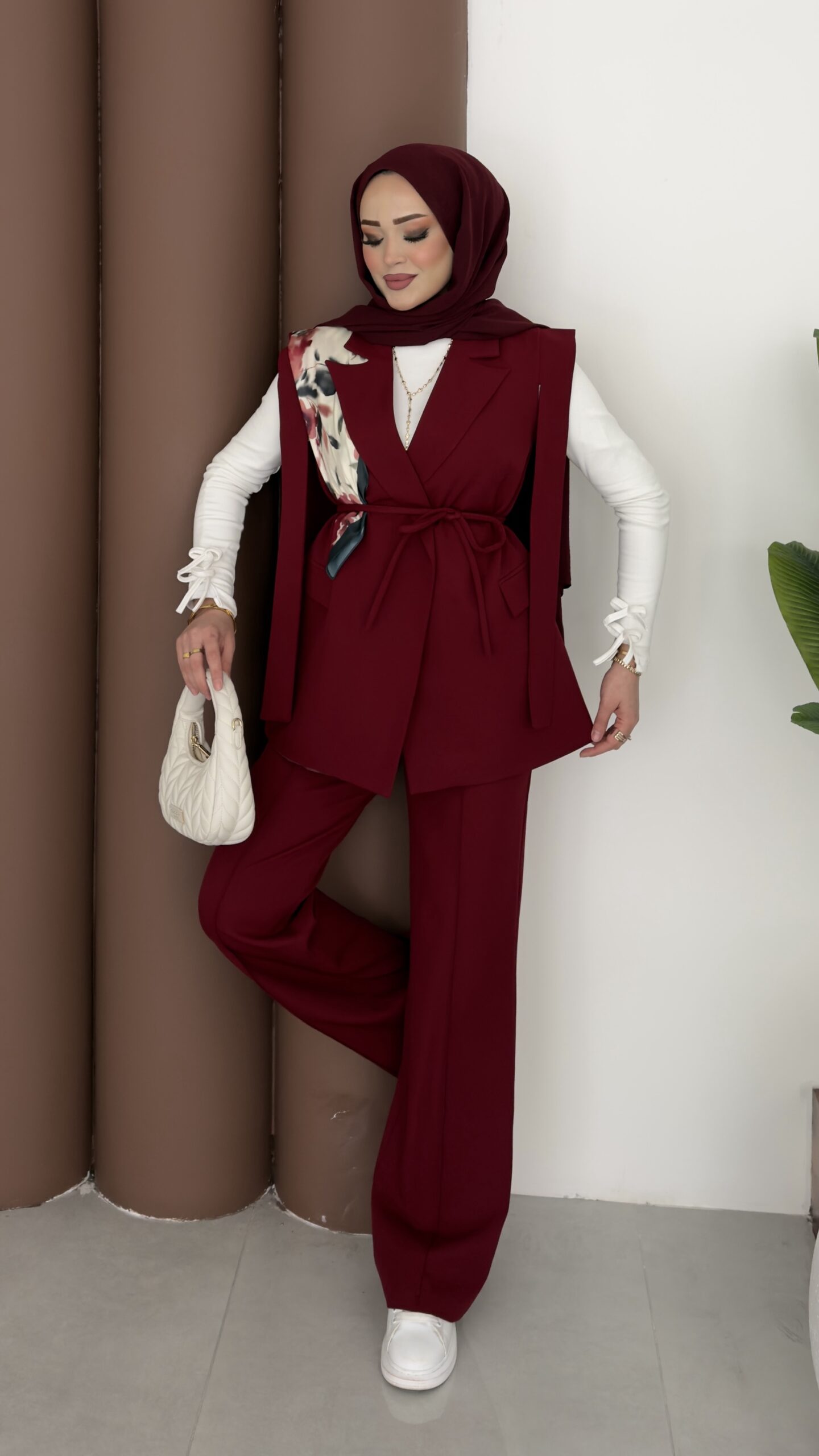 Stella Bağlamalı Yelek İkili Takım – Bordo