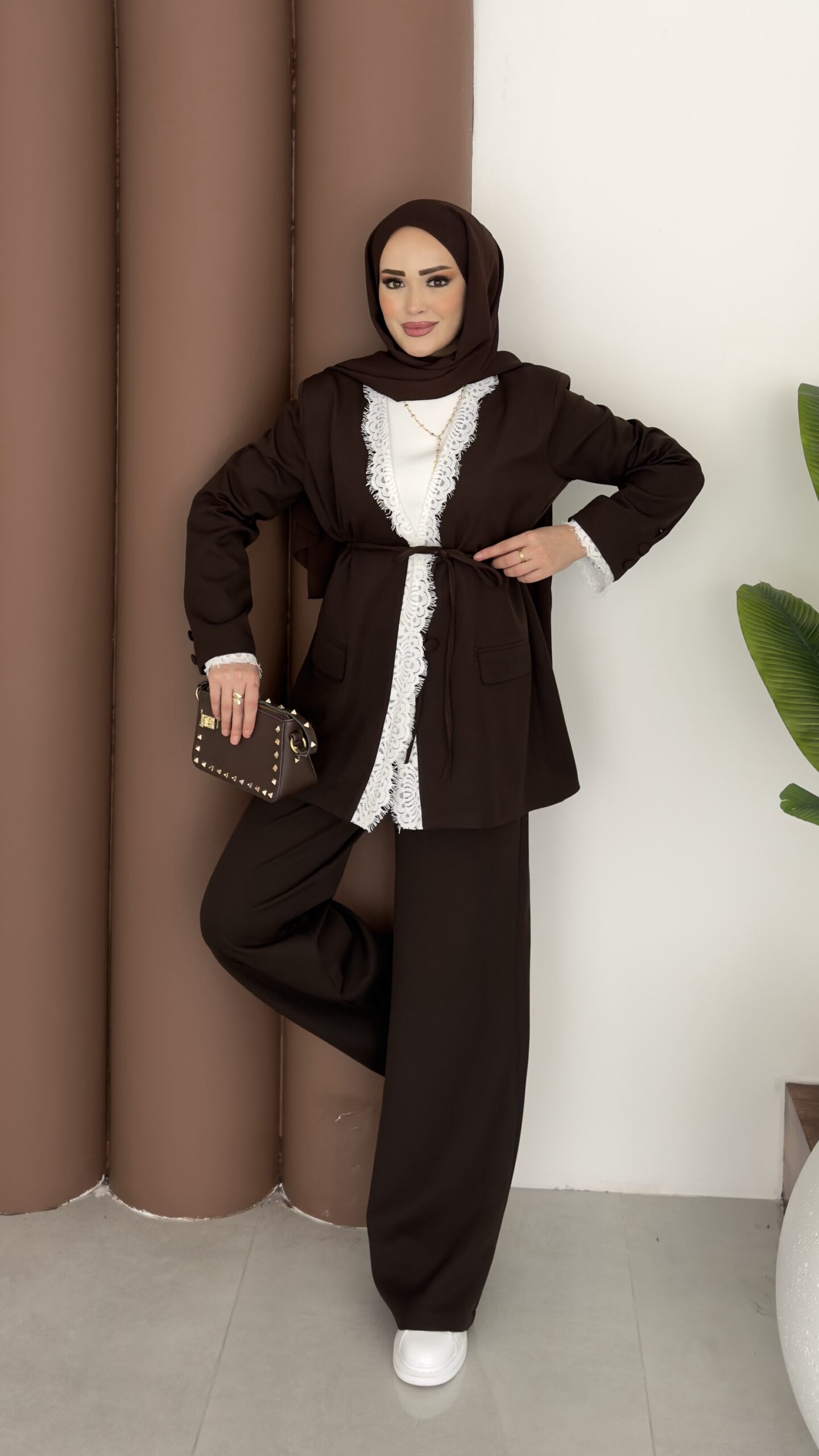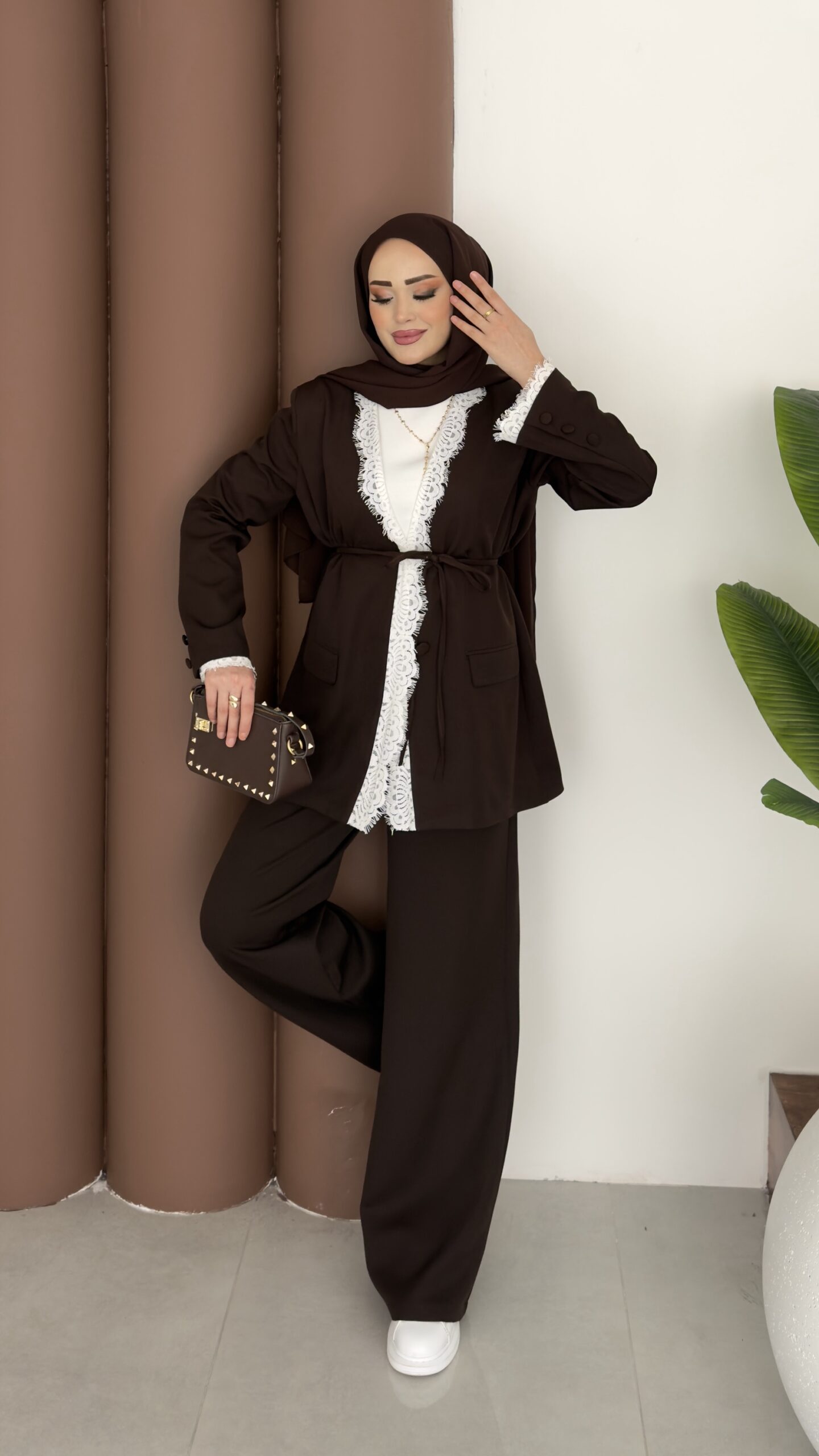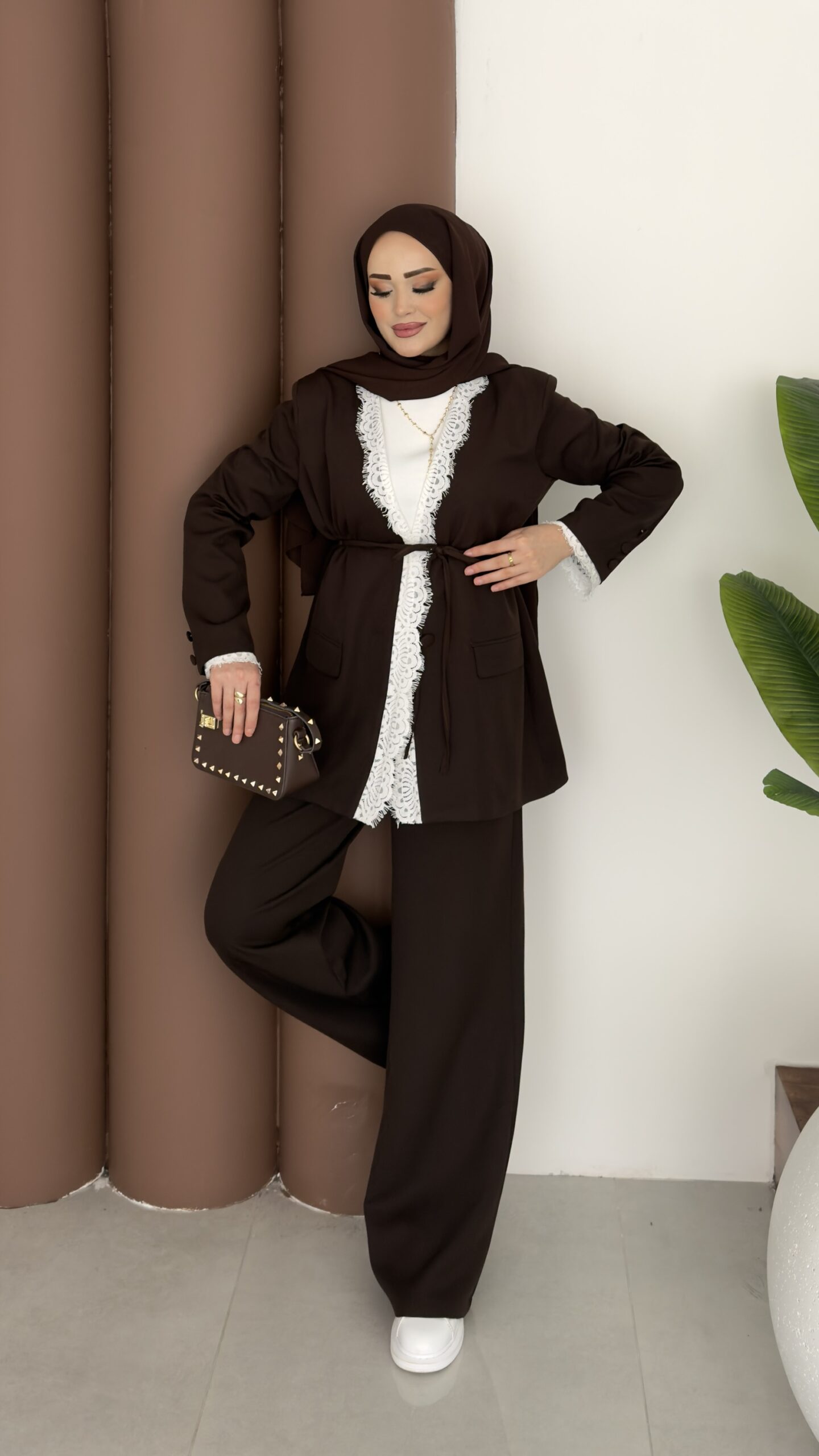 Tylor Dantelli Dabıl İkili Takım – Kahverengi
